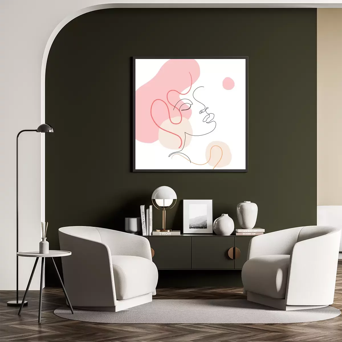 Motif à la mode avec des visages abstraits version line-art