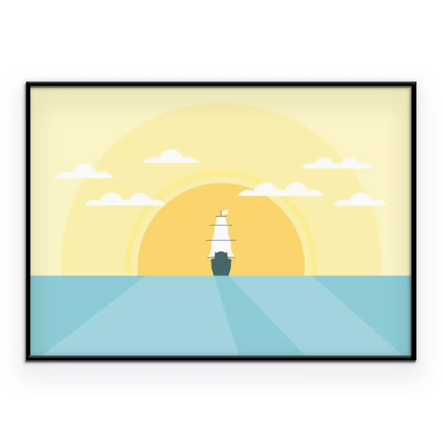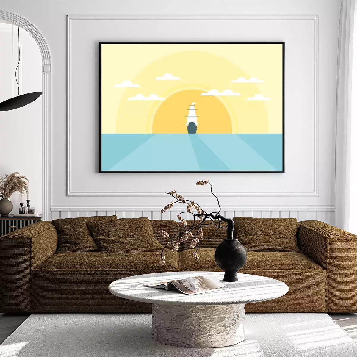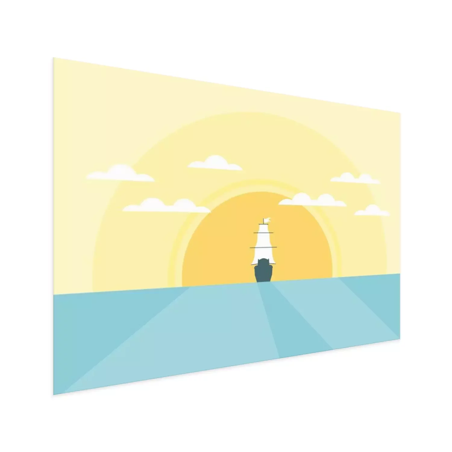 Poster  Voilier dans le fond du soleil dans un style plat avec une ombre. La lumière du jour Illustration vectorielle