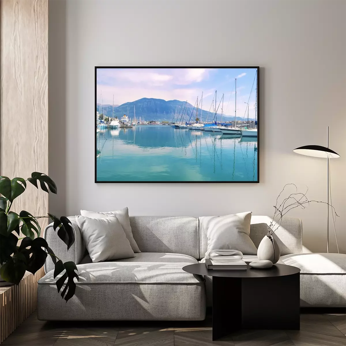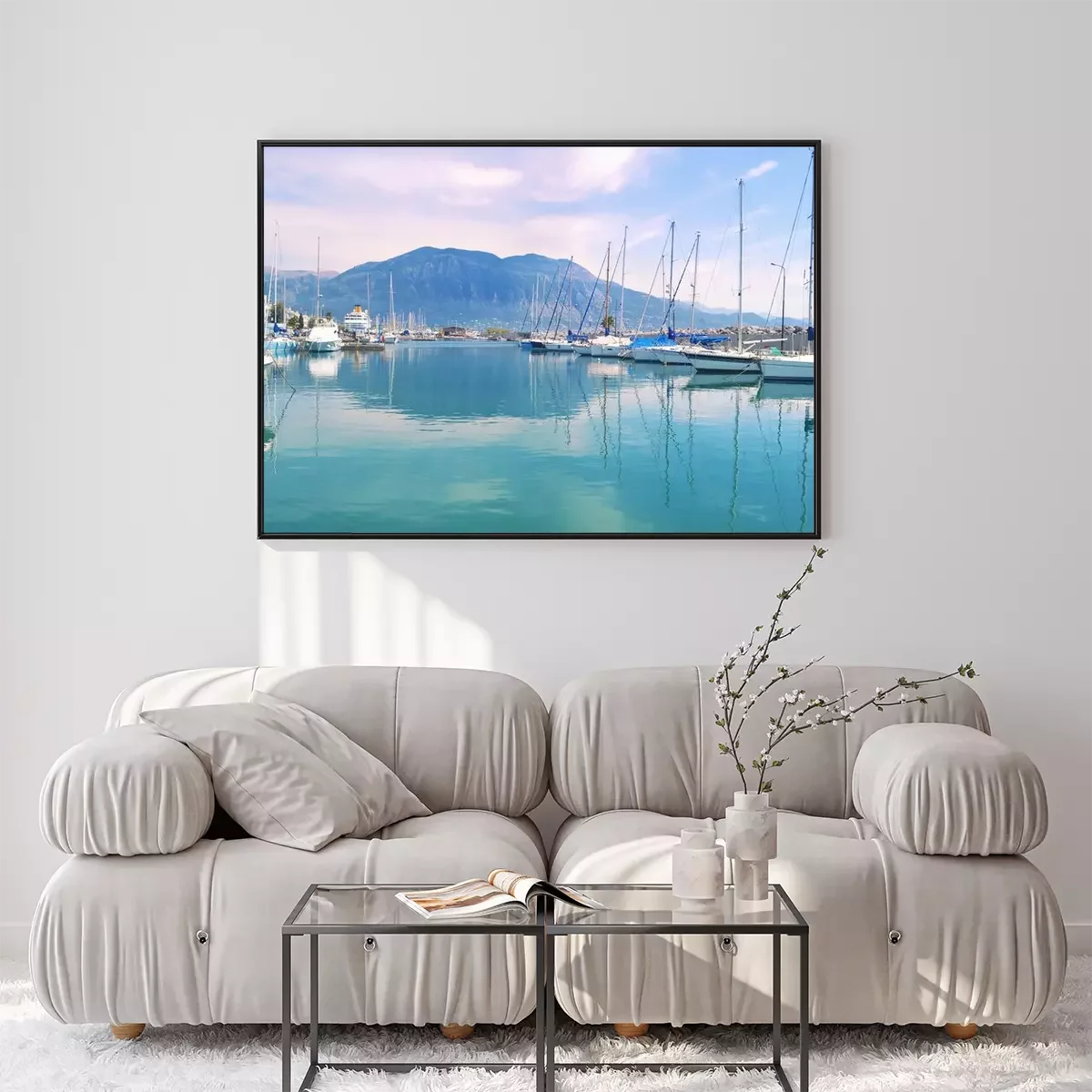Poster  Voiliers réfléchis sur le port Kalamata de mer Grèce