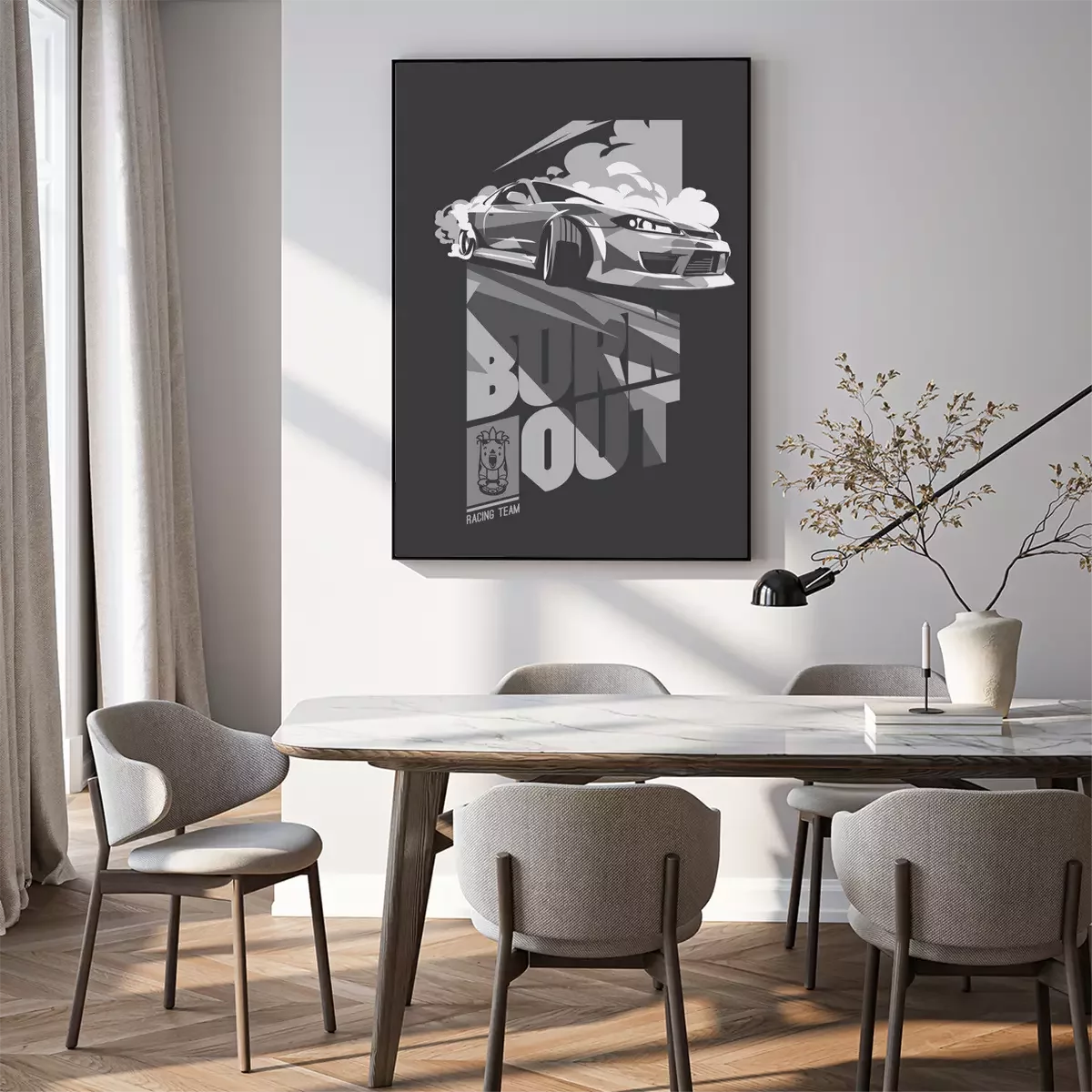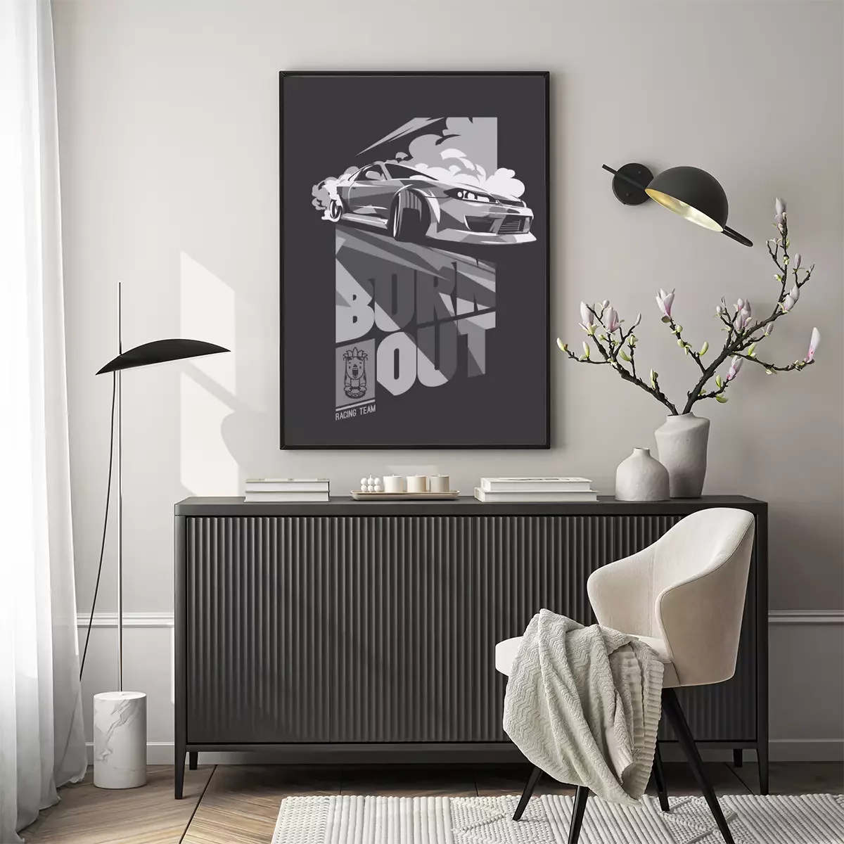 Poster : Voiture brûlante, sport de dérive japonais, course de rue