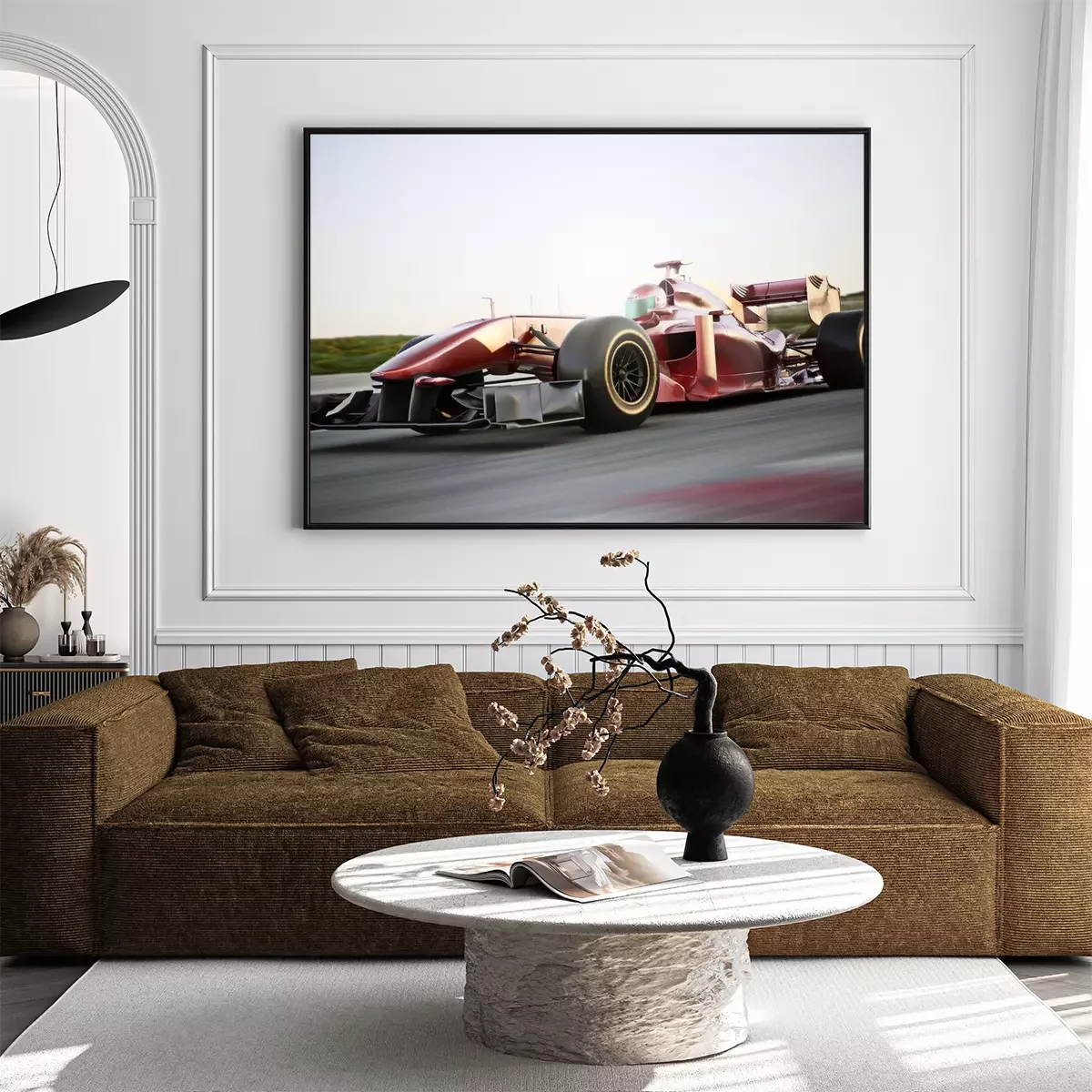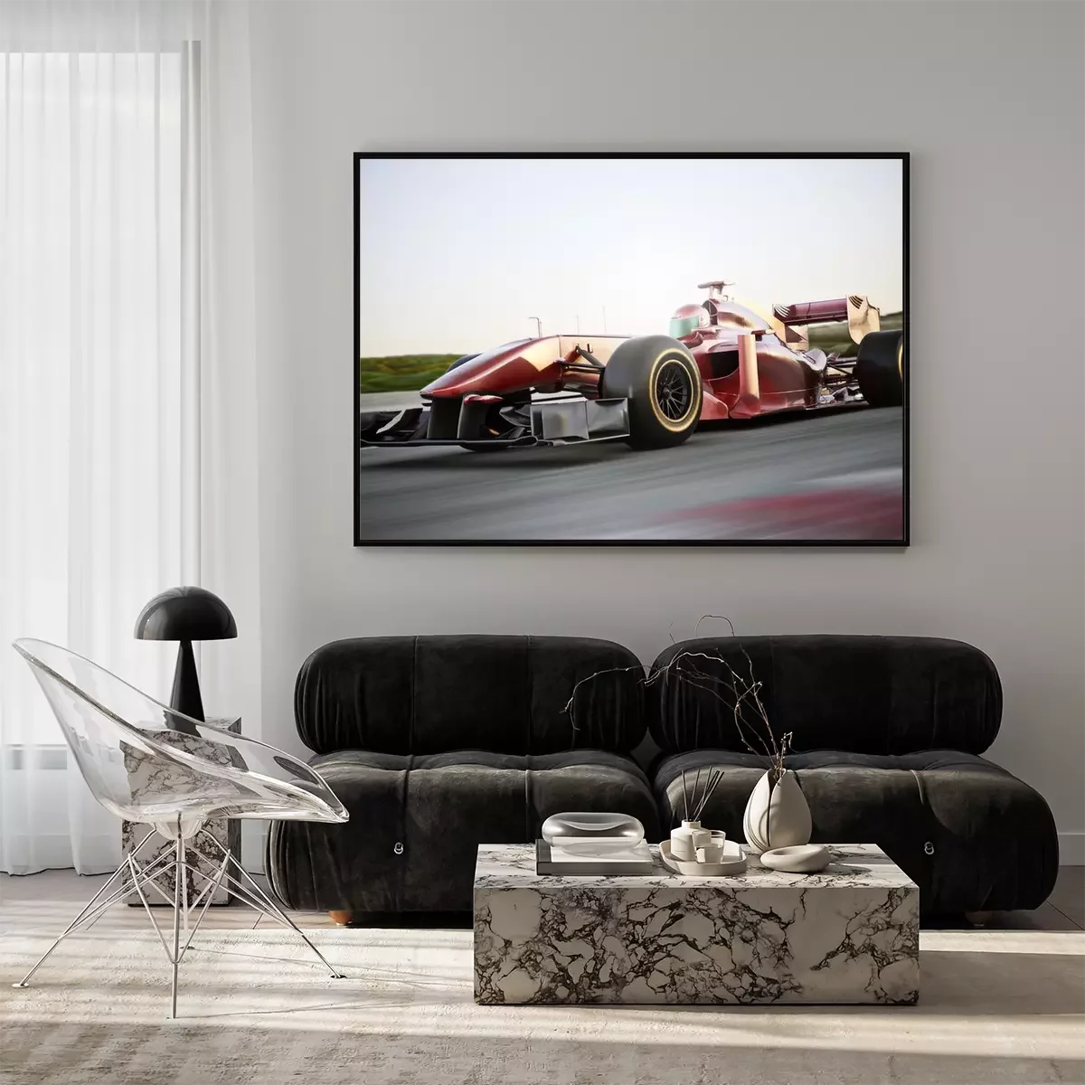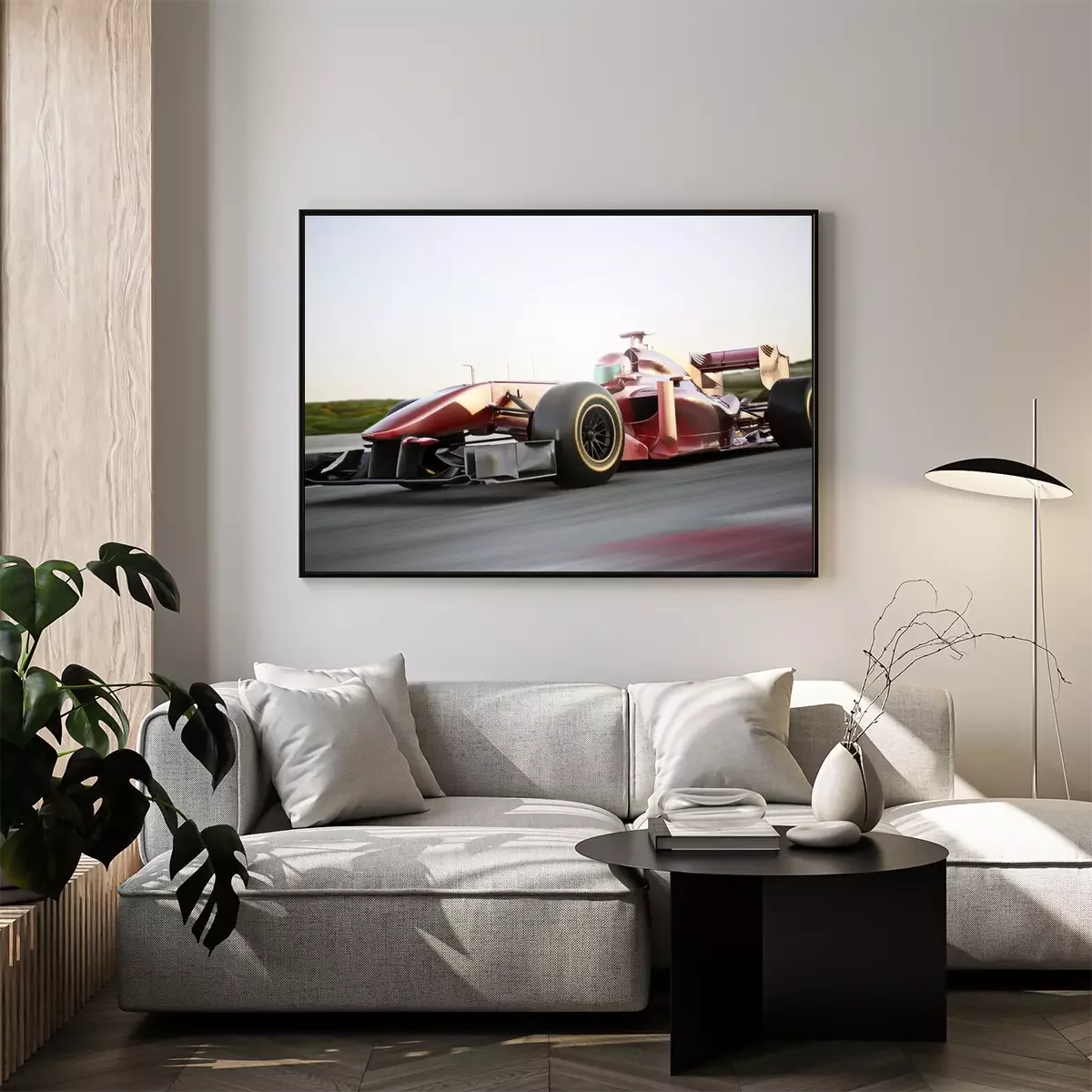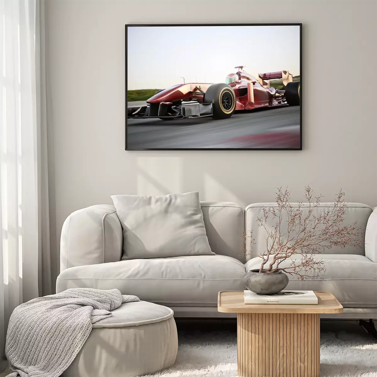 Poster  Voiture, course, voiture, côté, angle, vue, accélérer, bas, voie, mouvement, flou. Photo, réaliste, 3D, scène, salle, texte, ou, copie, espace