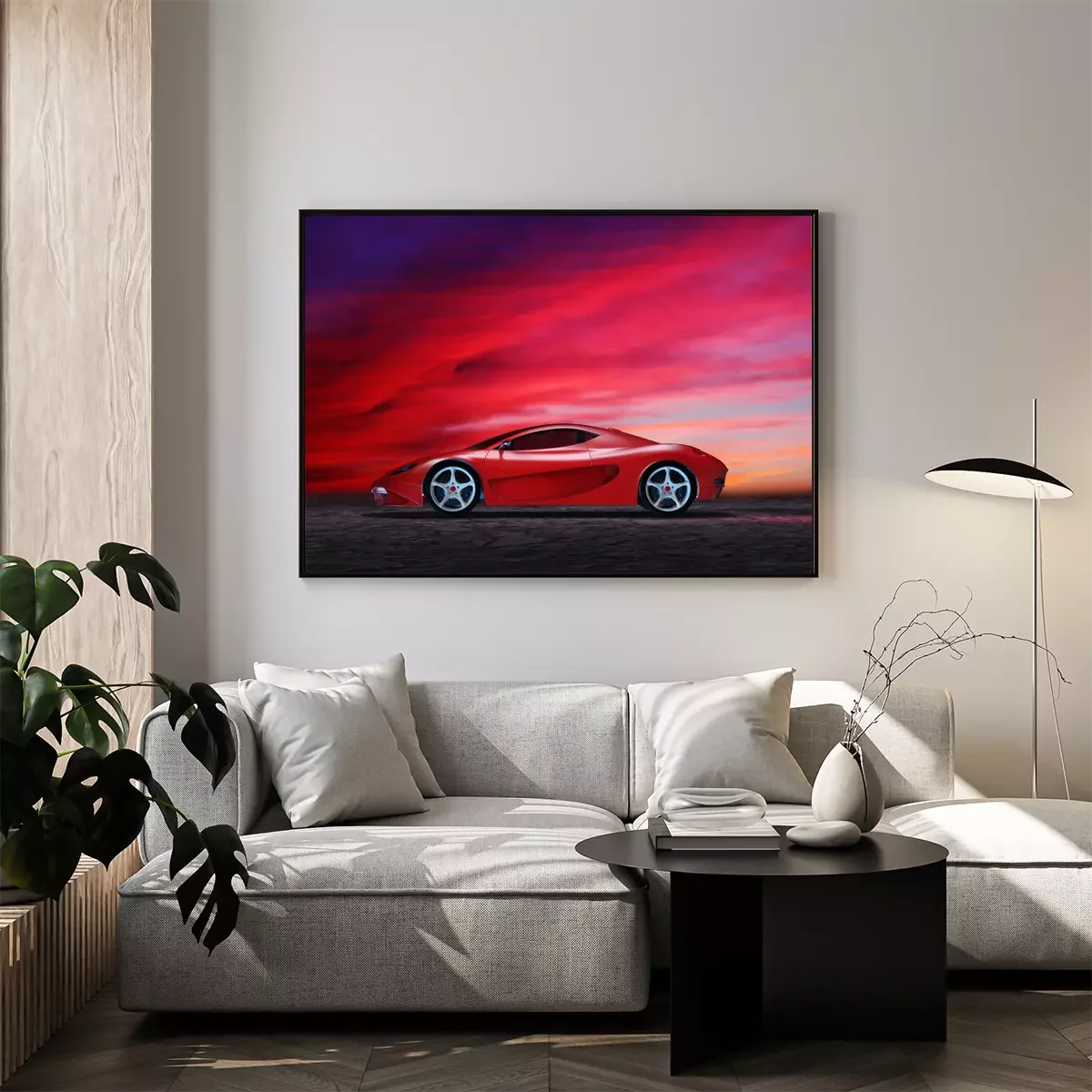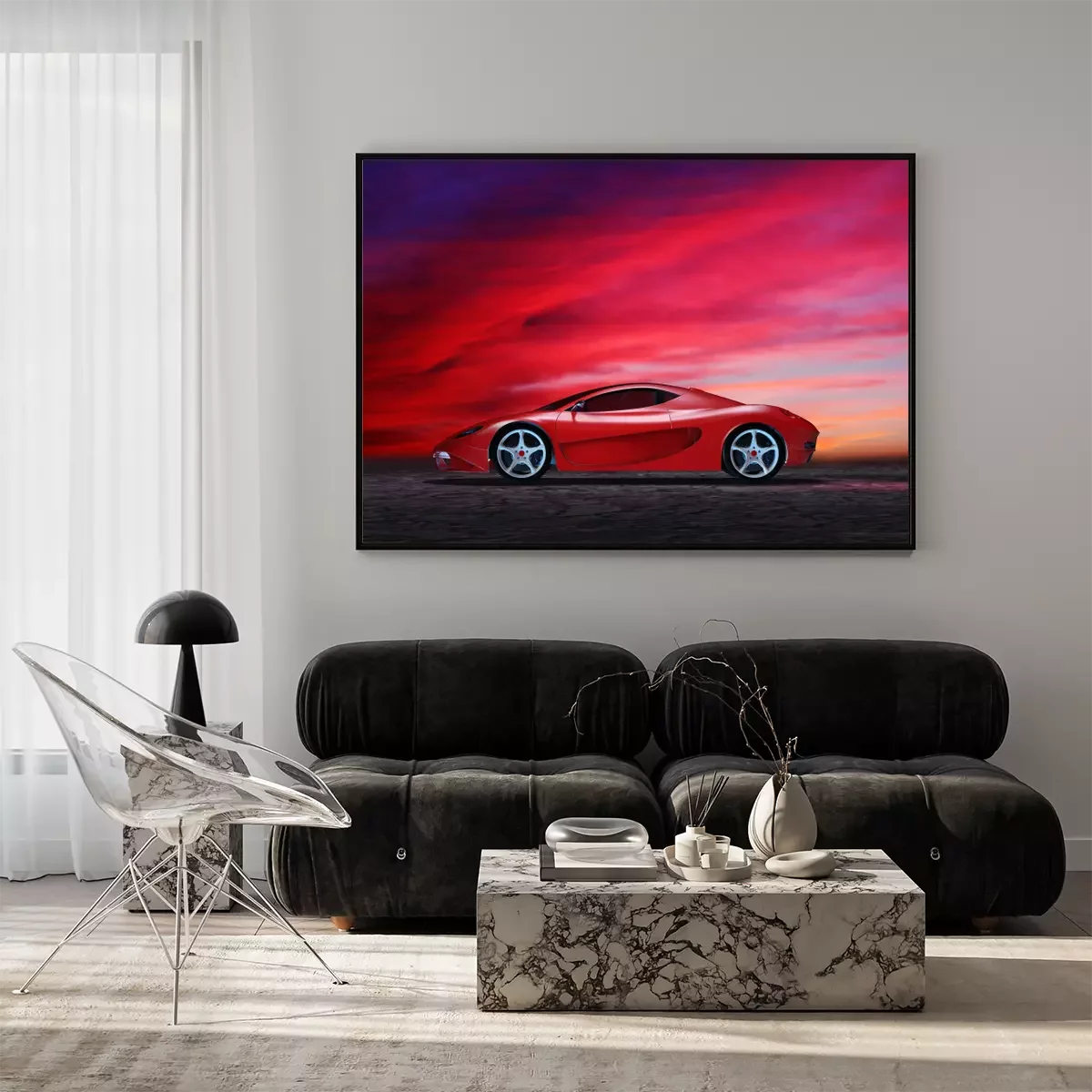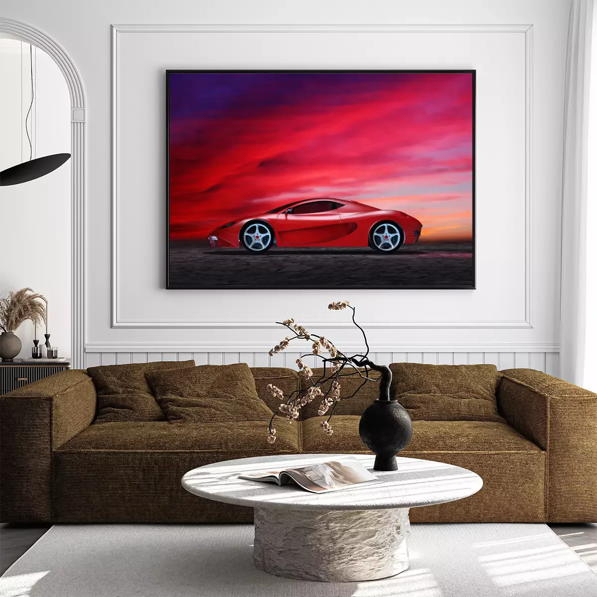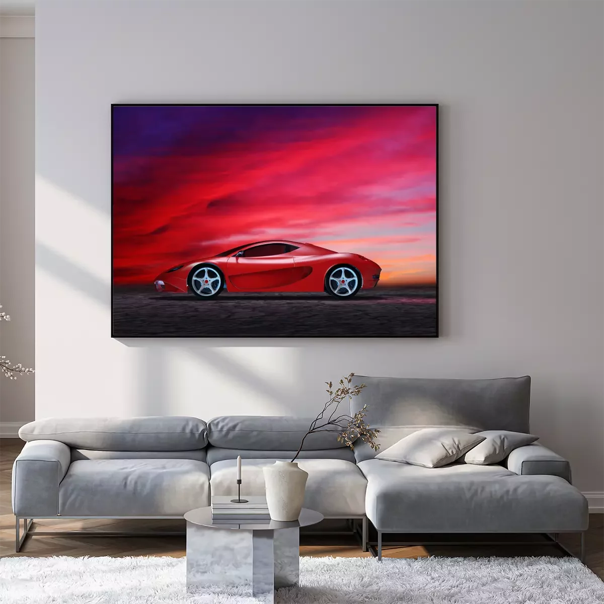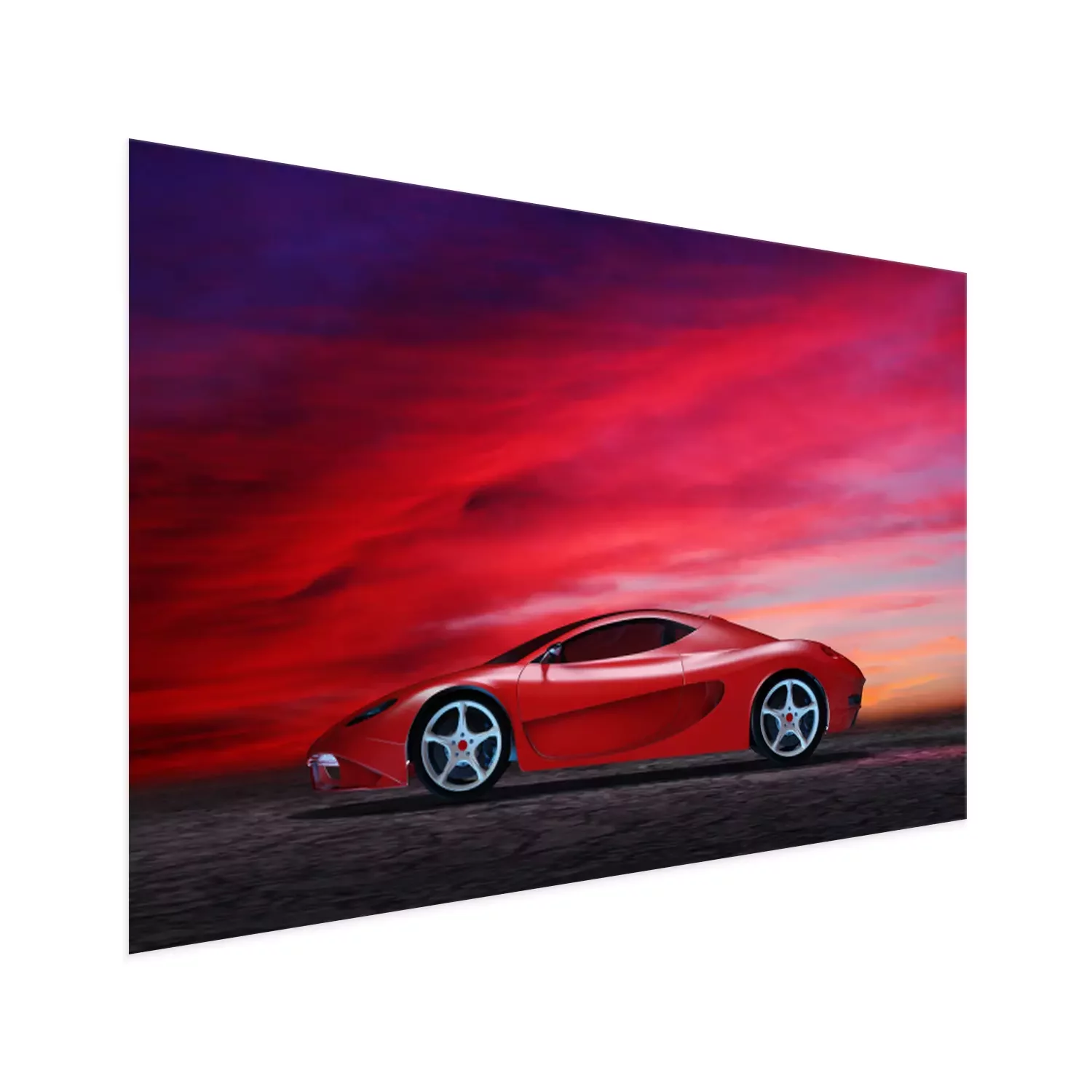 Poster : voiture de sport contre une banque pittoresque de nuages