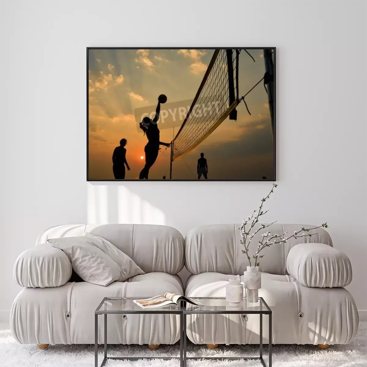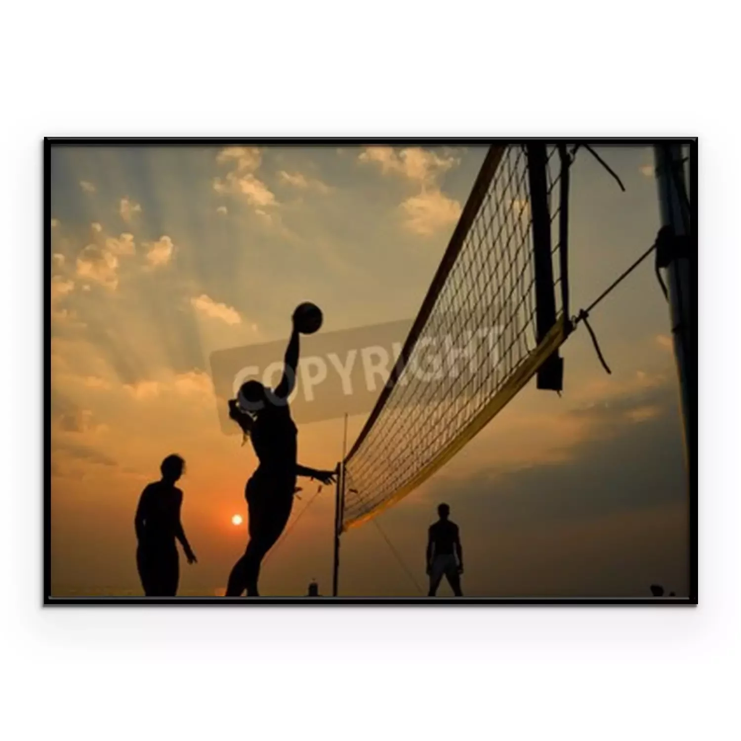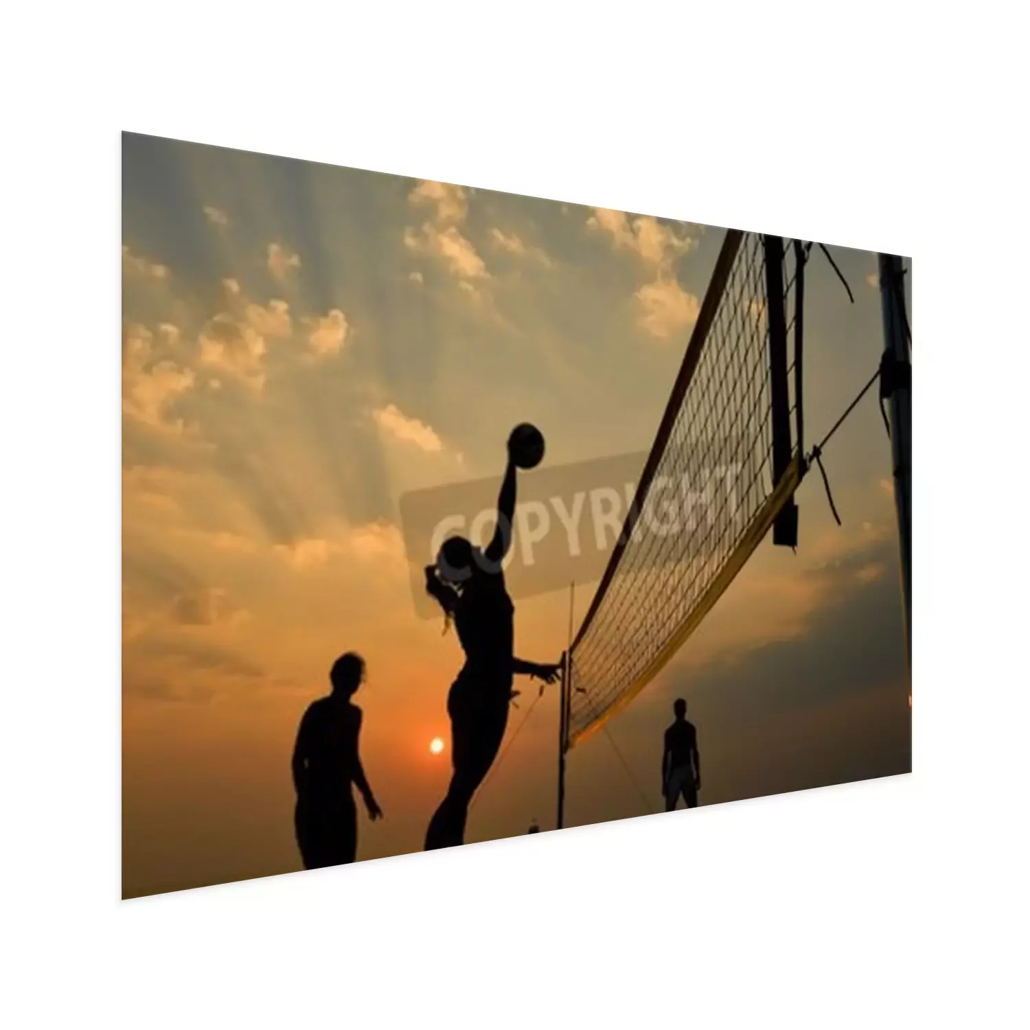Poster  Volley-ball, silhouette, Coucher soleil, mouvement, flou