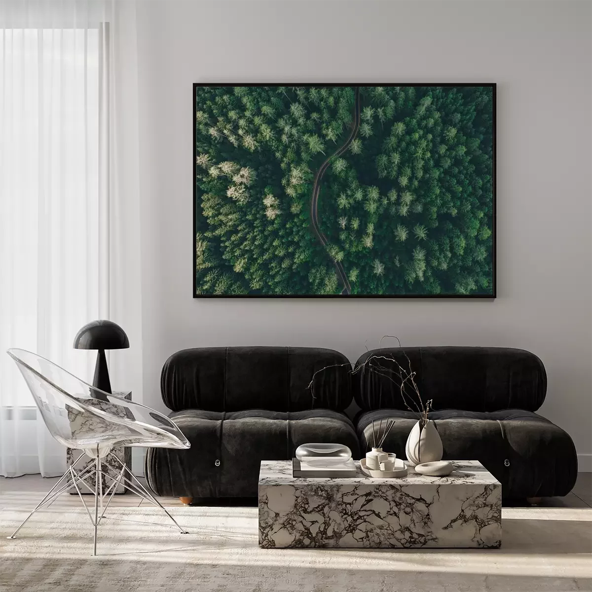 Poster : Vue aérienne d'une route au milieu de la forêt