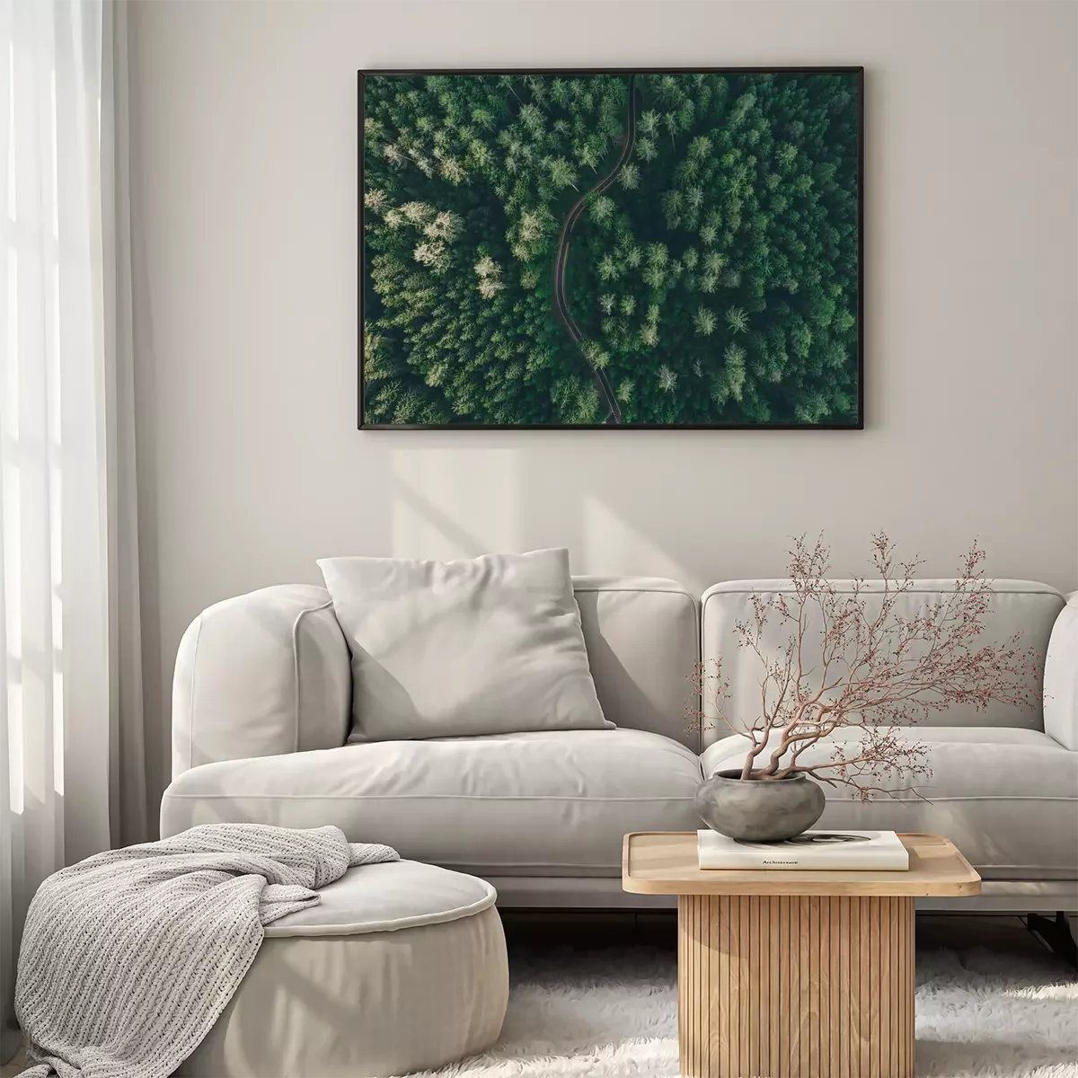 Poster  Vue aérienne d'une route au milieu de la forêt