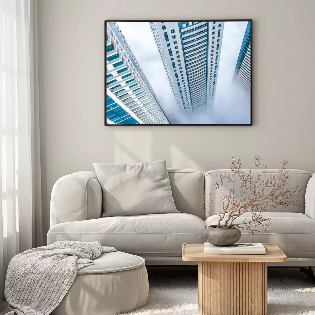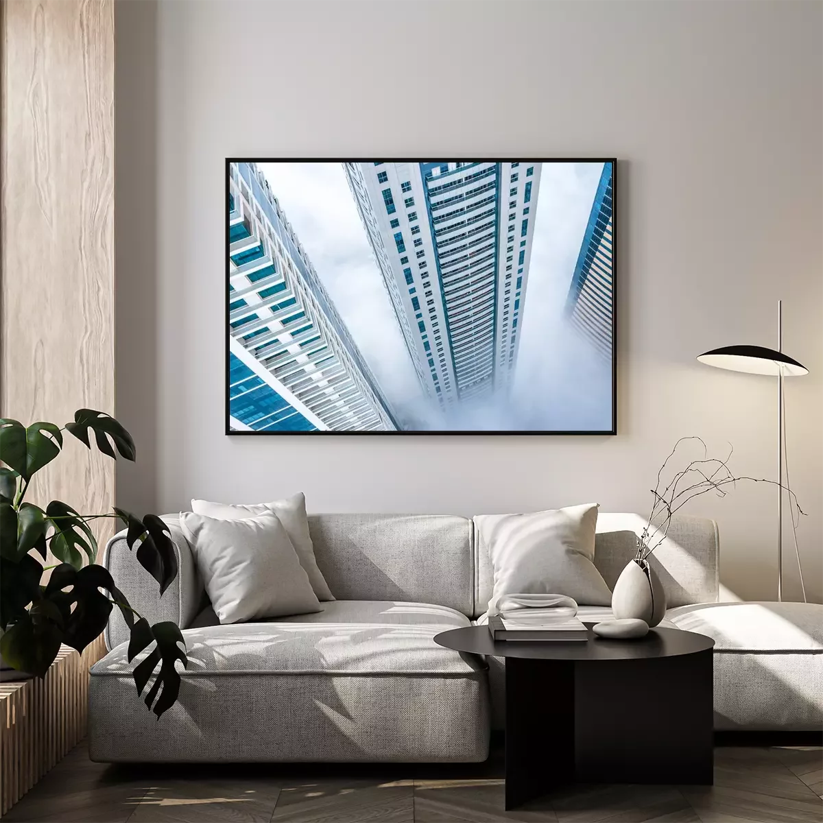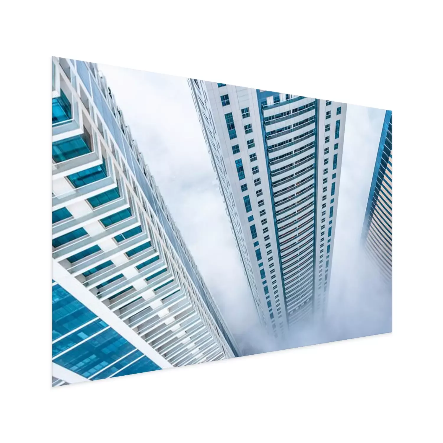 Poster  Vue de dessus d'un gratte-ciel dans le brouillard