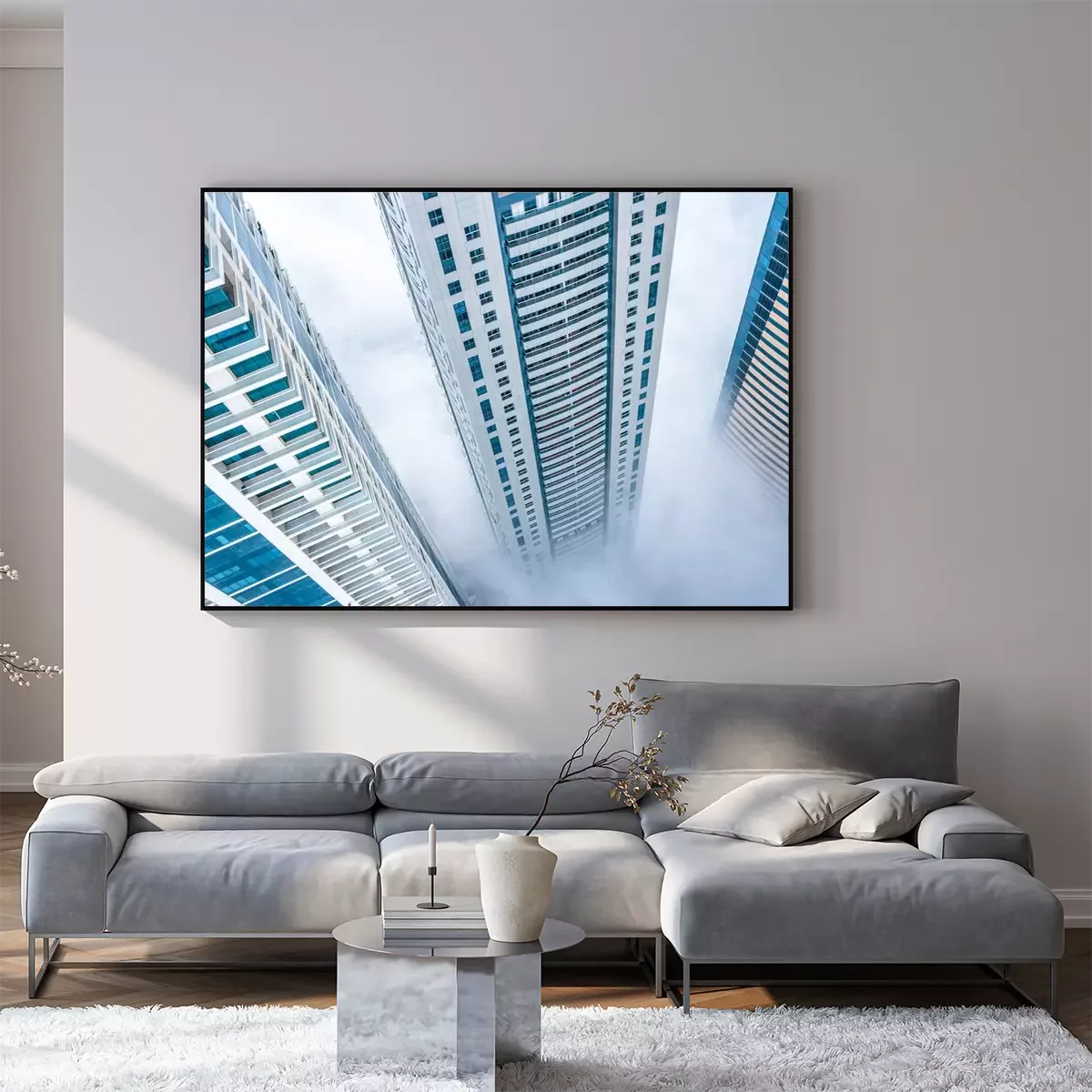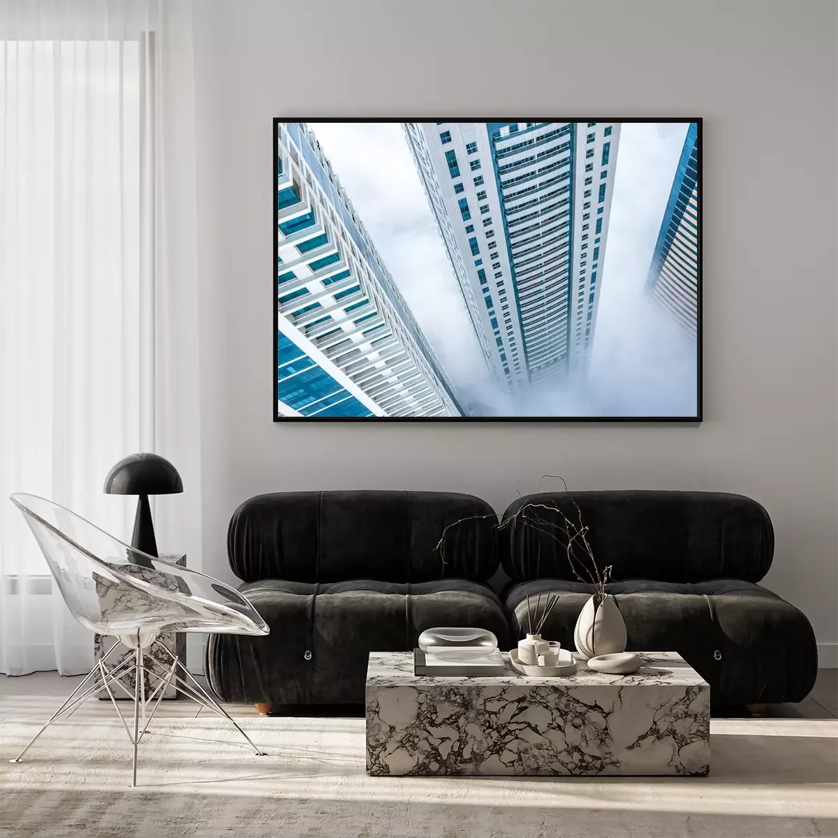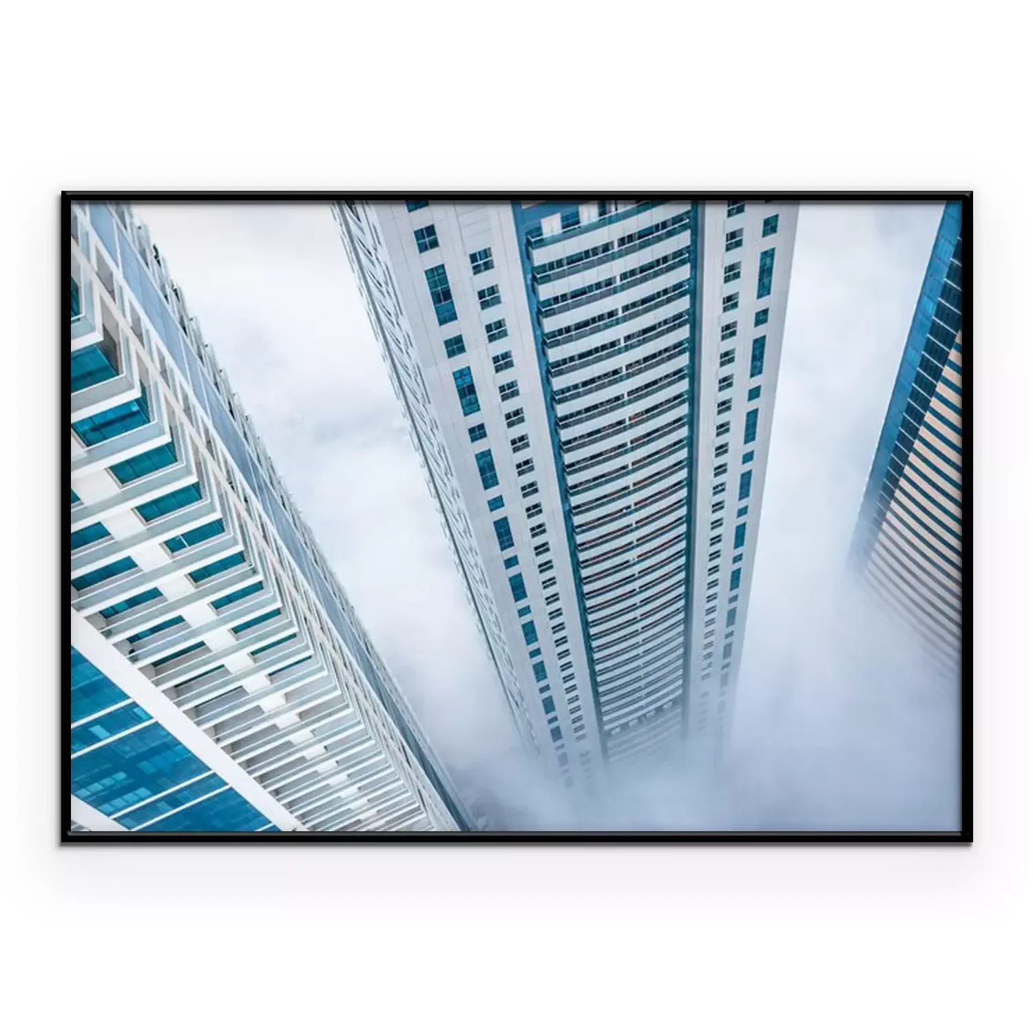 Poster  Vue de dessus d'un gratte-ciel dans le brouillard