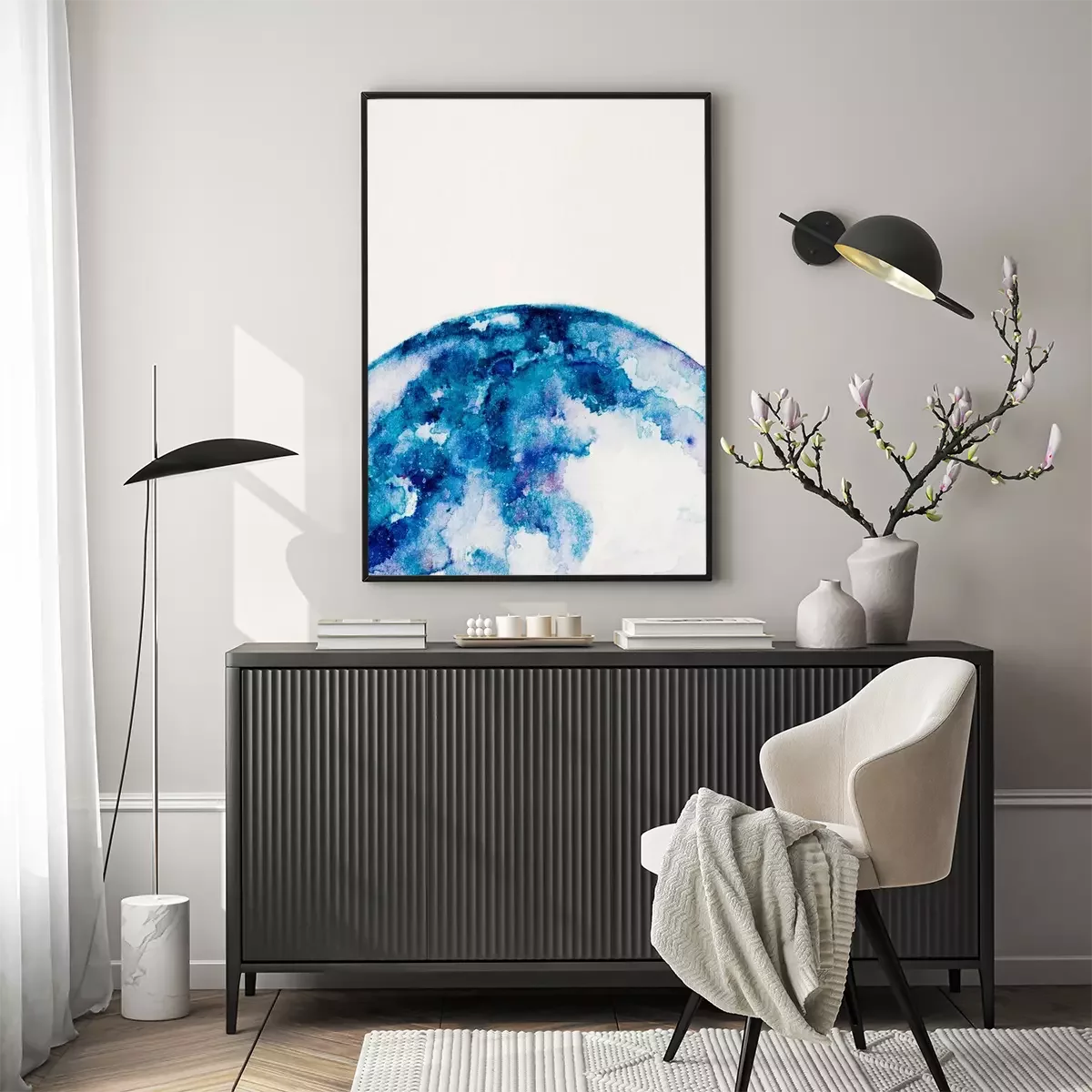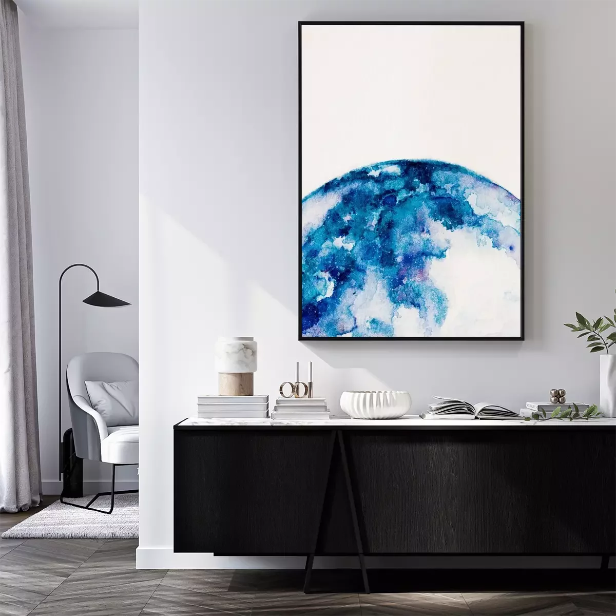 Poster : vue partielle de la planète faite de peinture aquarelle bleue sur fond blanc