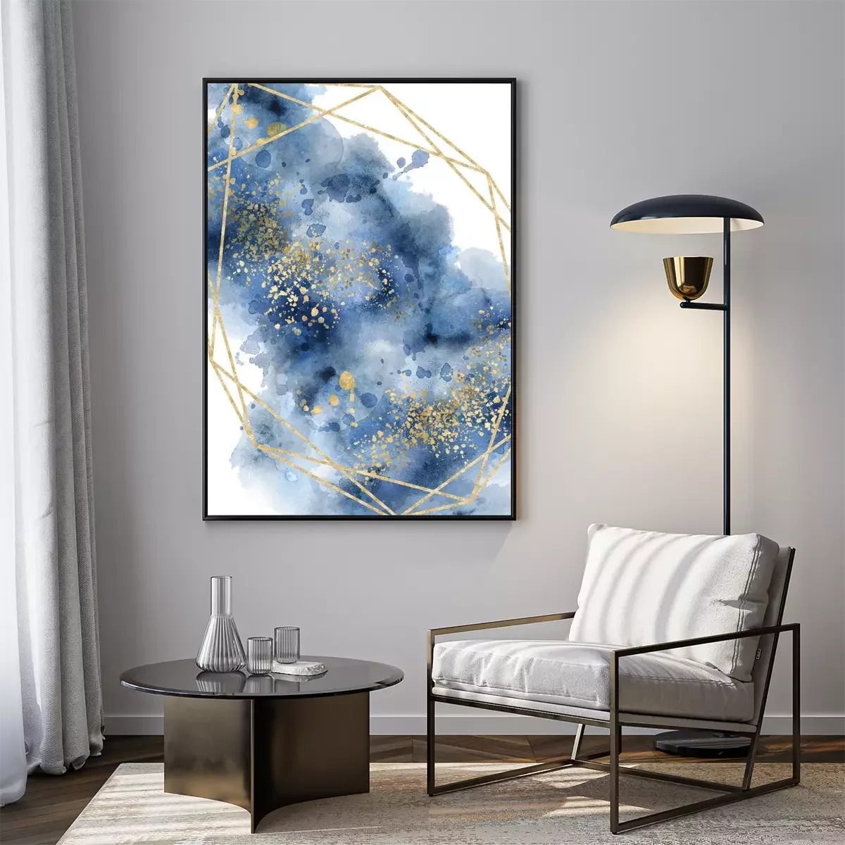 Poster  Watercolor abstract aquamarine, background, watercolour blue and gold texture Vector illustration