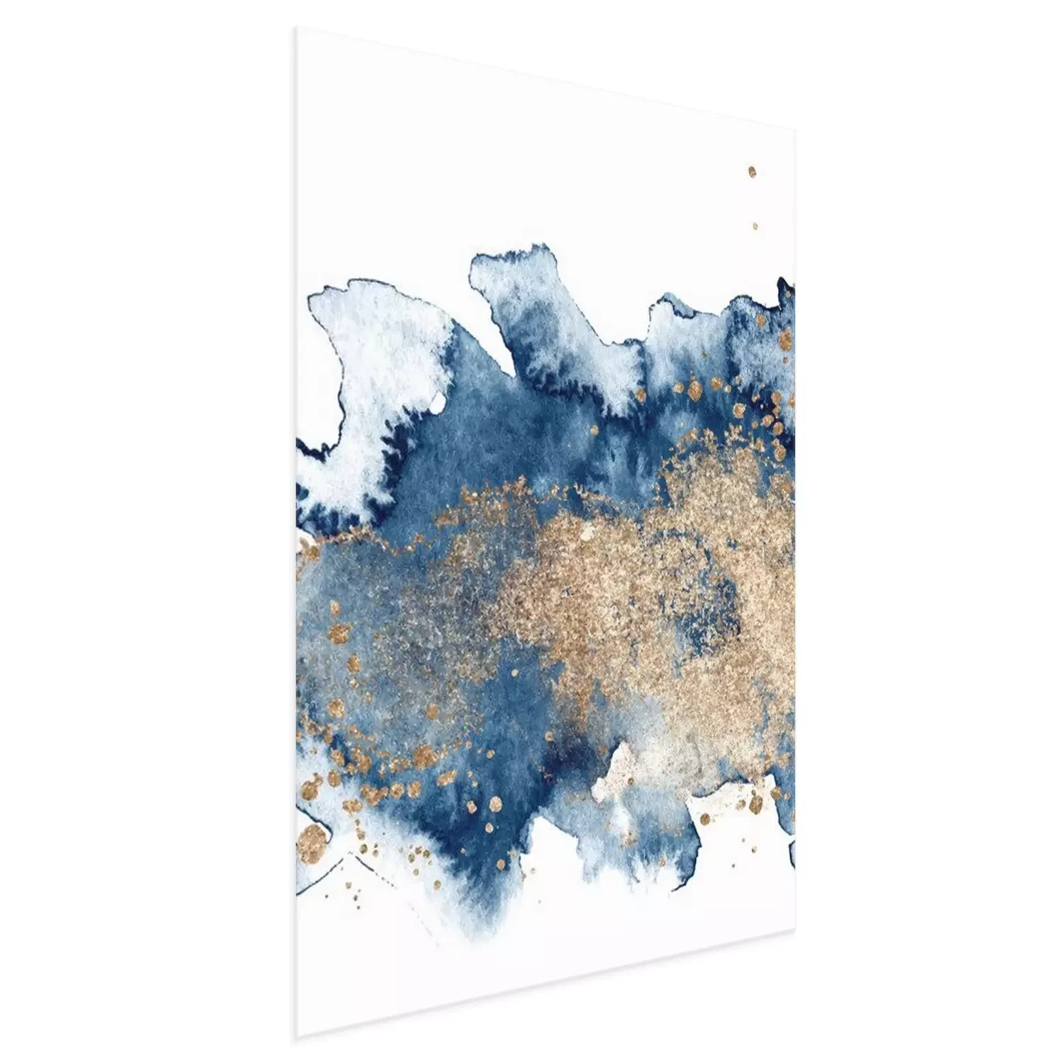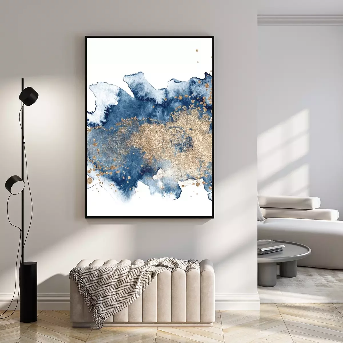 Poster  Watercolor abstract classic blue and gold, background, hand drawn watercolour texture