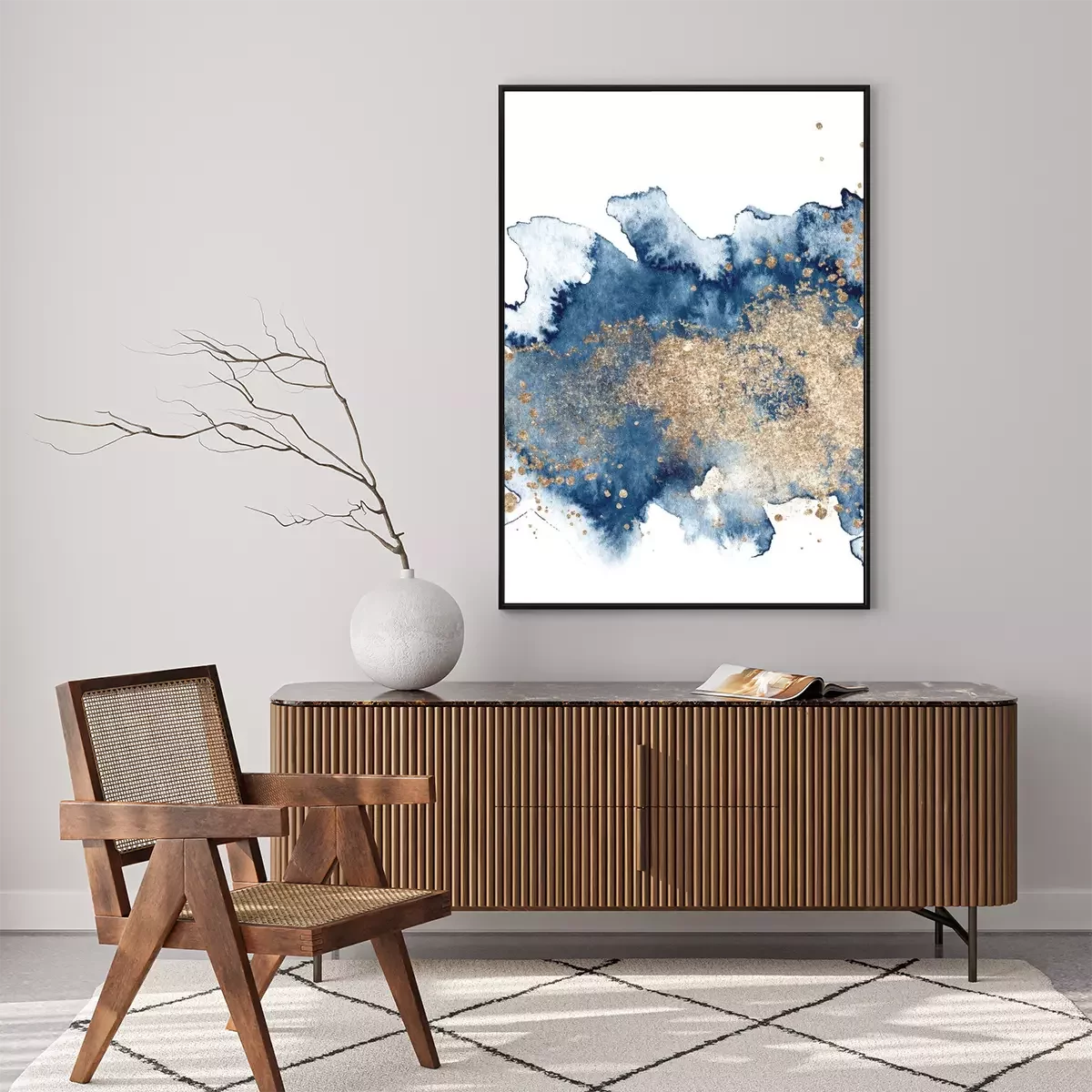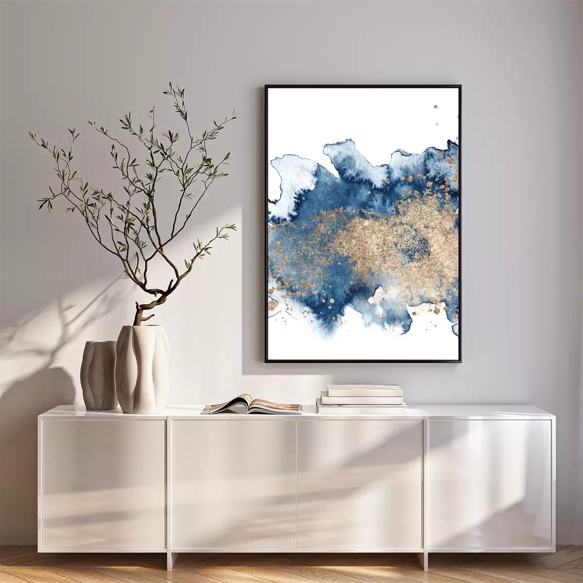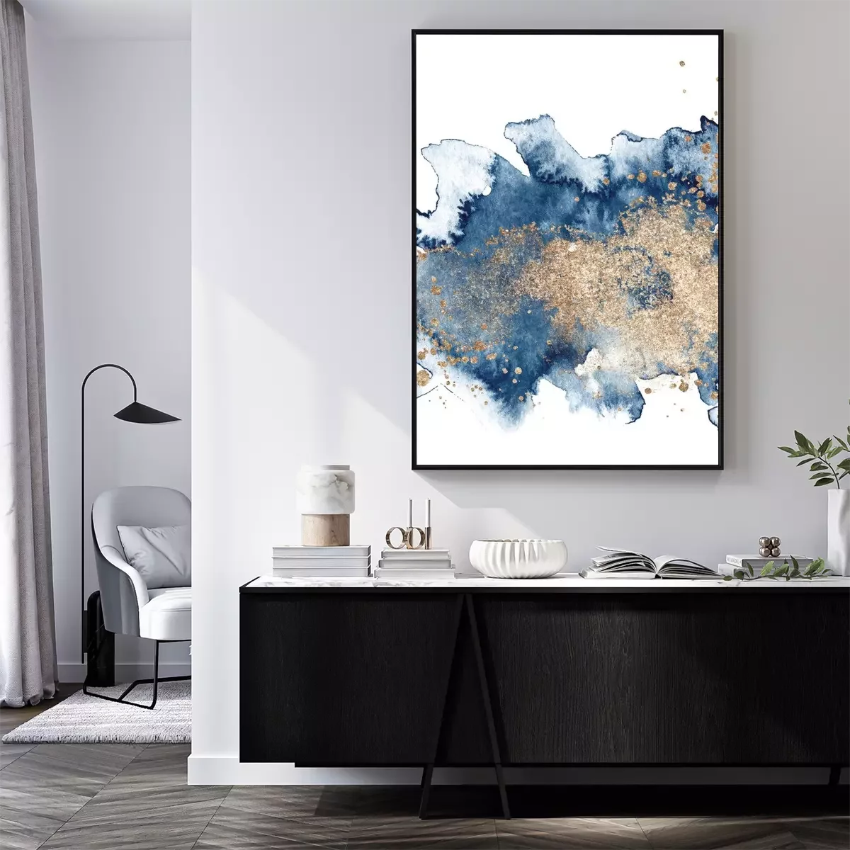 Poster : Watercolor abstract classic blue and gold, background, hand drawn watercolour texture