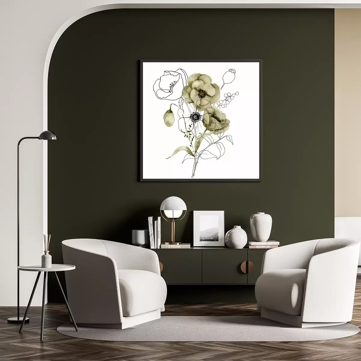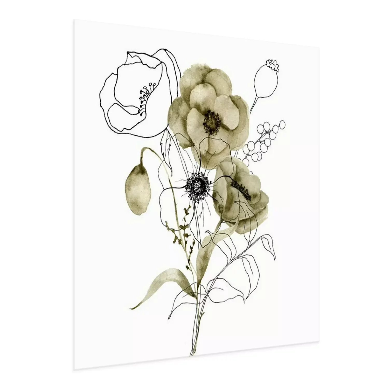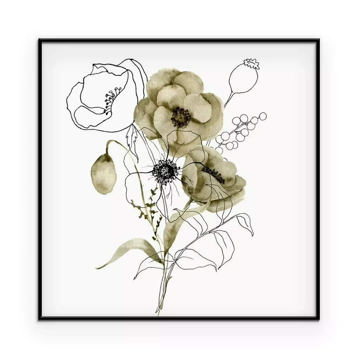 Poster  Watercolor and sketch greenery and anemone bouquet. Hand painted flowers and berries with eucalyptus leaves and branch isolated on white background for design, print or fabric.