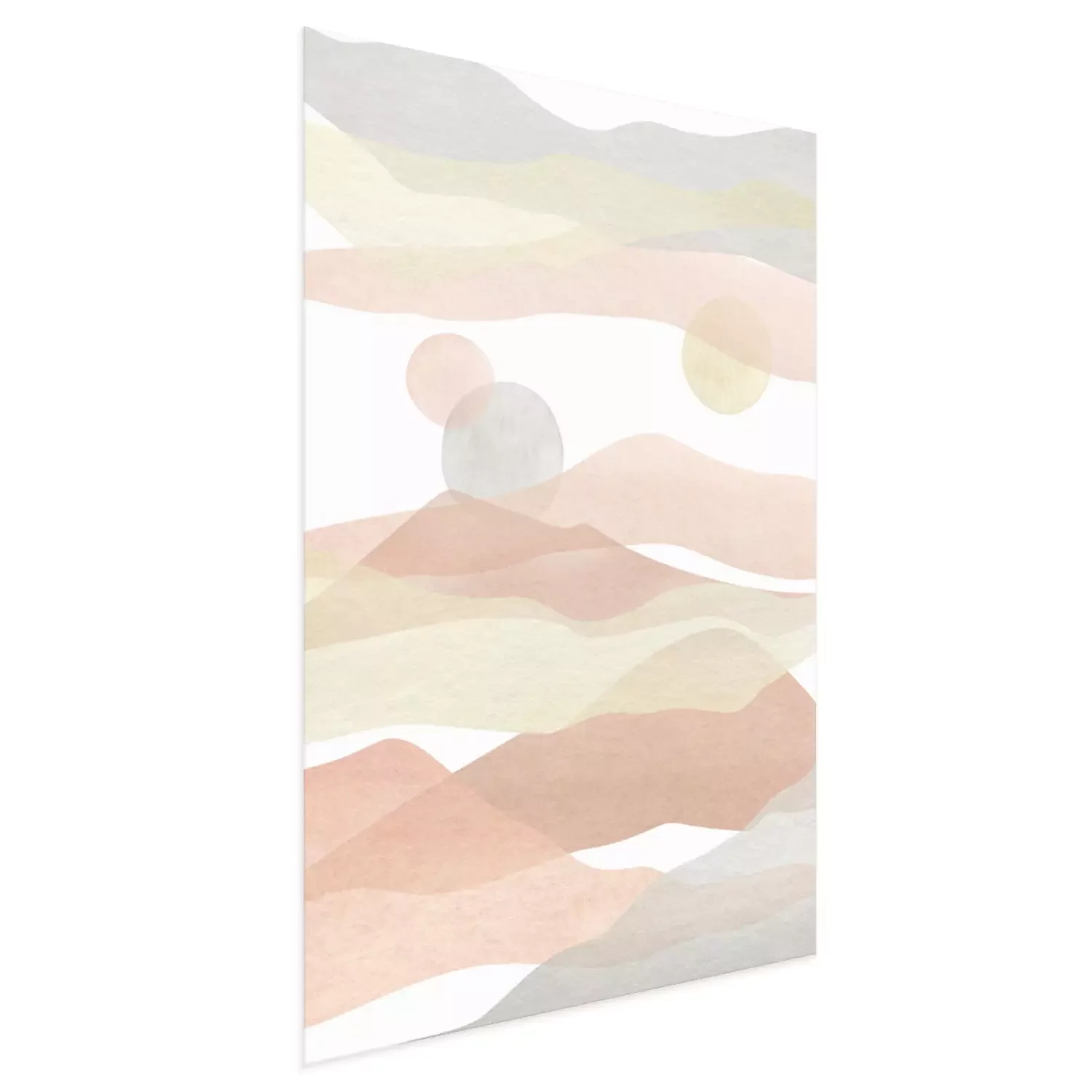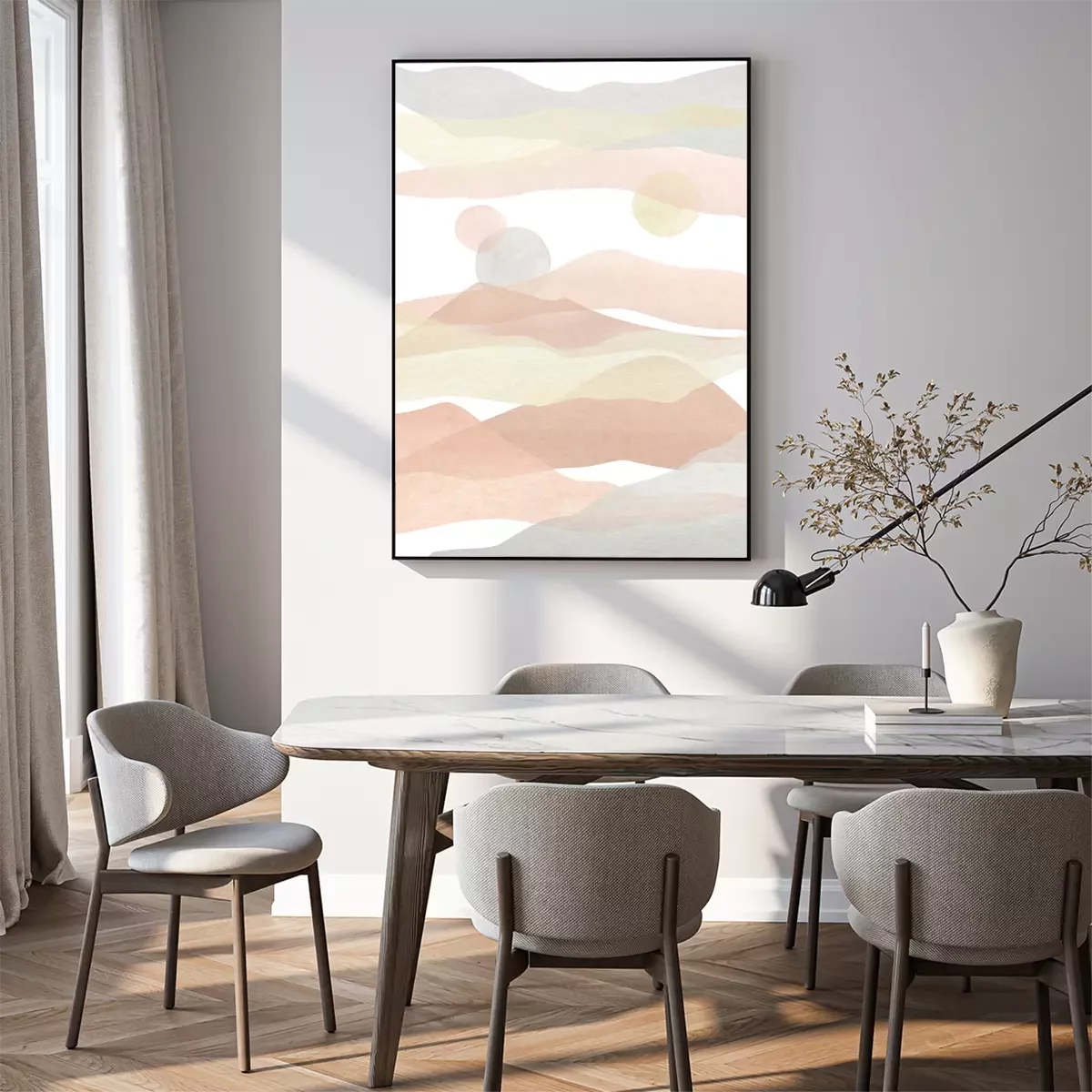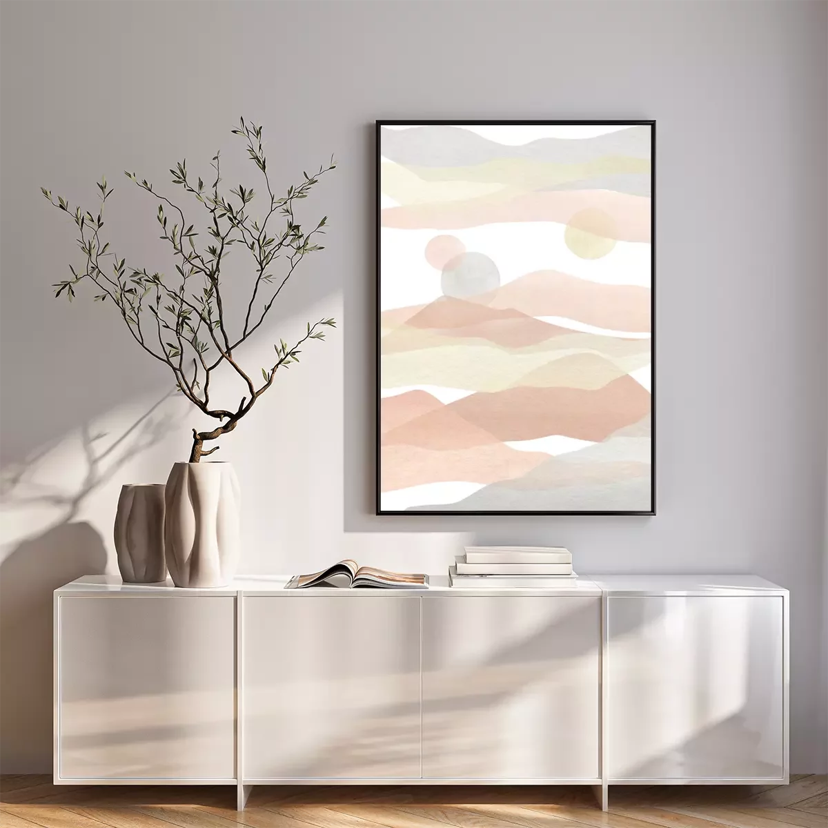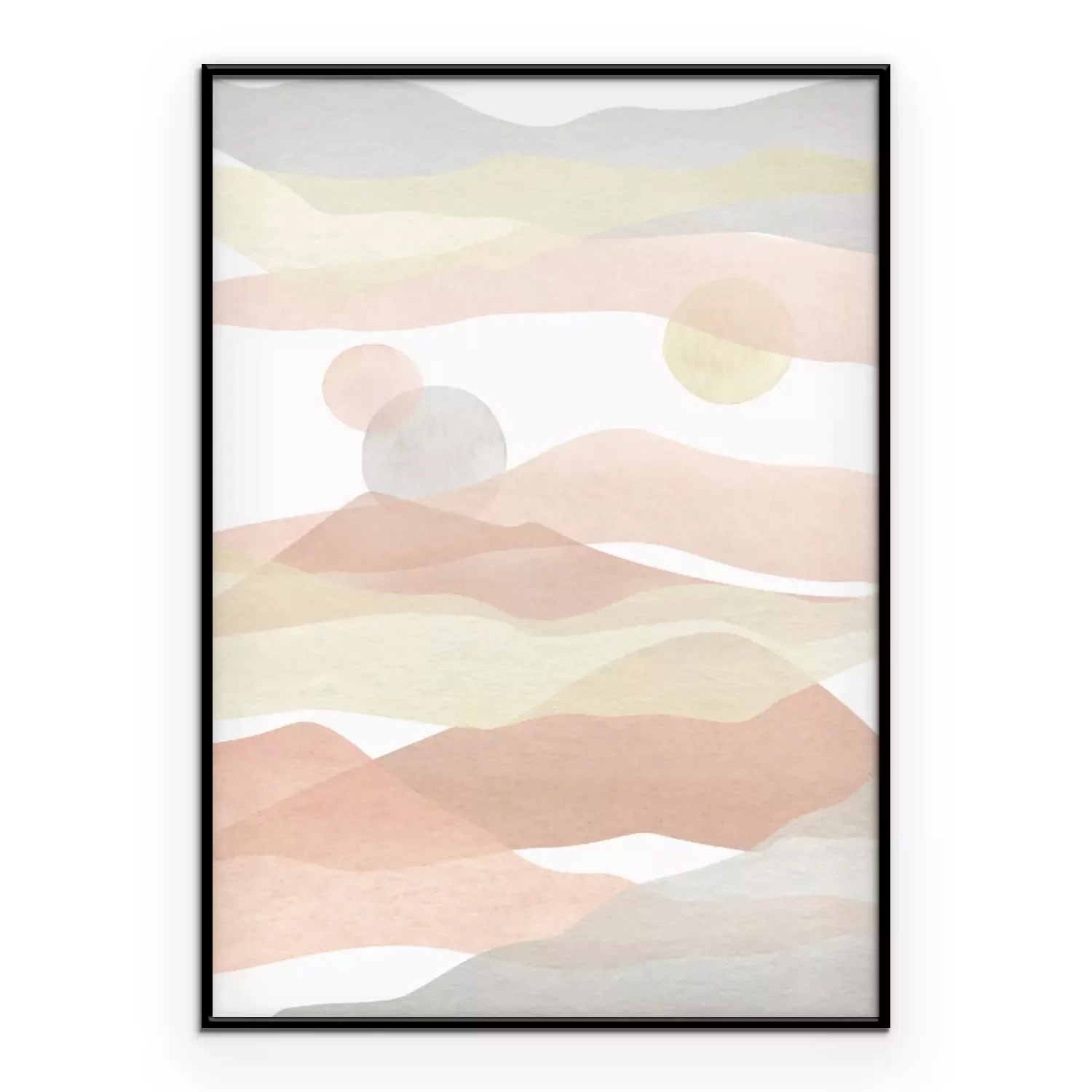 Poster : Watercolor creative minimalist hand painted landscape composition, mountains. Abstract modern print, poster, for wall decoration, card or brochure cover design. Aesthetic trendy illustration