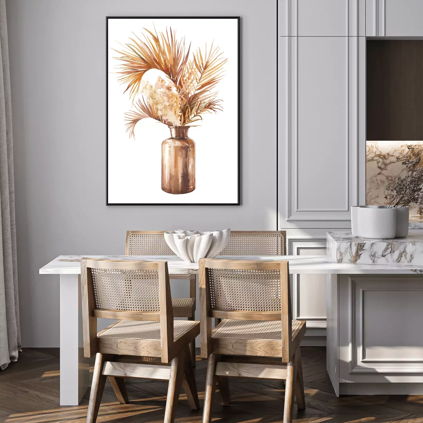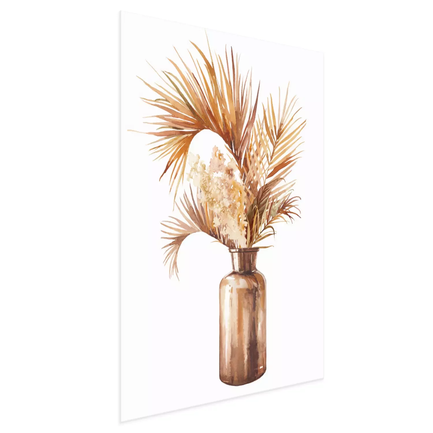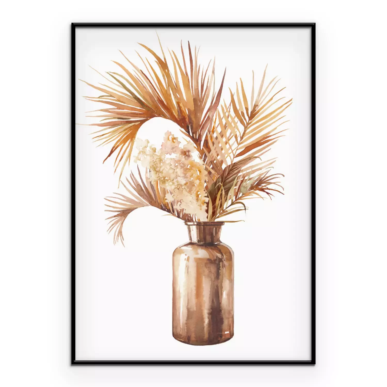 Poster  Watercolor dried tropical plants bouquet in glass bottle. Boho chic home decor. Isolated illustration on white background