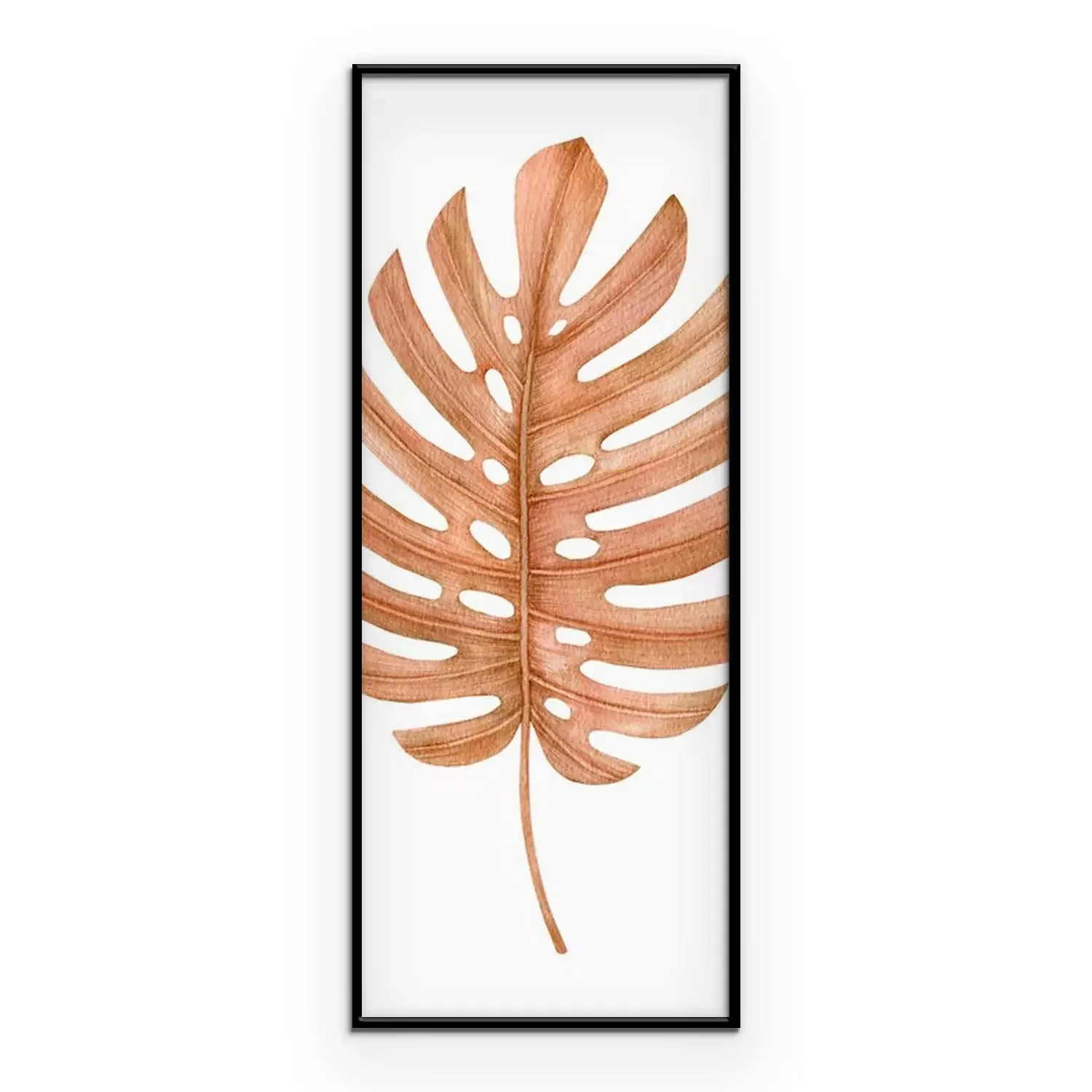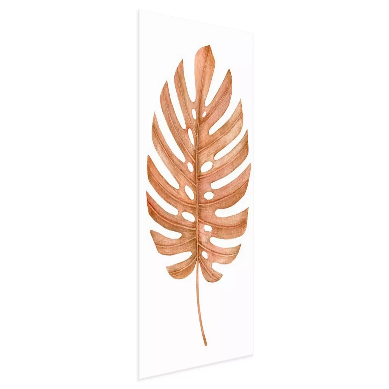 Poster  Watercolor golden dried fan palm leaf. Monstera leaf. Exotic beige clipart isolated on the white background. Hand-drawn illustration. California boho style.
