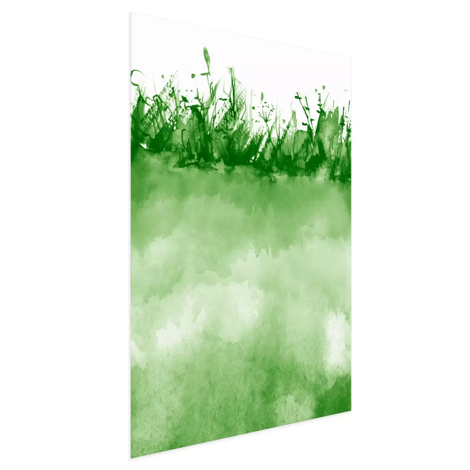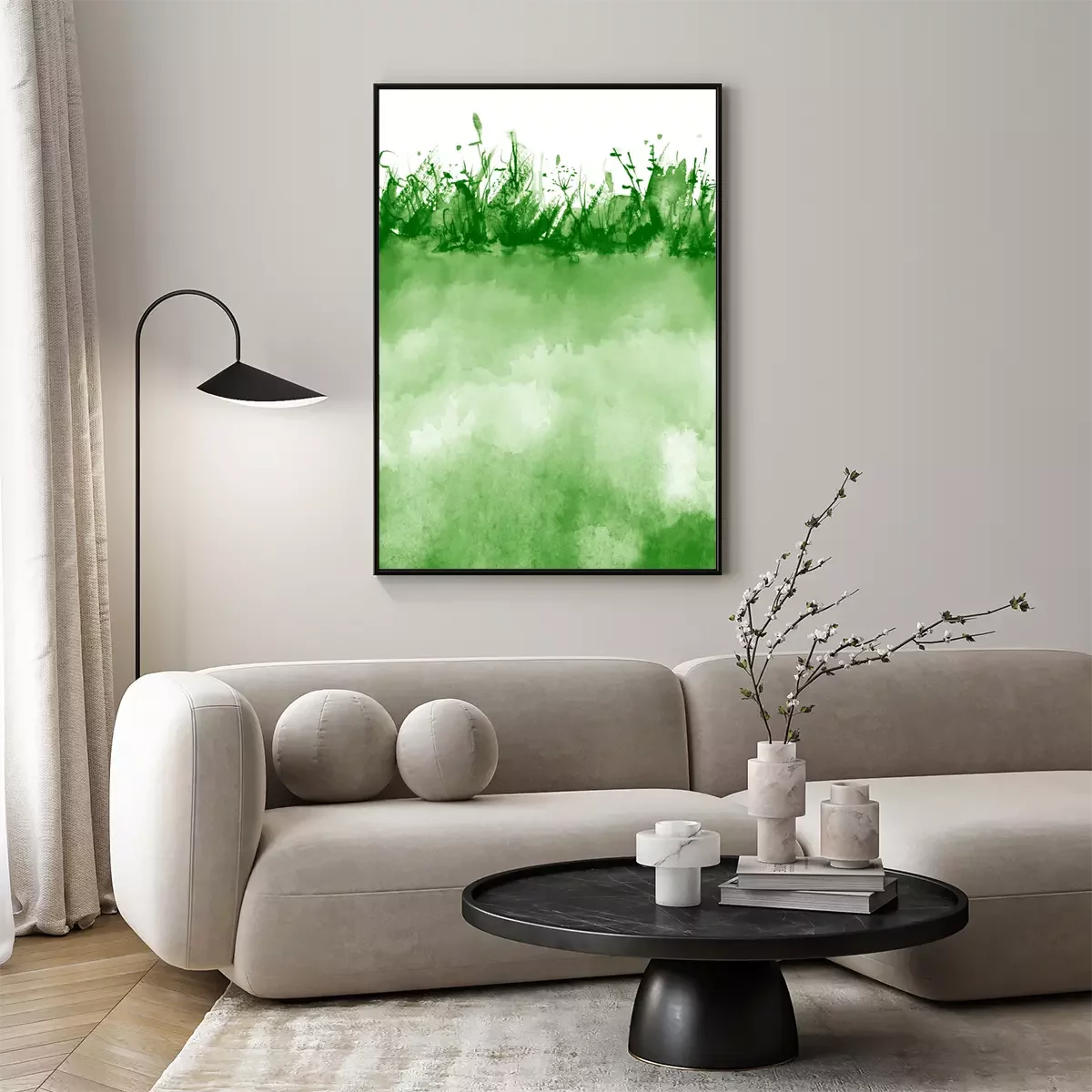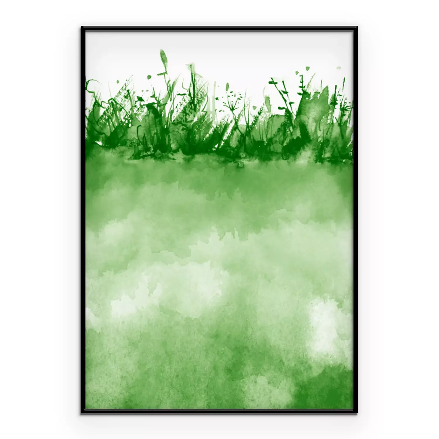 Poster  Watercolor illustration. background with vintage floral pattern - grass, wild plants of green color. Watercolor card, postcard, invitation. green watercolor natural, organic, bio, eco label