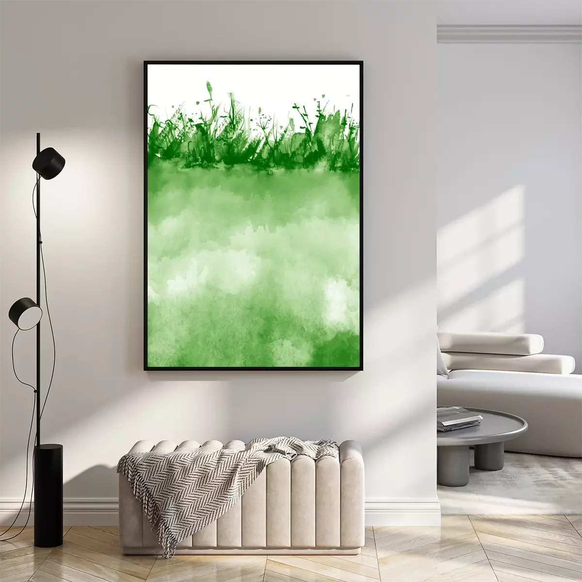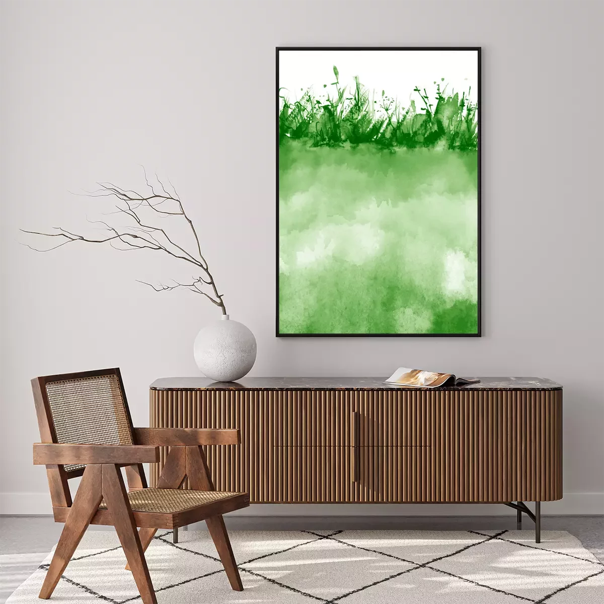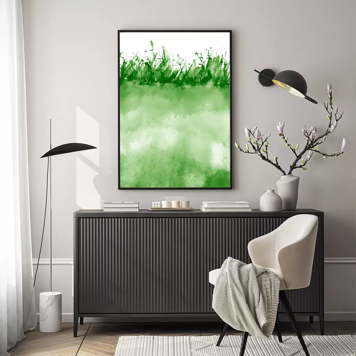 Poster  Watercolor illustration. background with vintage floral pattern - grass, wild plants of green color. Watercolor card, postcard, invitation. green watercolor natural, organic, bio, eco label