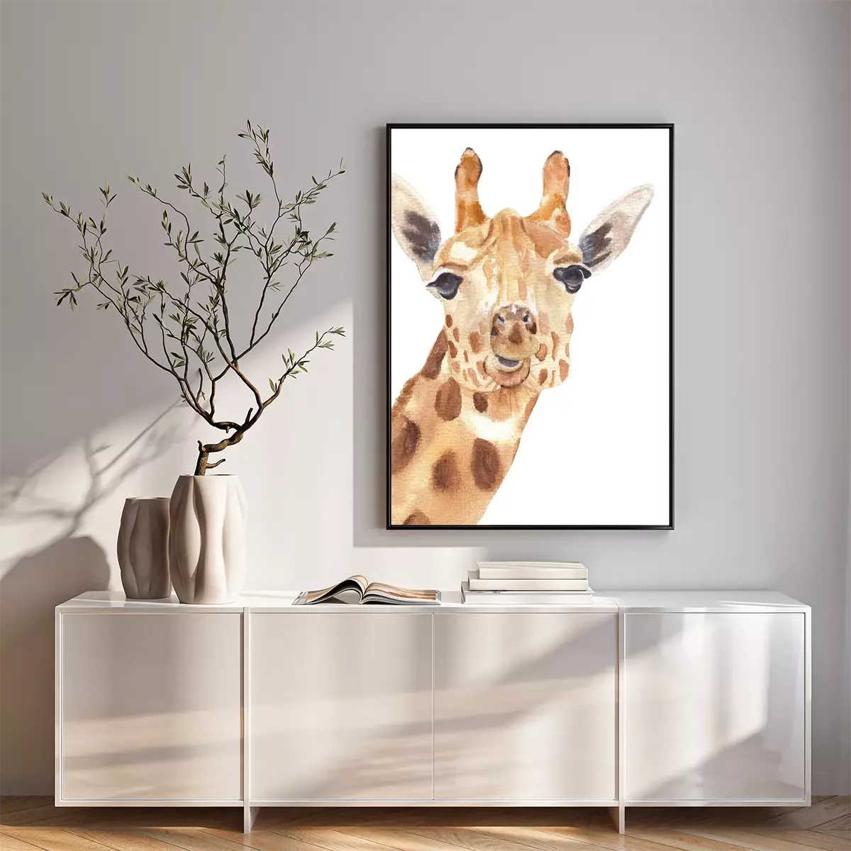 Poster  Watercolor safari animals portraits close ups: giraffe. Hand drawn hand painted posters great for wall design, pattern element, nursery decor, play room design