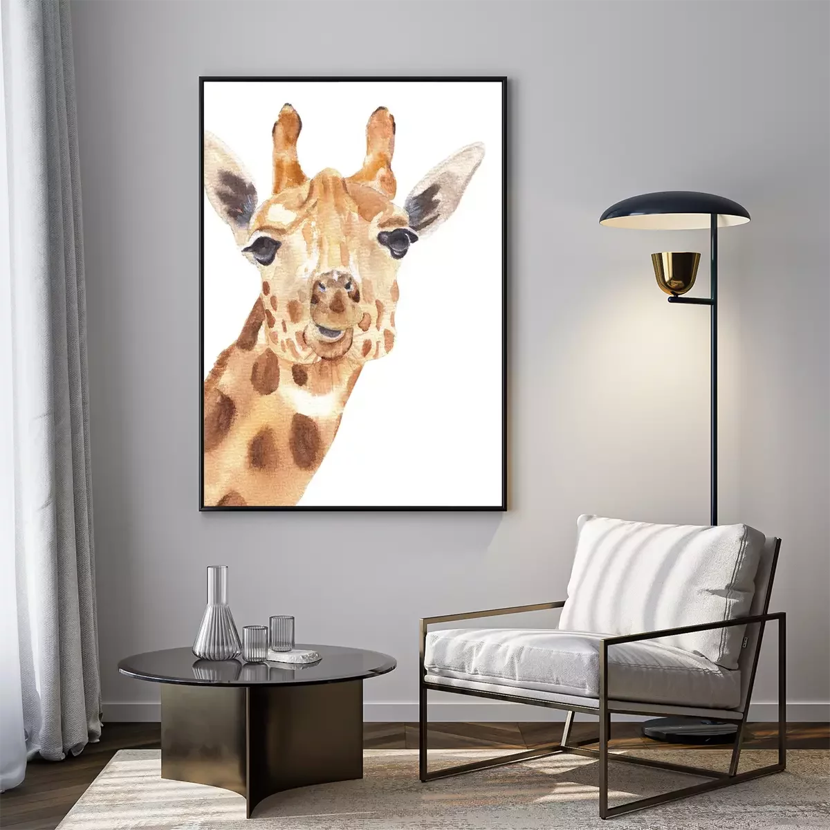 Poster : Watercolor safari animals portraits close ups: giraffe. Hand drawn hand painted posters great for wall design, pattern element, nursery decor, play room design