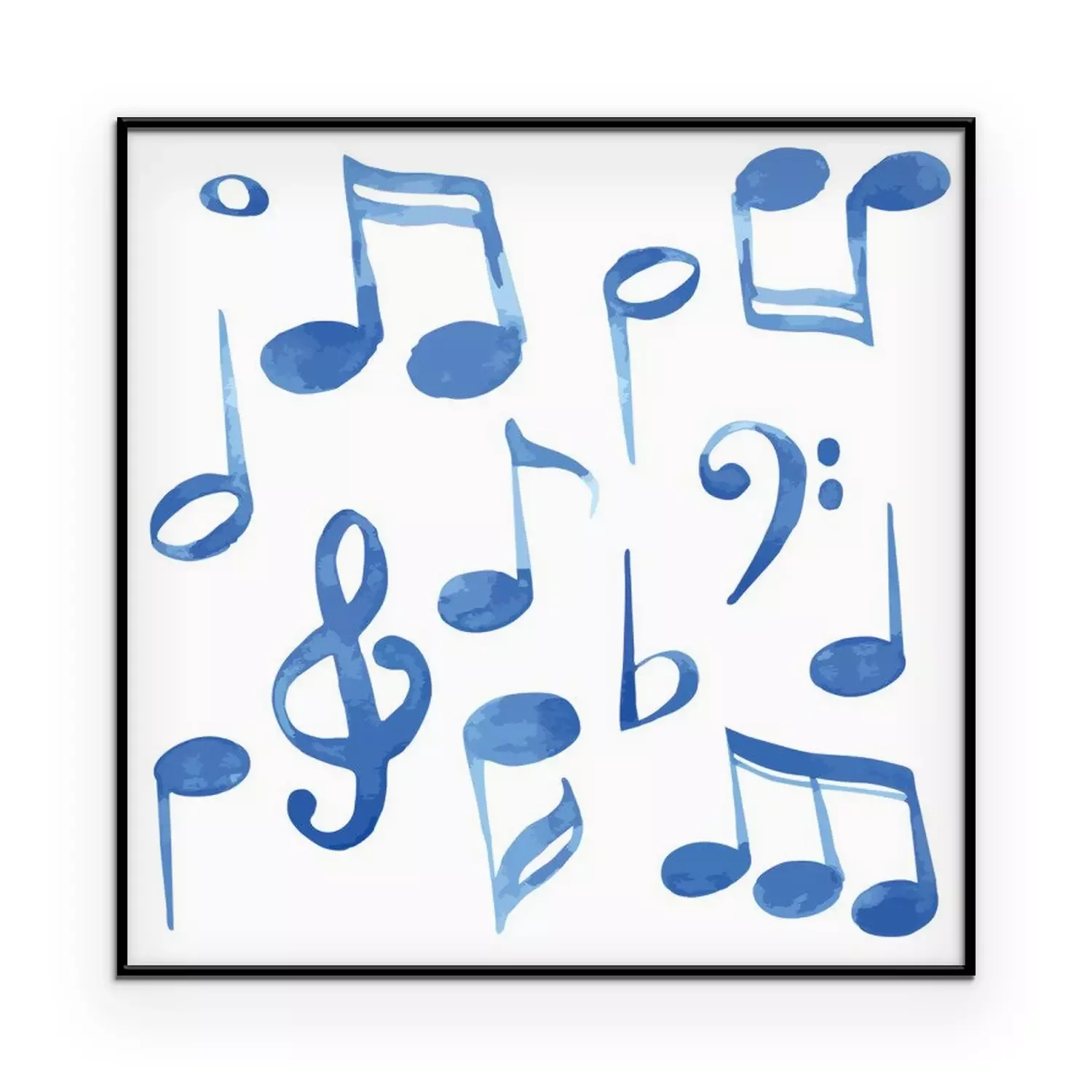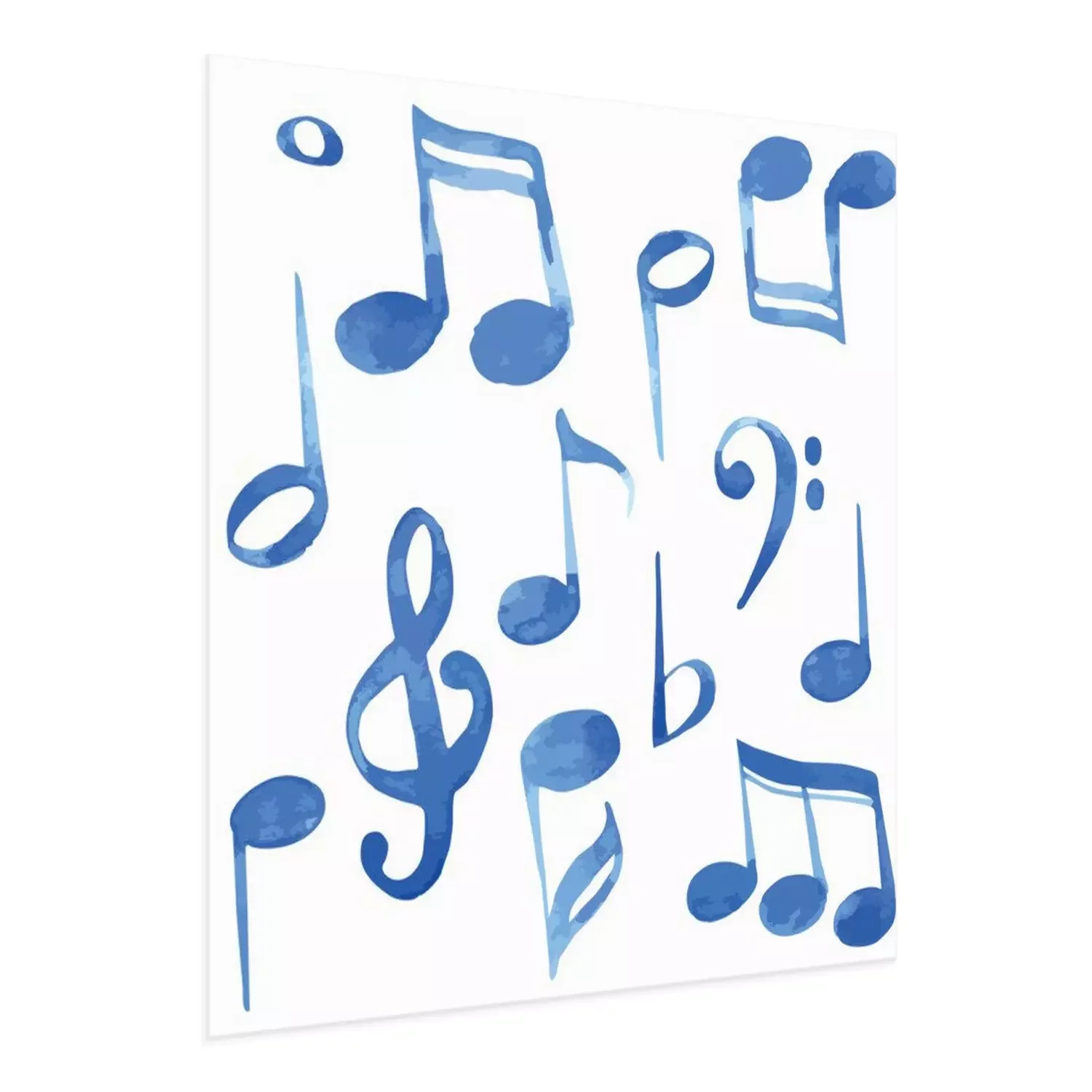 Poster : Watercolor vector illustration blue music notes and keys pattern set