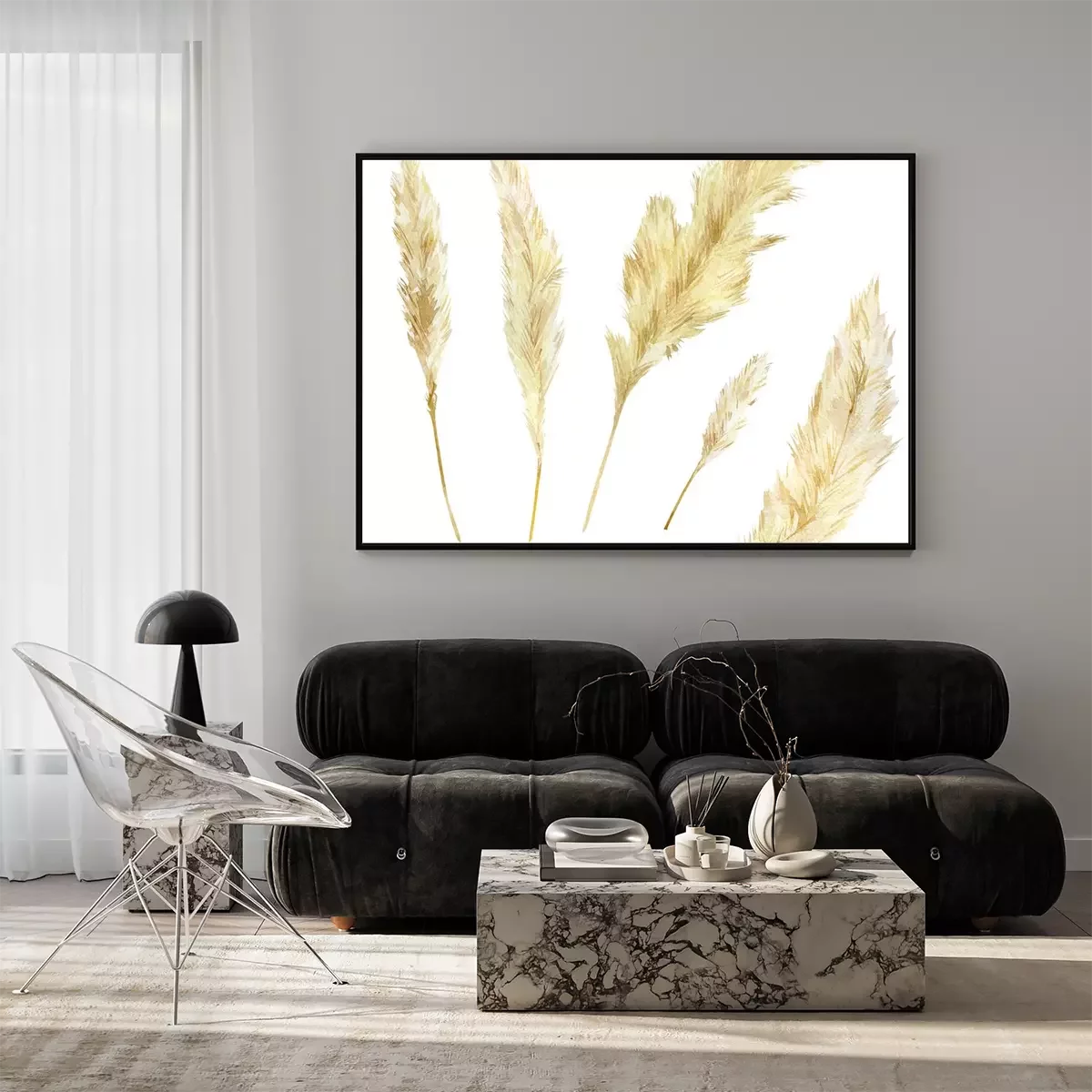 Poster : Watercolor wild herbarium floral set. Pampas graas element for design boho and modern style. Panicle Cortaderia selloana South America, feathery flower head plumes.
