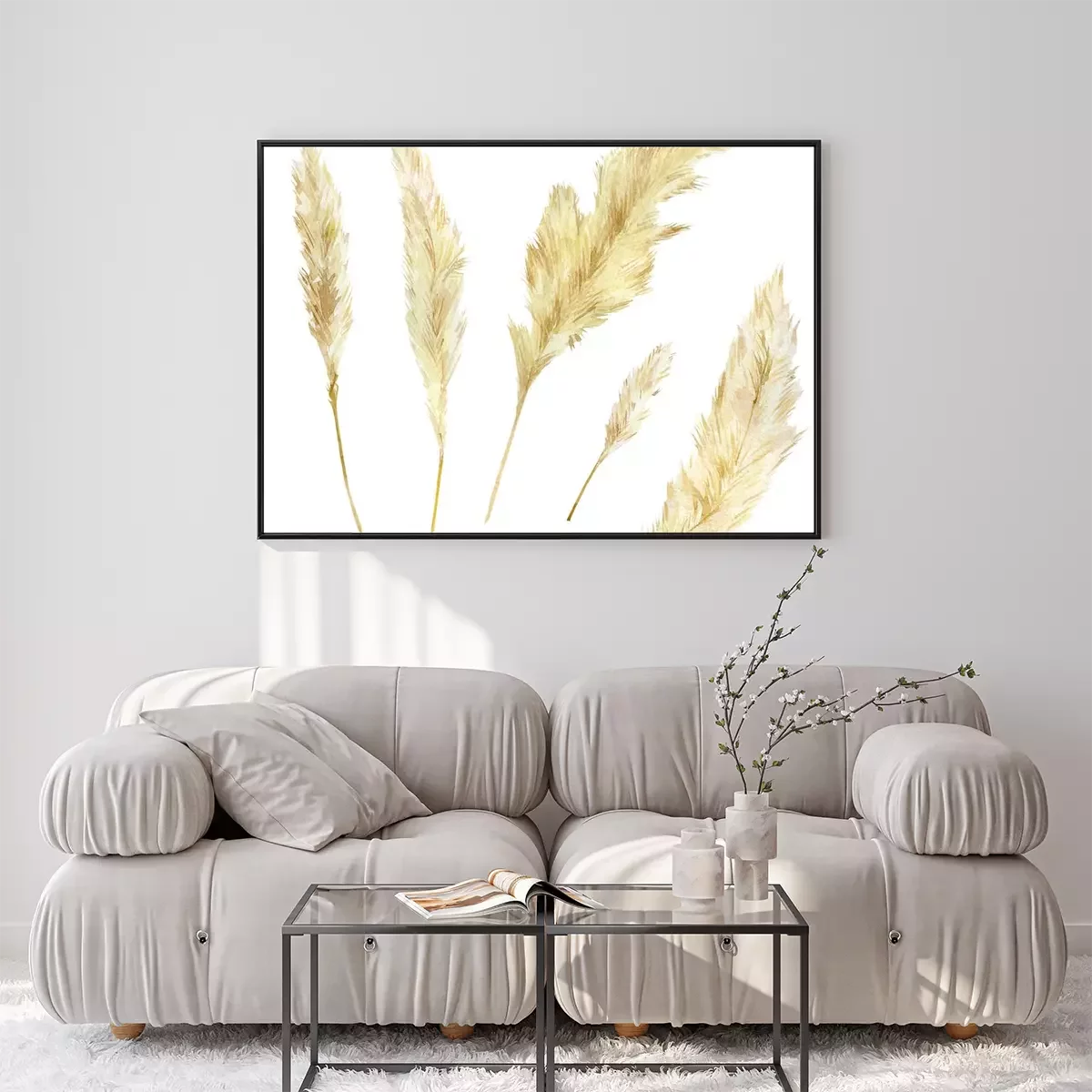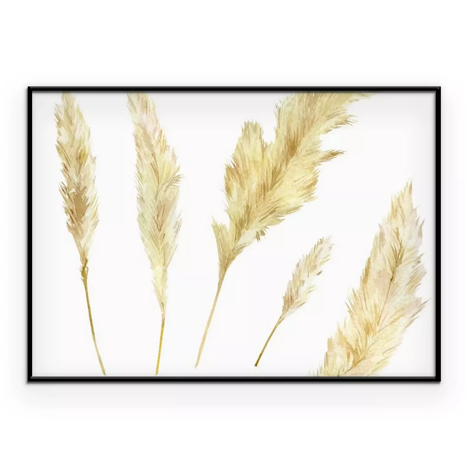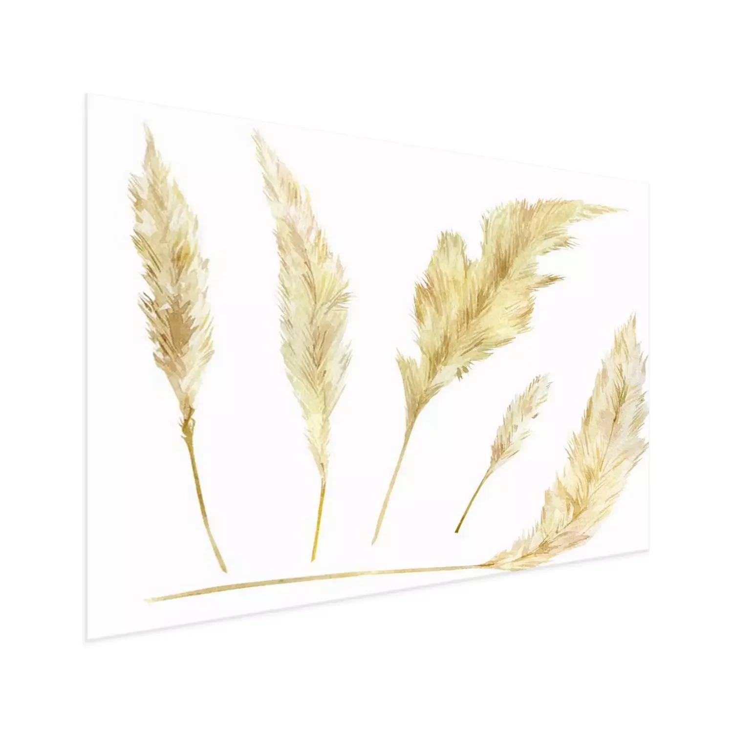 Poster  Watercolor wild herbarium floral set. Pampas graas element for design boho and modern style. Panicle Cortaderia selloana South America, feathery flower head plumes.