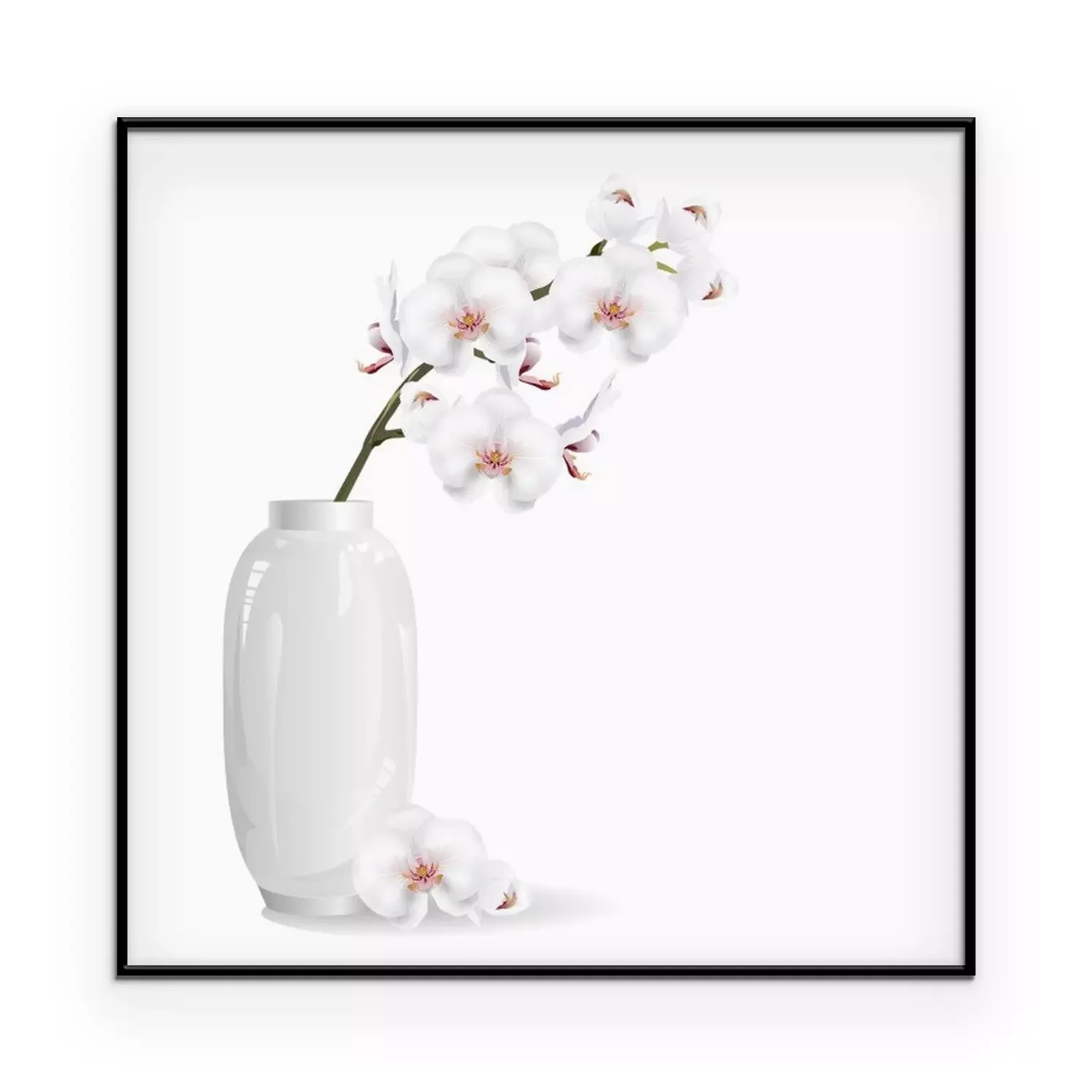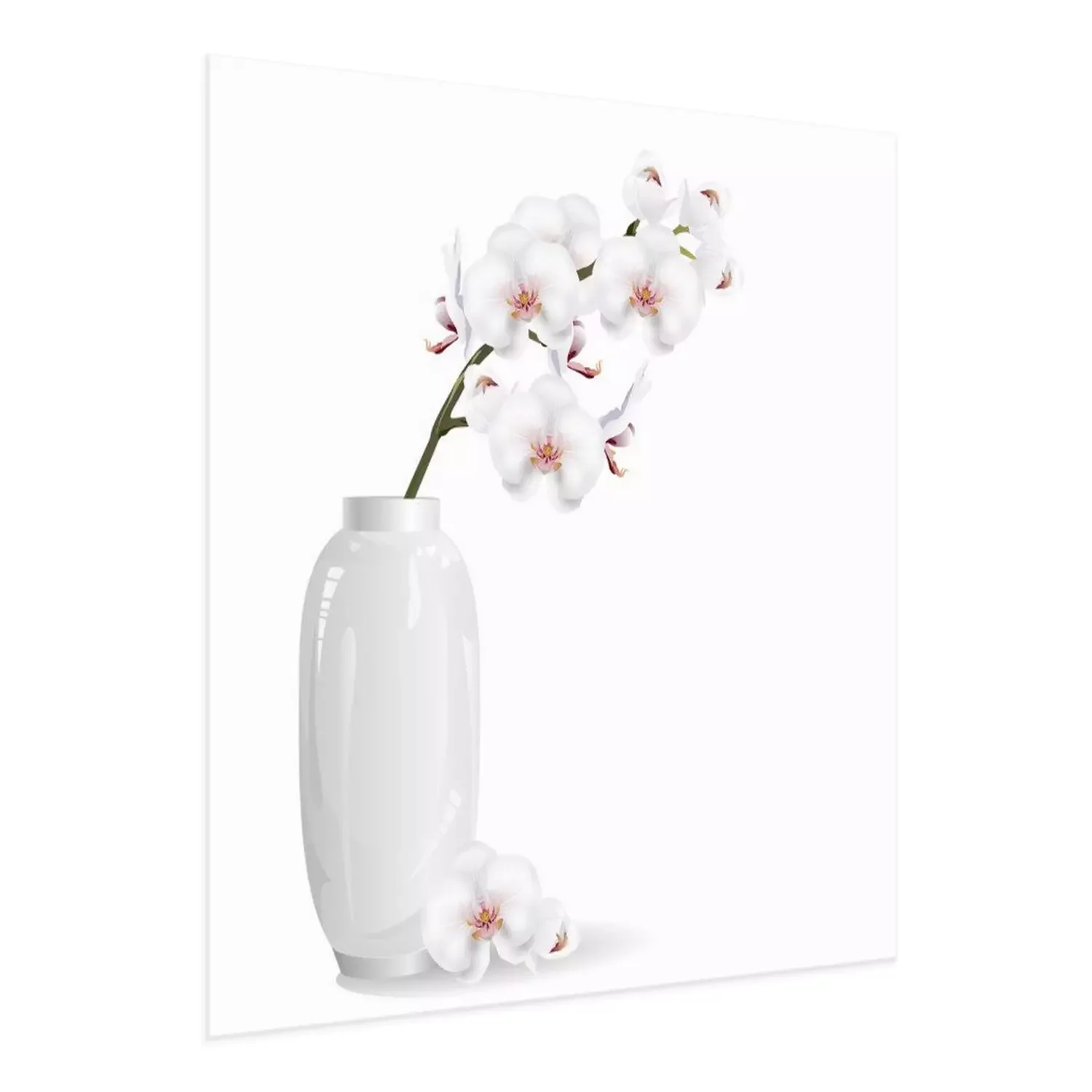Poster : Wit orchideeëntakje in een glimmende vaas