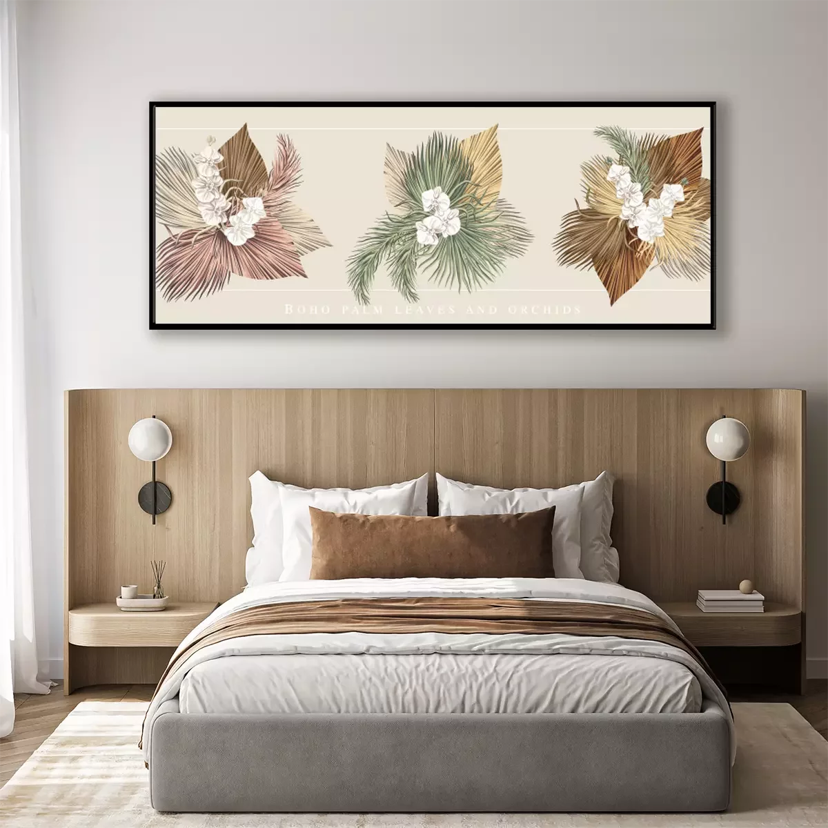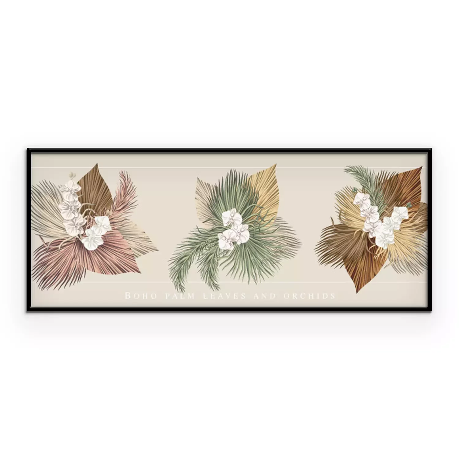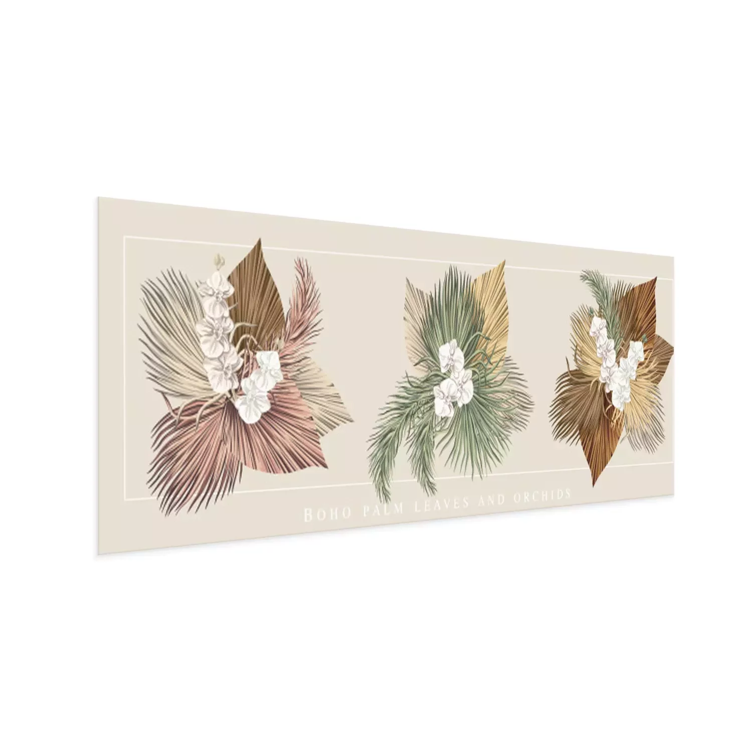 Boho bouquet dried palm leaves rose anthurium flower illustration. Tropical jungle floral vector composition.