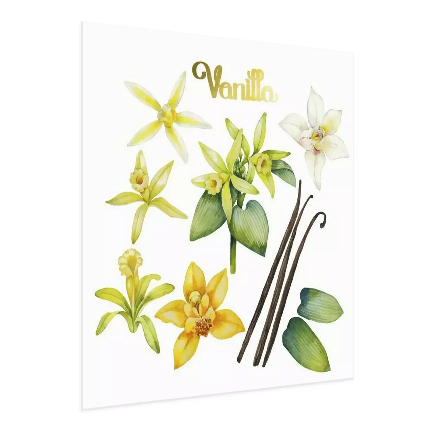 Poster : Witte orchidee en bloemen en vanilleblaadjes