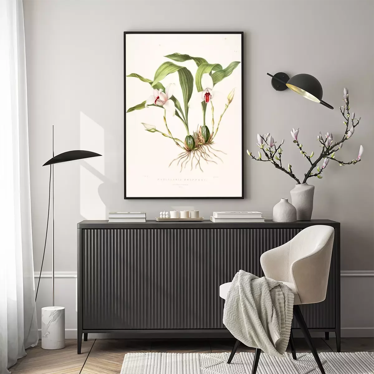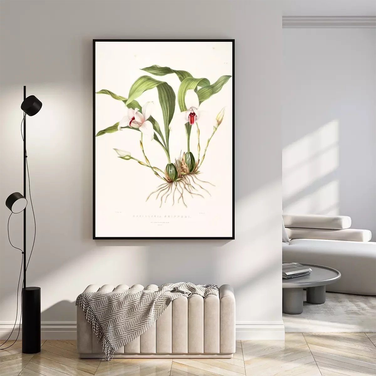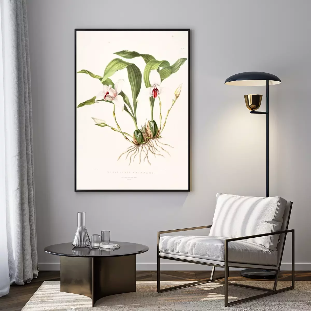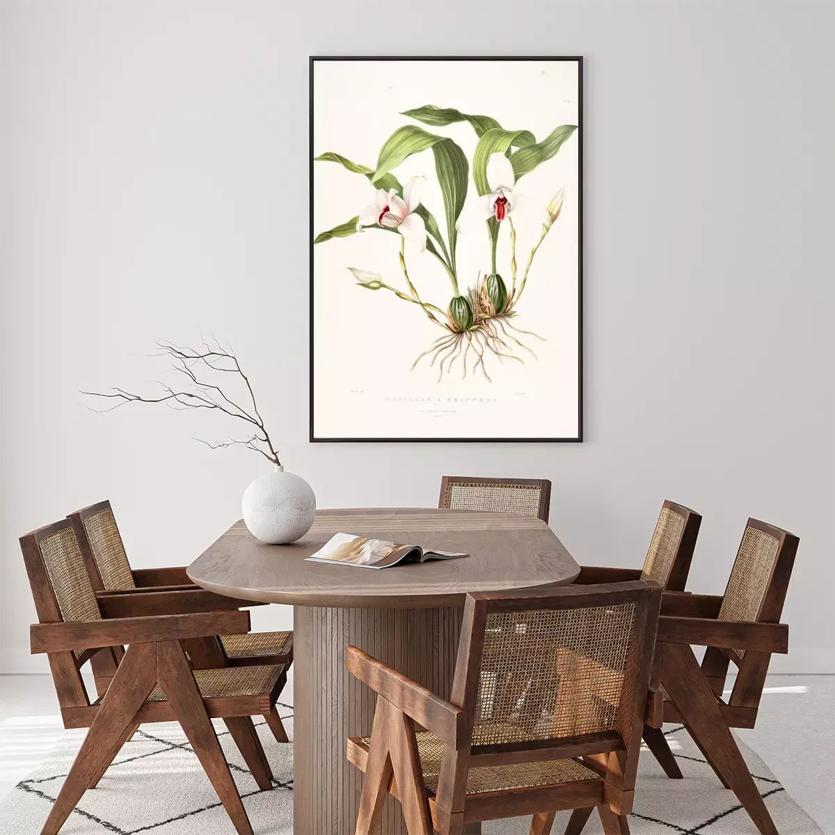 Poster : Witte orchidee in een botanische tekening