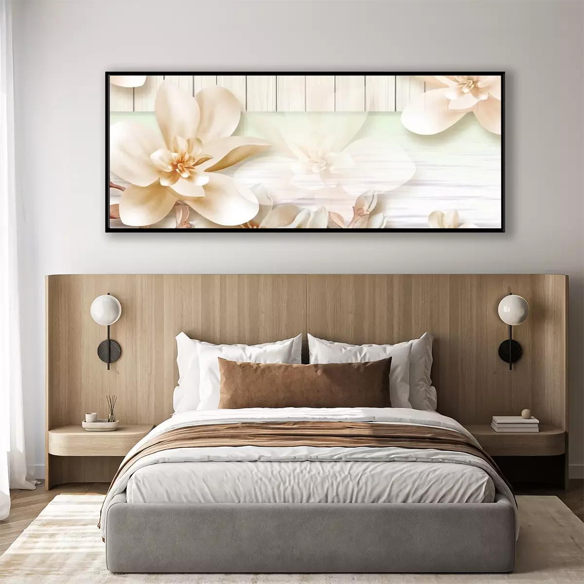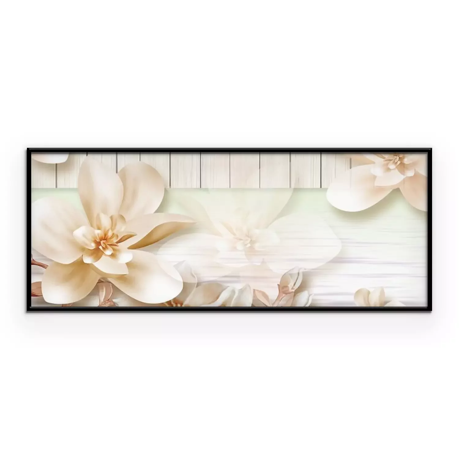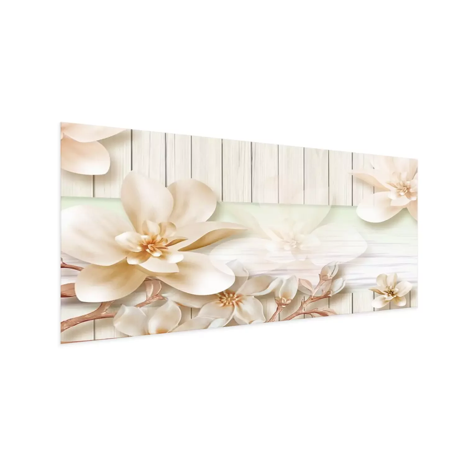 Poster  Witte orchidee op een achtergrond van lichte planken