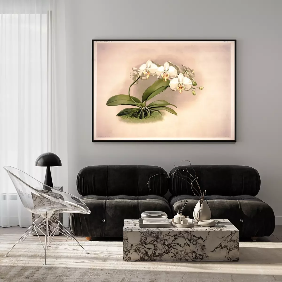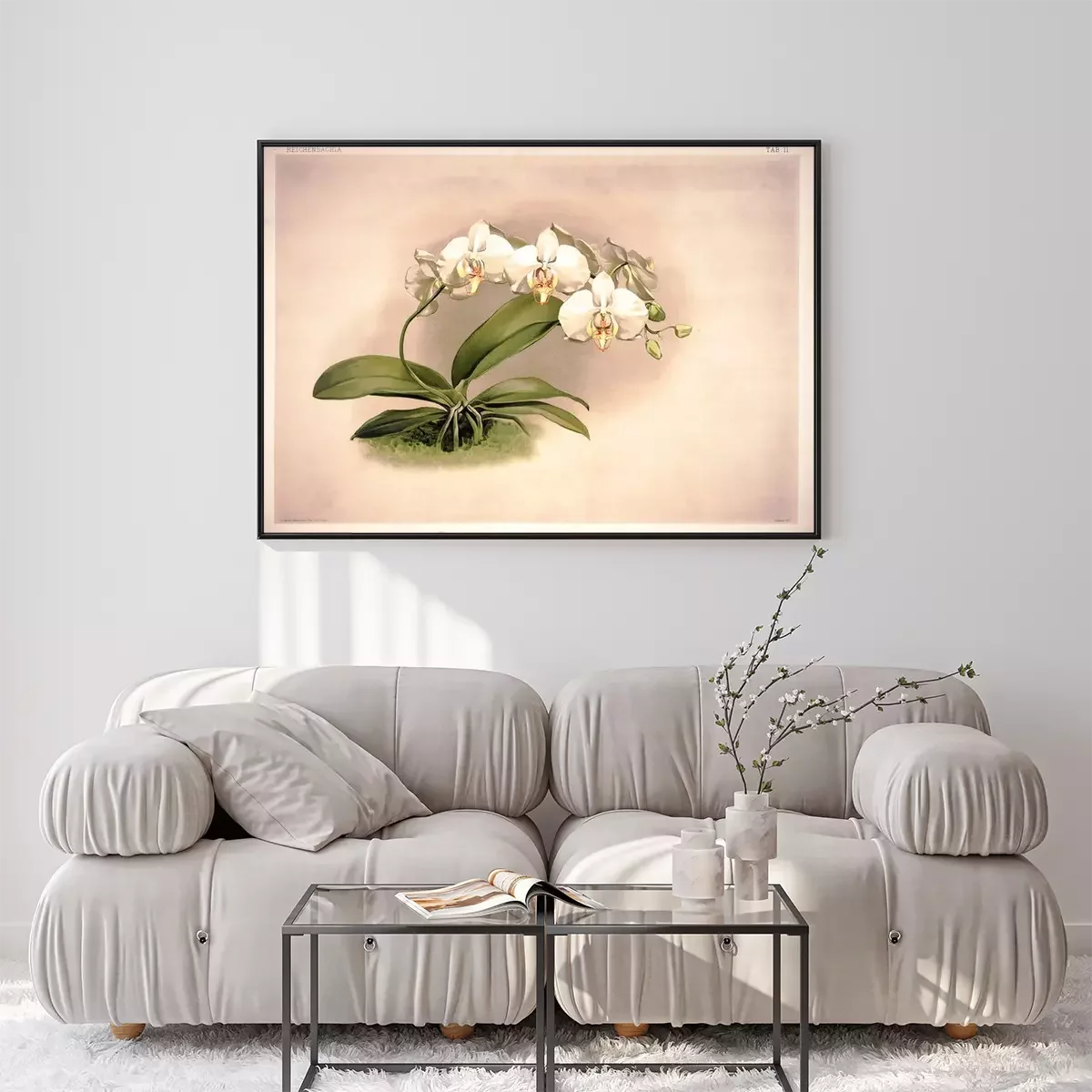Poster : Witte orchidee op een verouderde achtergrond
