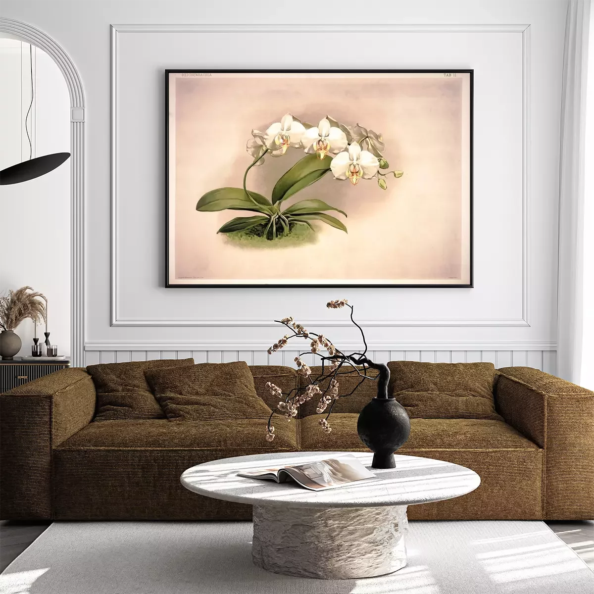 Poster  Witte orchidee op een verouderde achtergrond