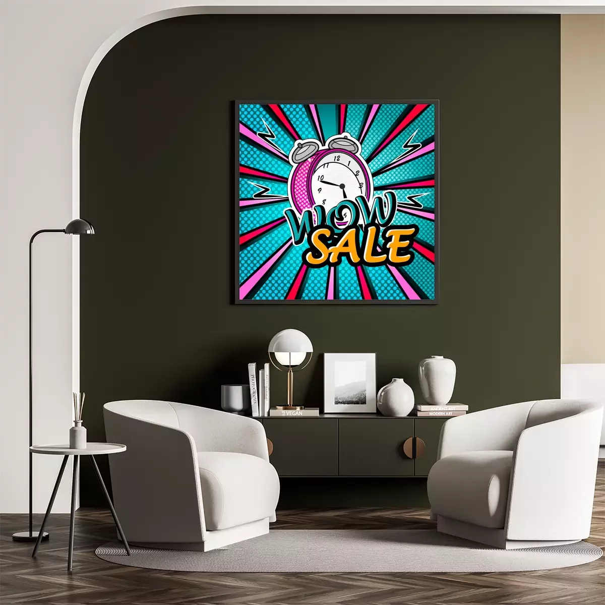 Poster : Wow, vente, clair, pop art, explosion, sur, pointillé, fond