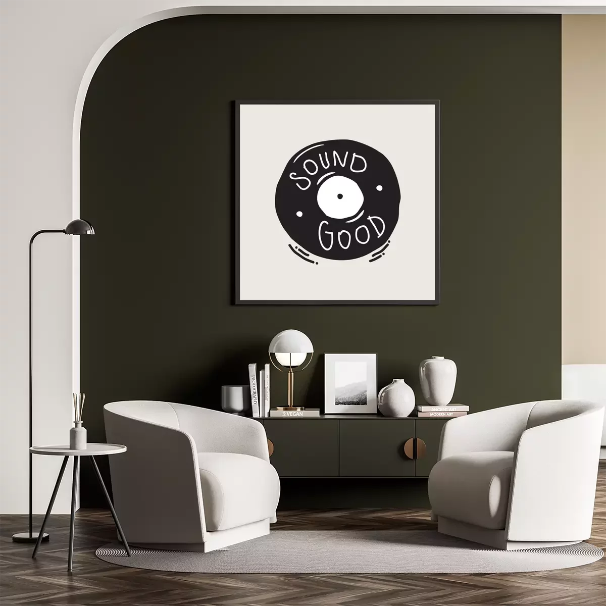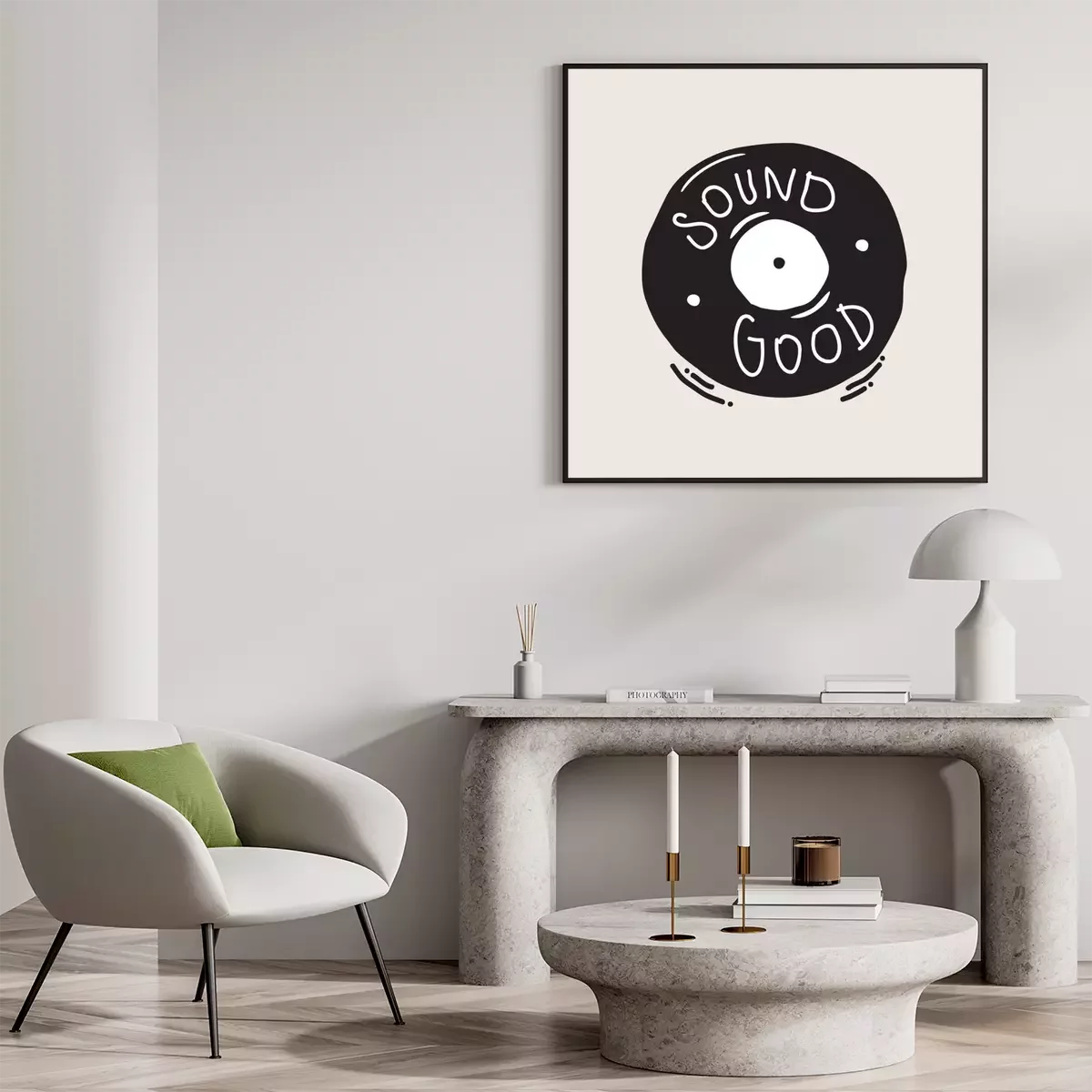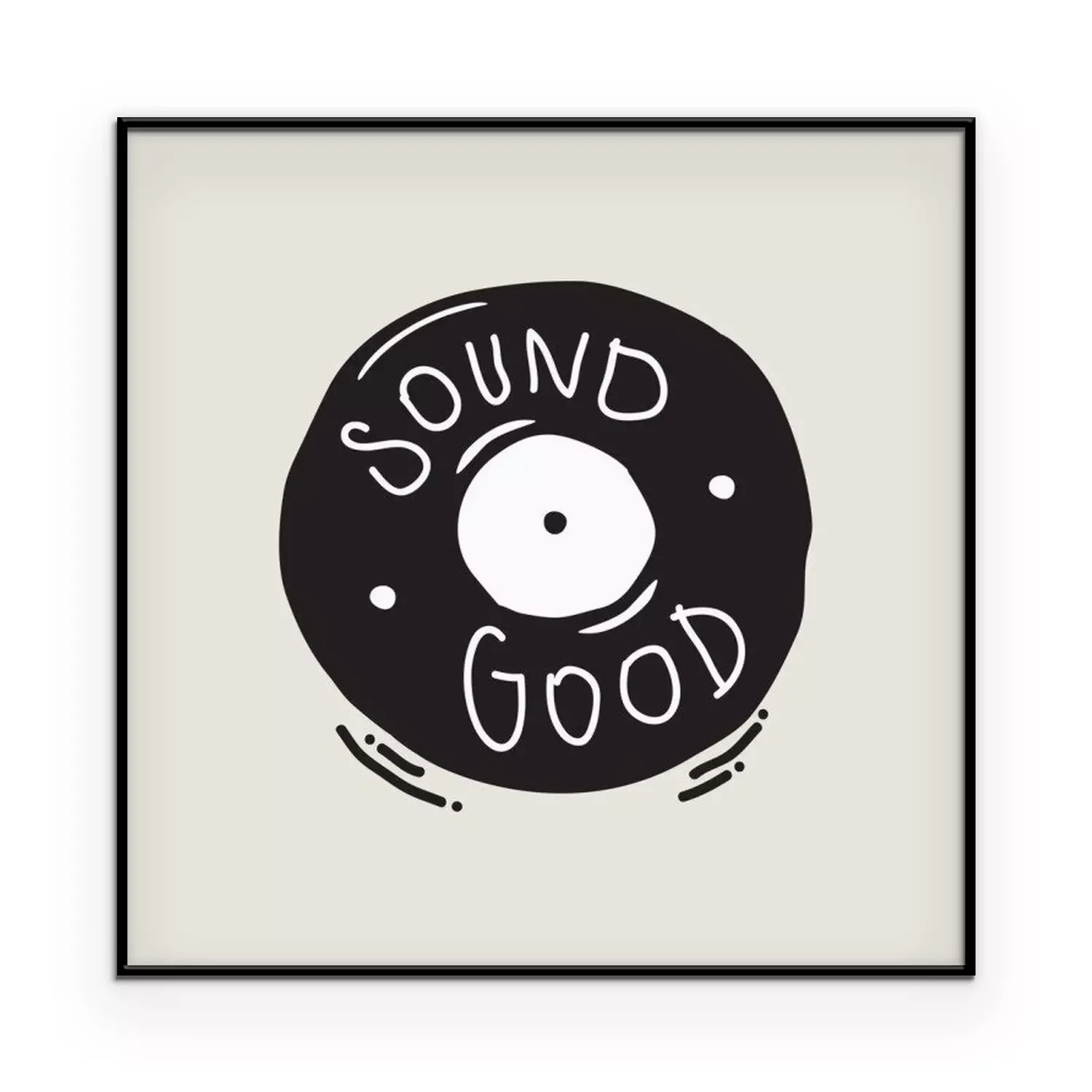 Poster : Illustration de disque vinyle avec texte manuscrit, «Sound Good».