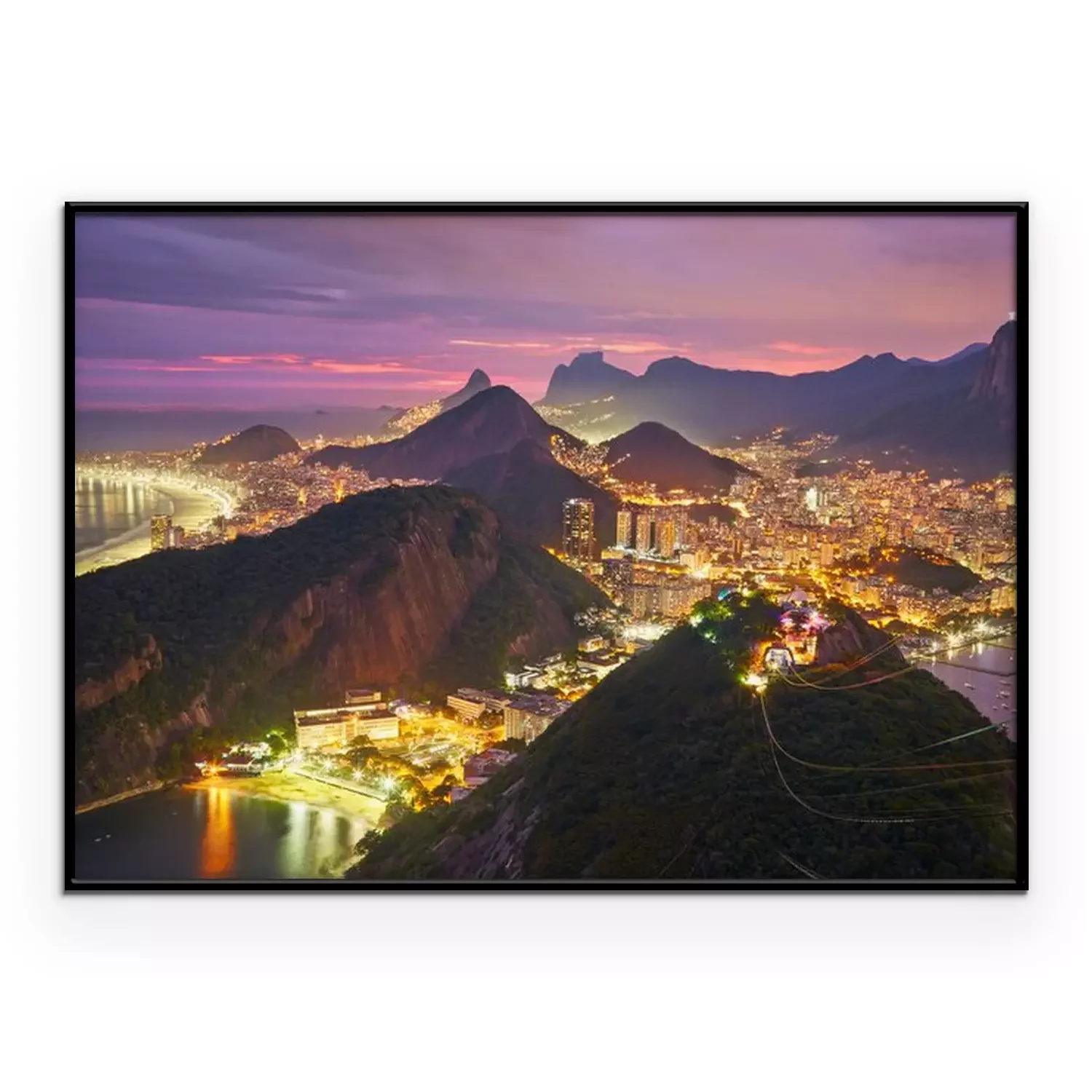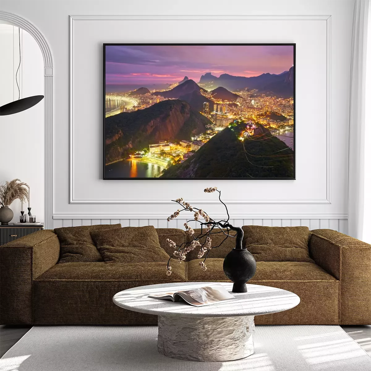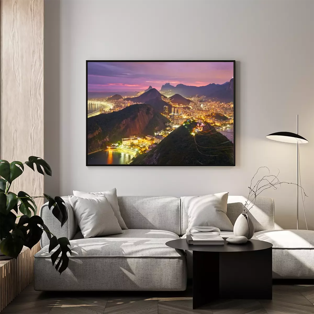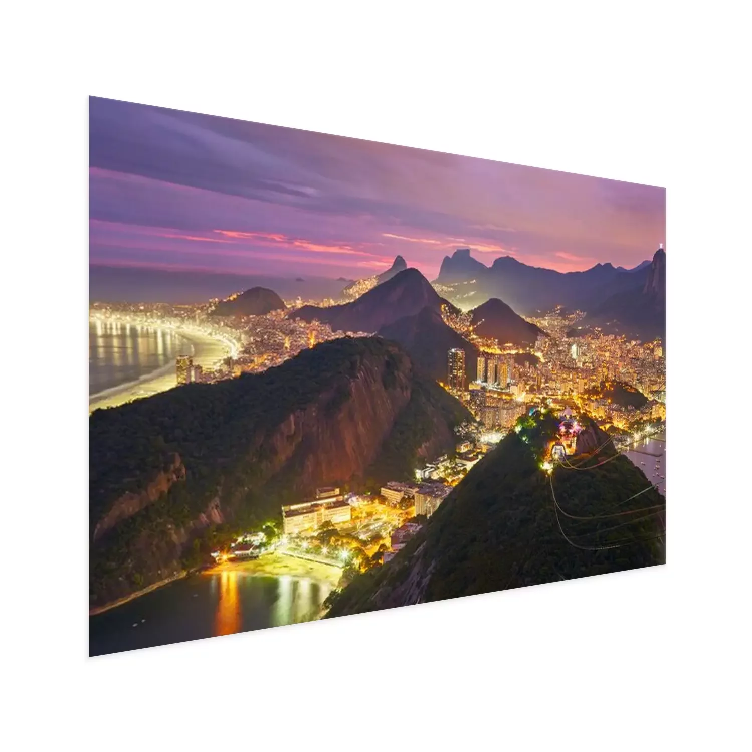 Poster : Montagnes dans les nuages ​​et ville illuminée