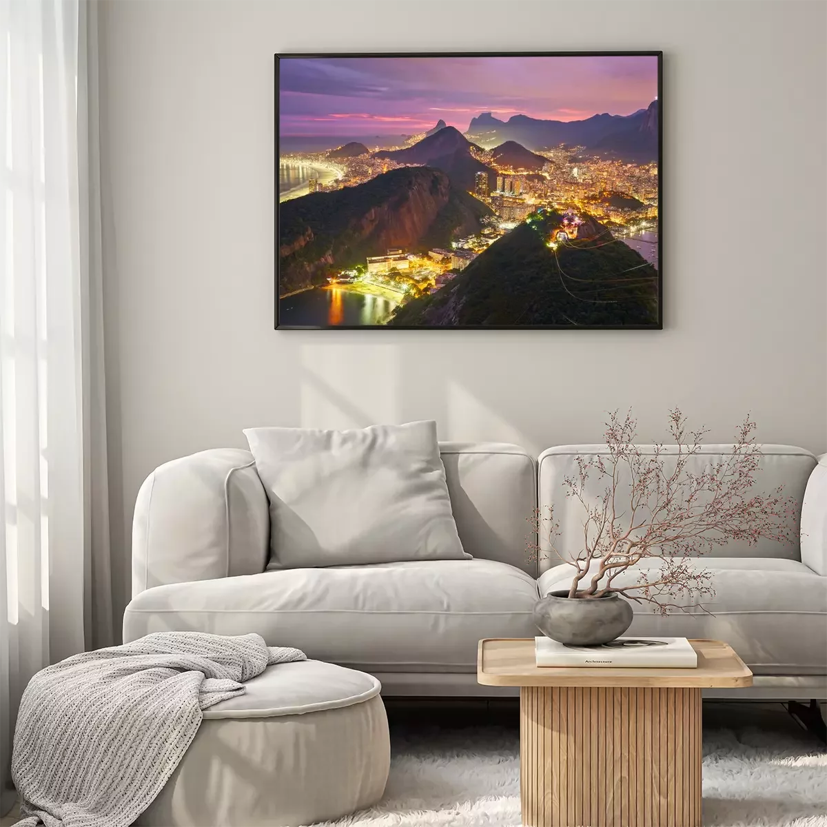 Poster  Montagnes dans les nuages ​​et ville illuminée