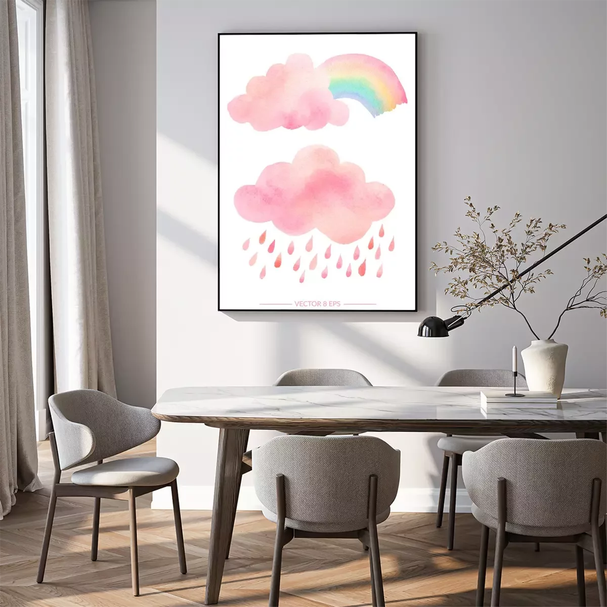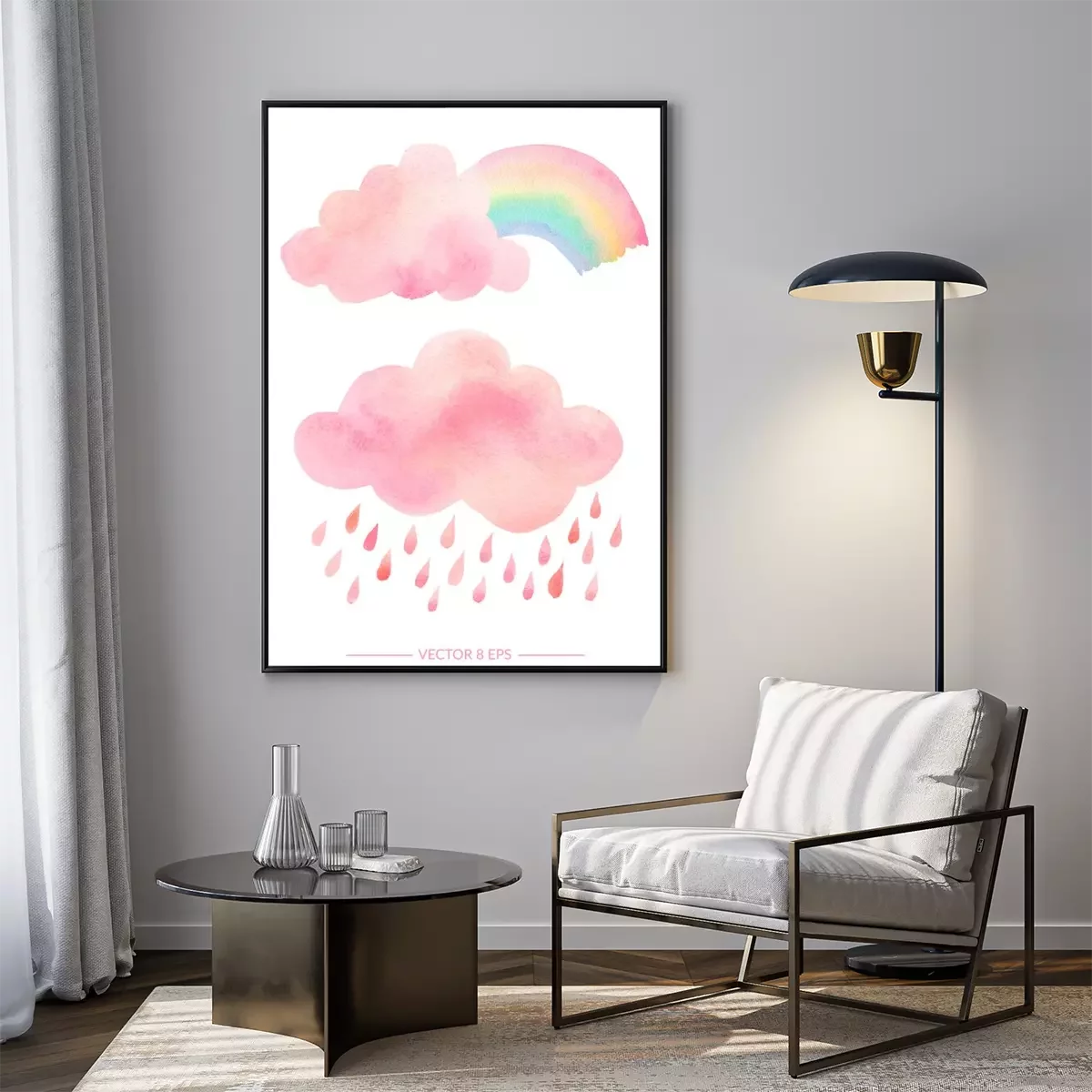 Poster : Nuages ​​aquarelles et arc-en-ciel