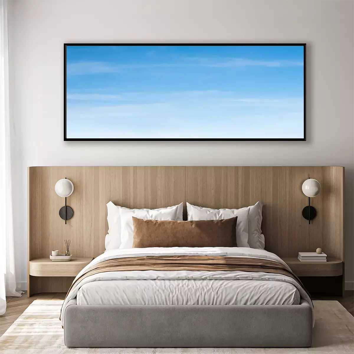 Poster  Une vue de fond aérienne de ciel bleu clair et de nuages ​​faibles blancs - bannière web panoramique