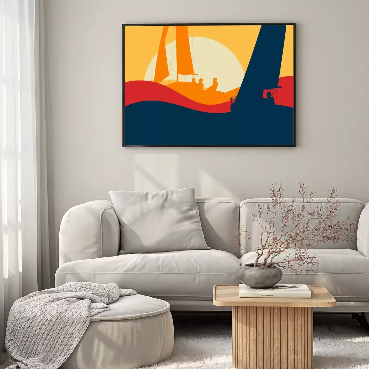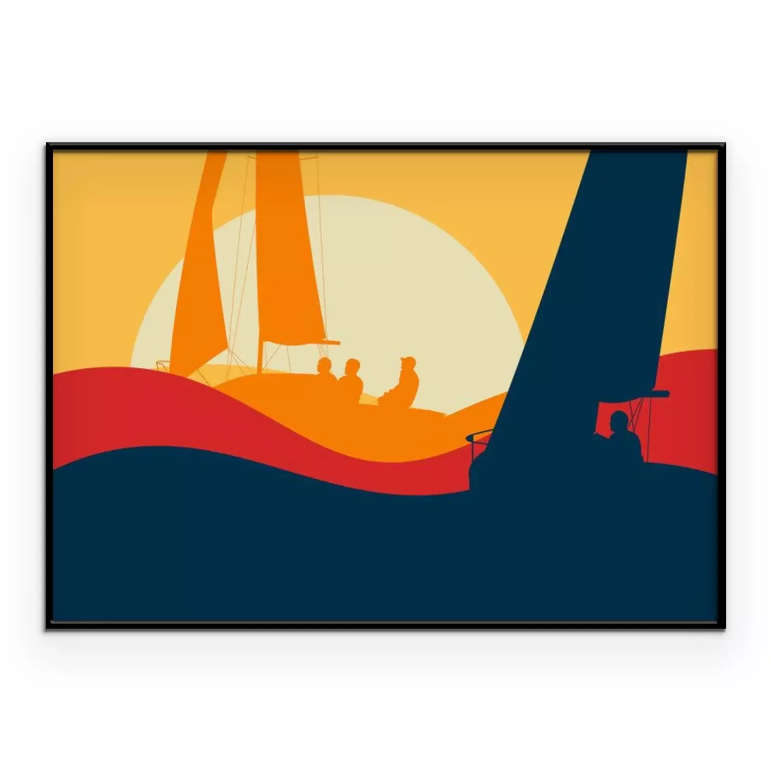 Poster  Yachts, voile, régate, océan, paysage, Coucher soleil