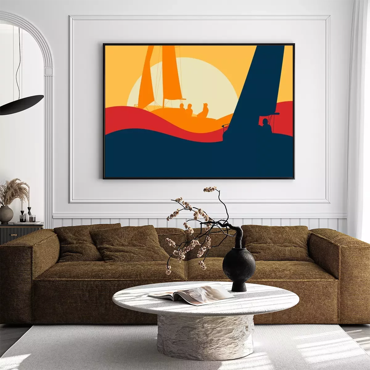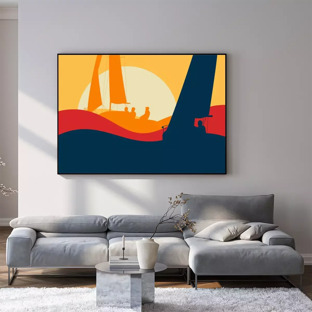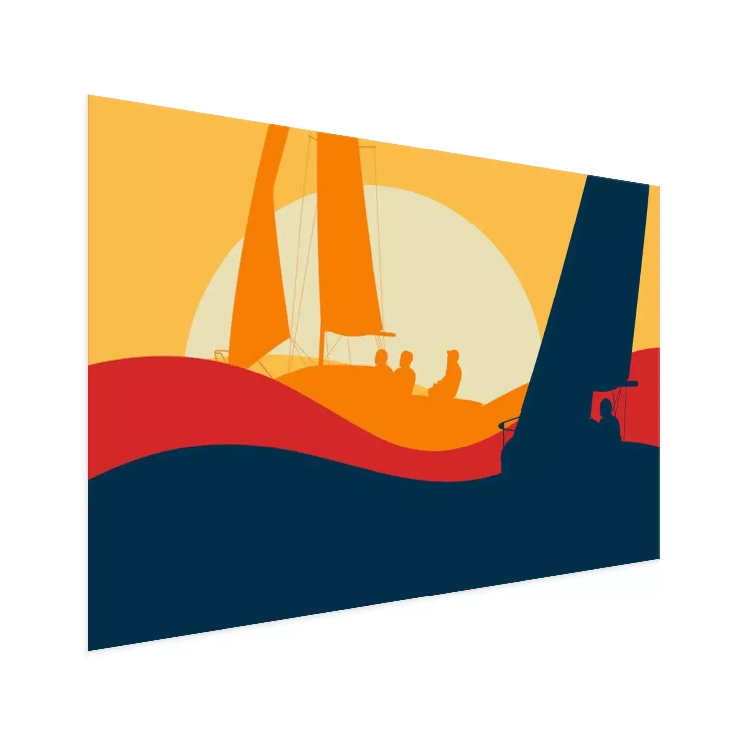 Poster : Yachts, voile, régate, océan, paysage, Coucher soleil