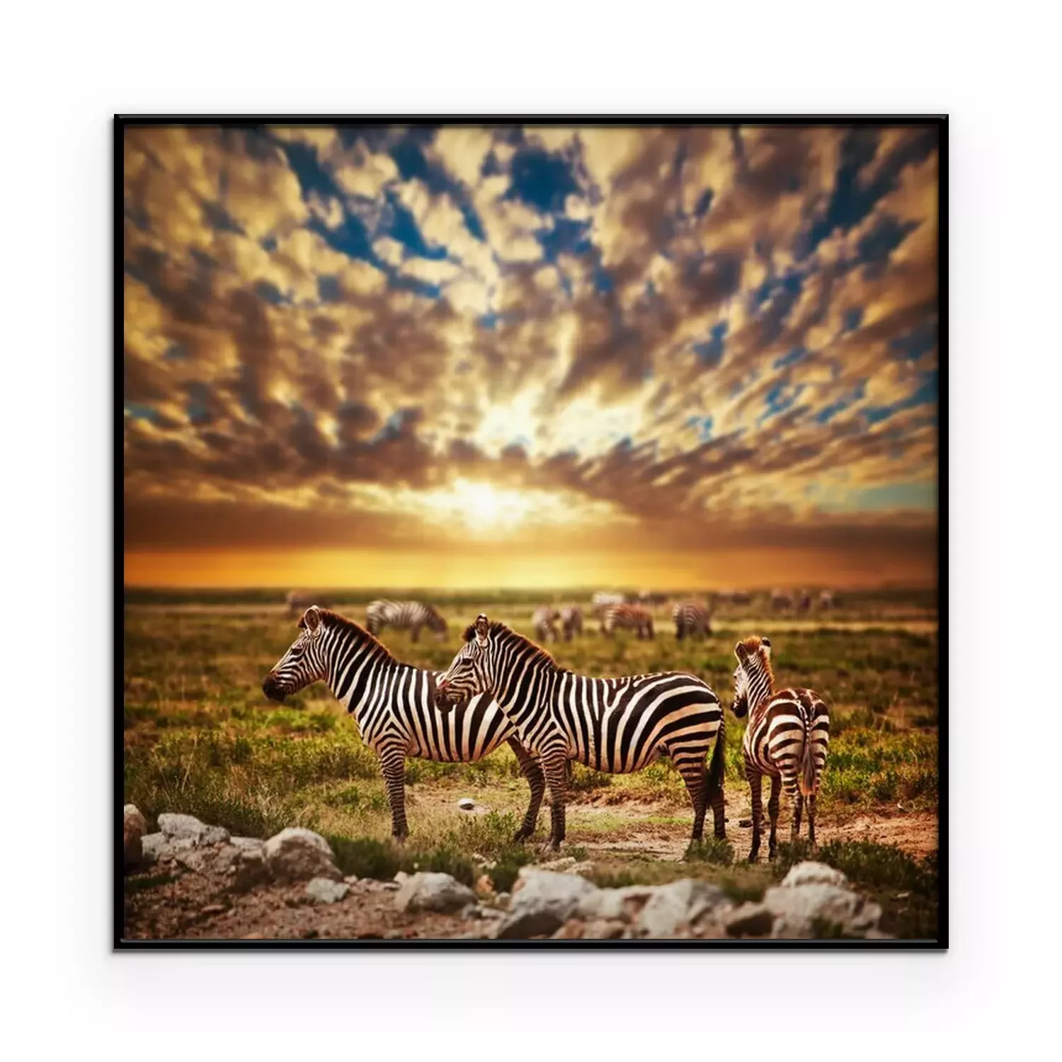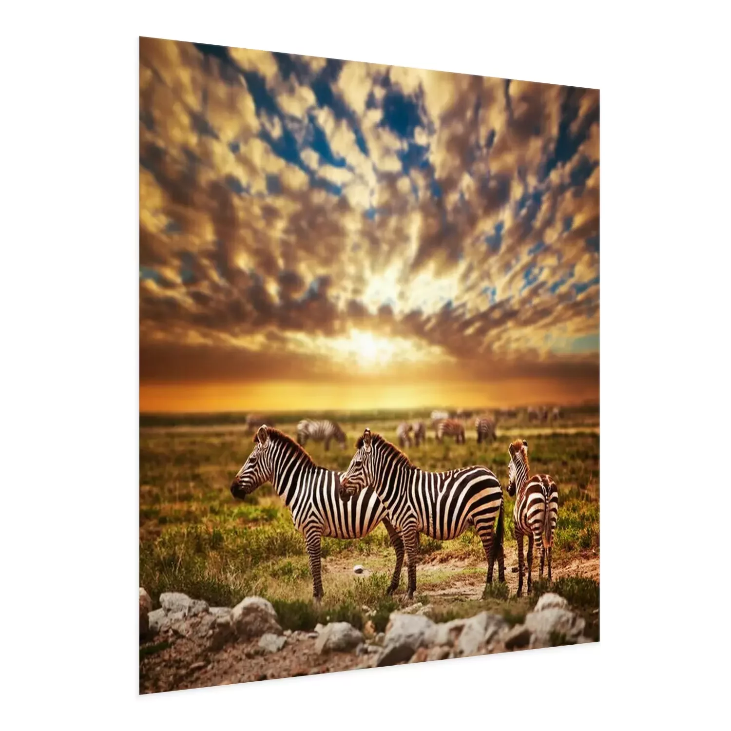 Poster : Zèbres du Serengeti sur fond de soleil couchant