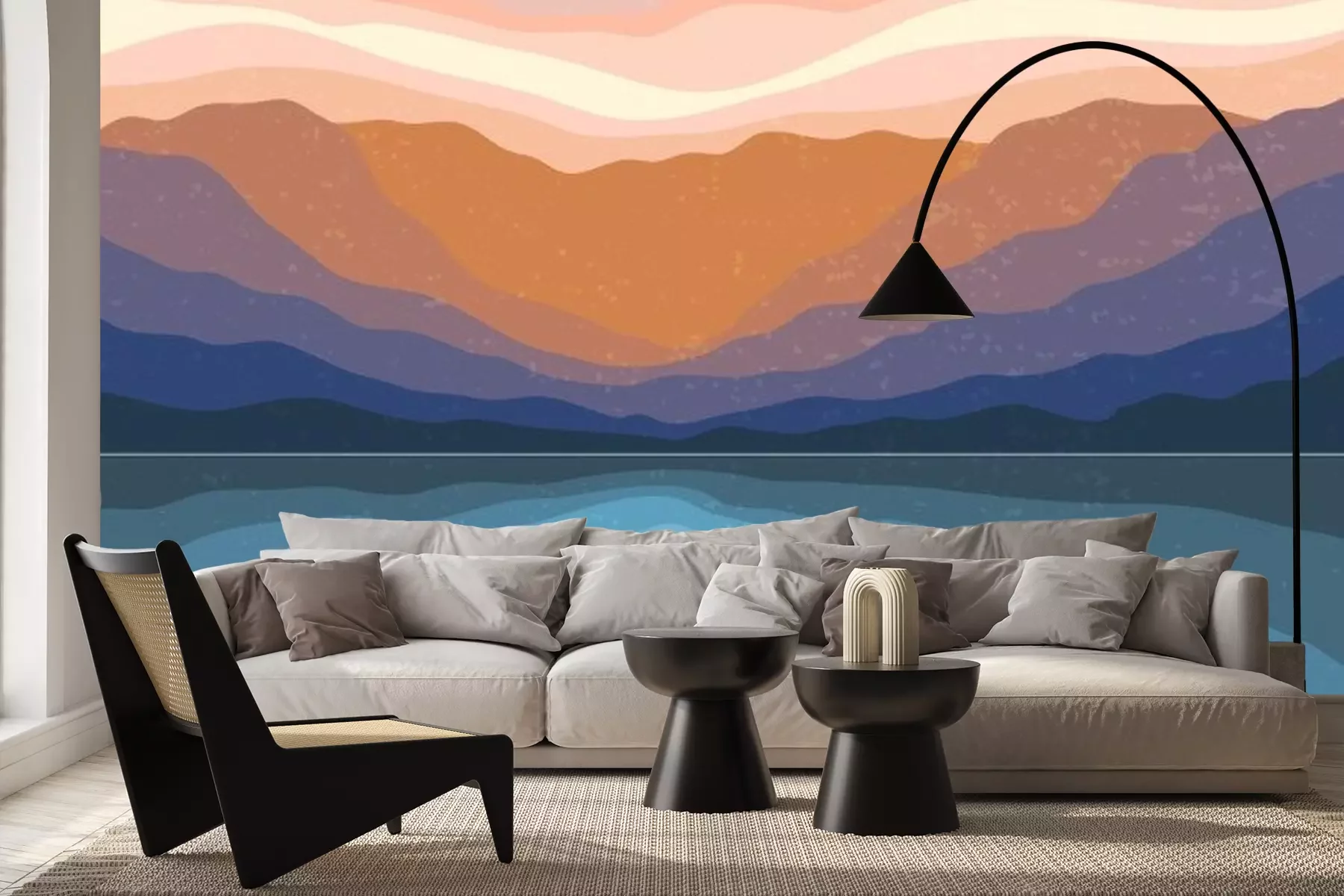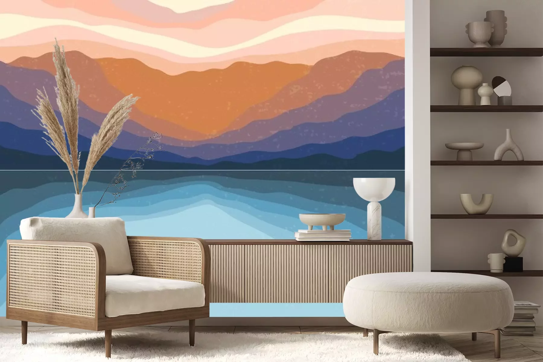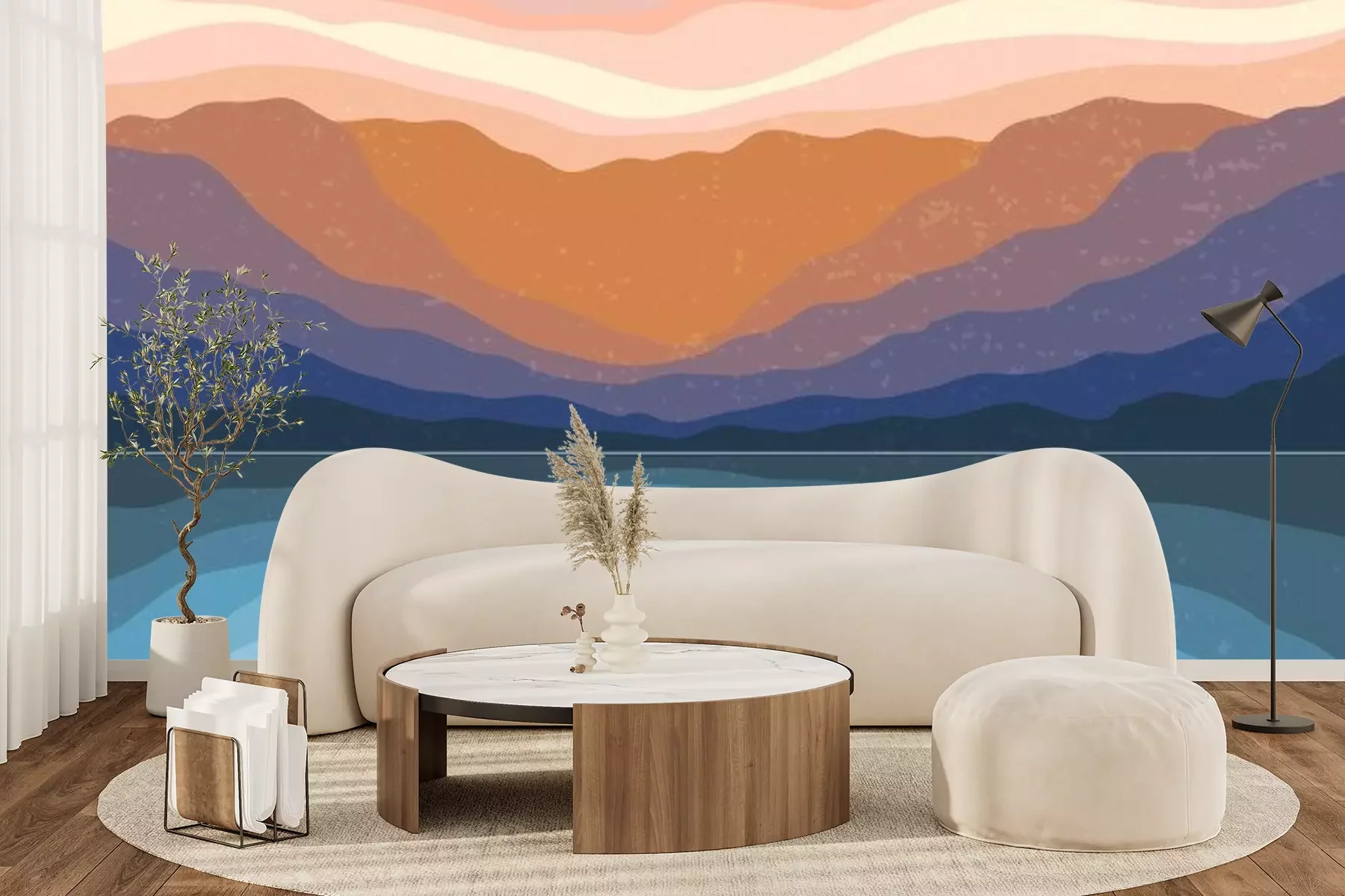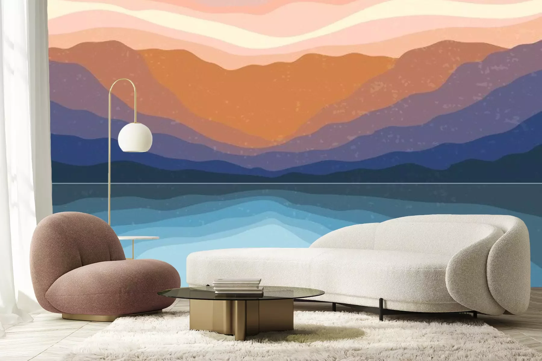 Sticker  Abstract Aesthetic mid century modern landscape Contemporary boho poster cover template. Minimal and natural Illustrations for art print, postcard, wallpaper, wall art.