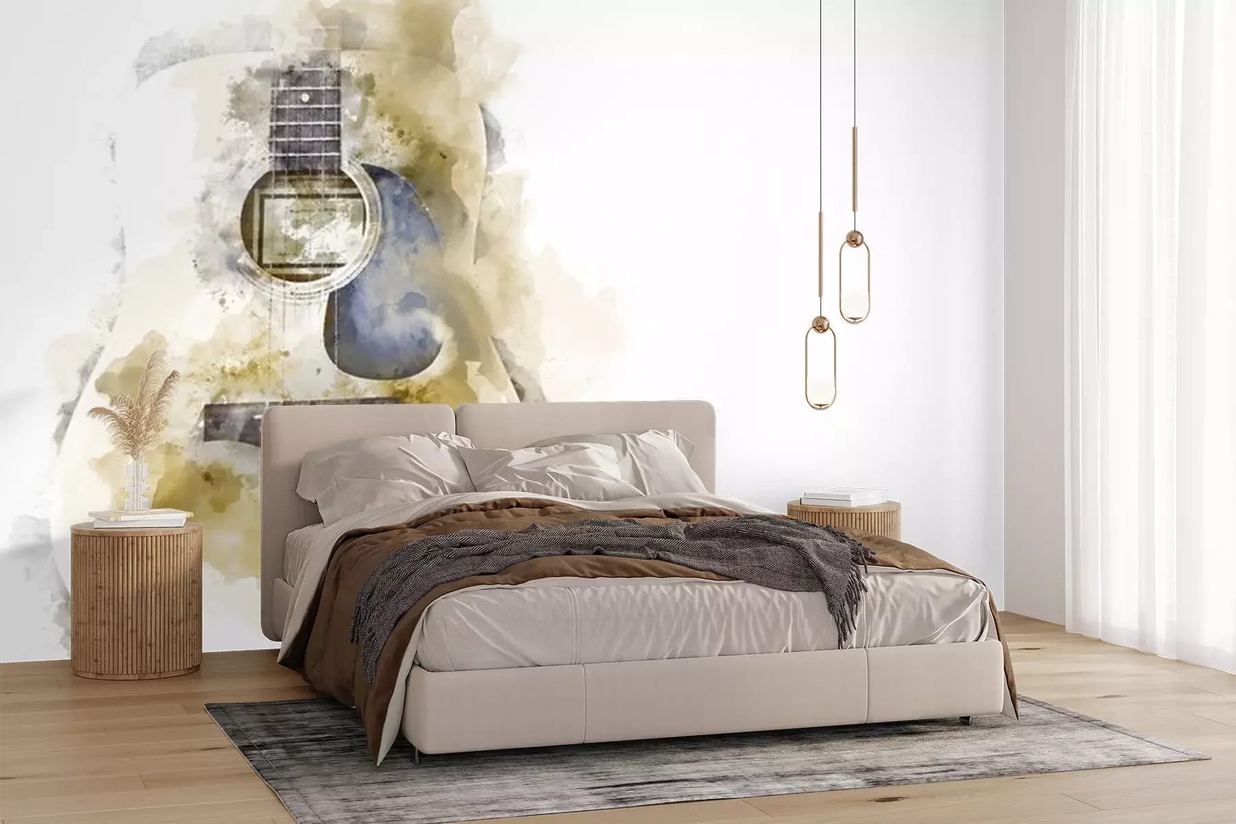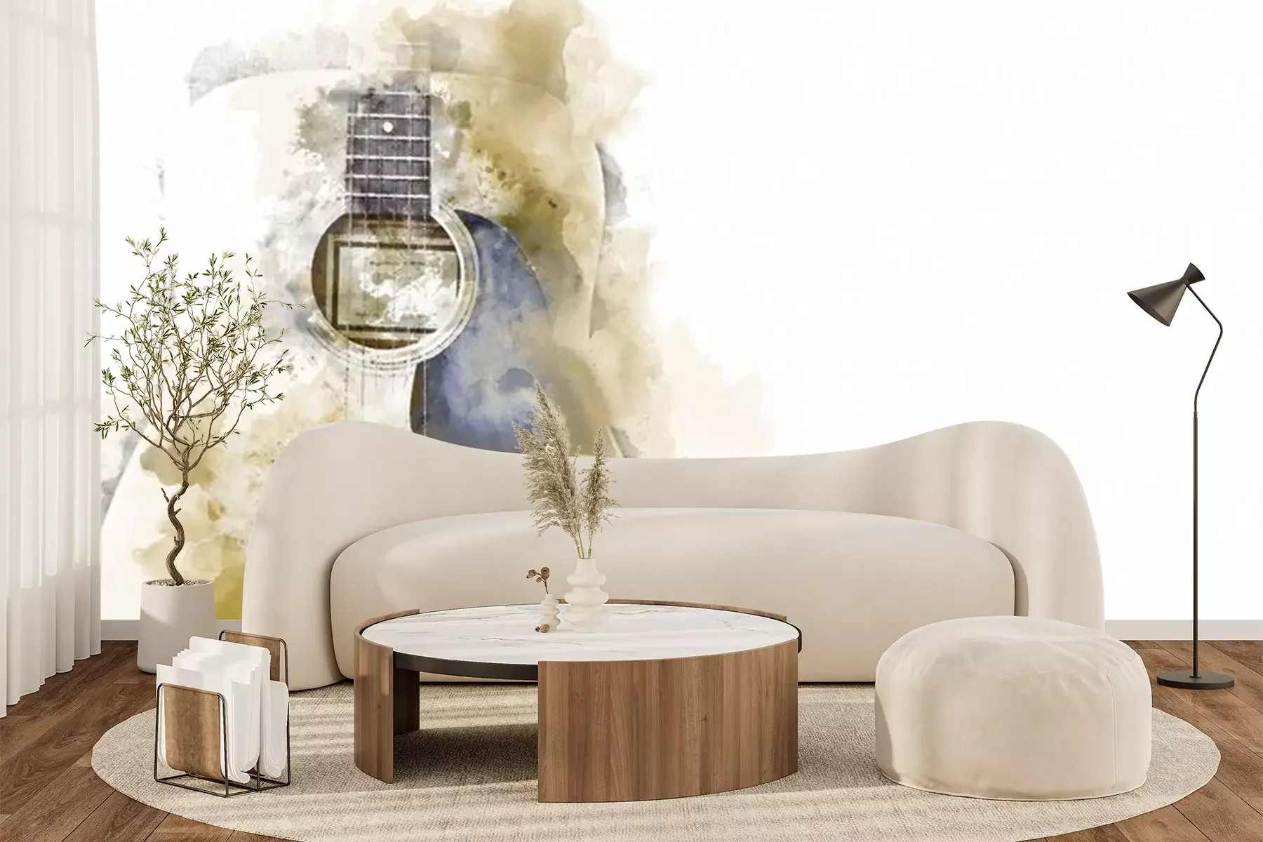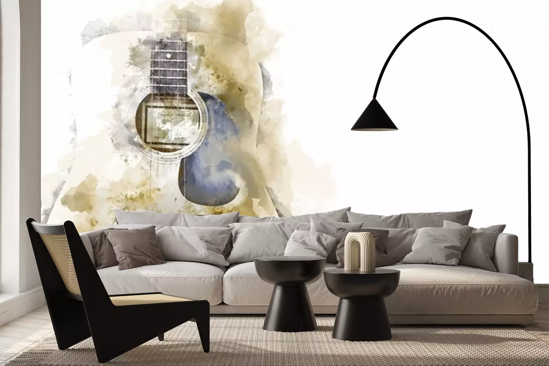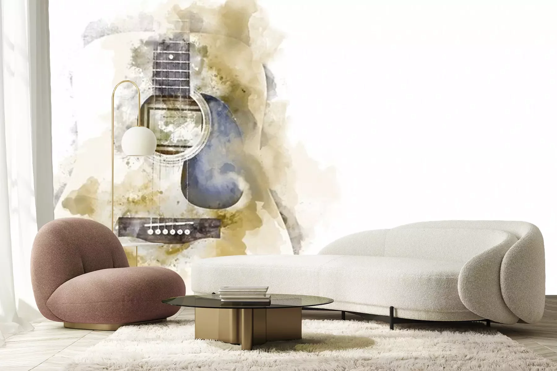 Sticker  Abstract colorful acoustic guitar on watercolor illustration painting background.
