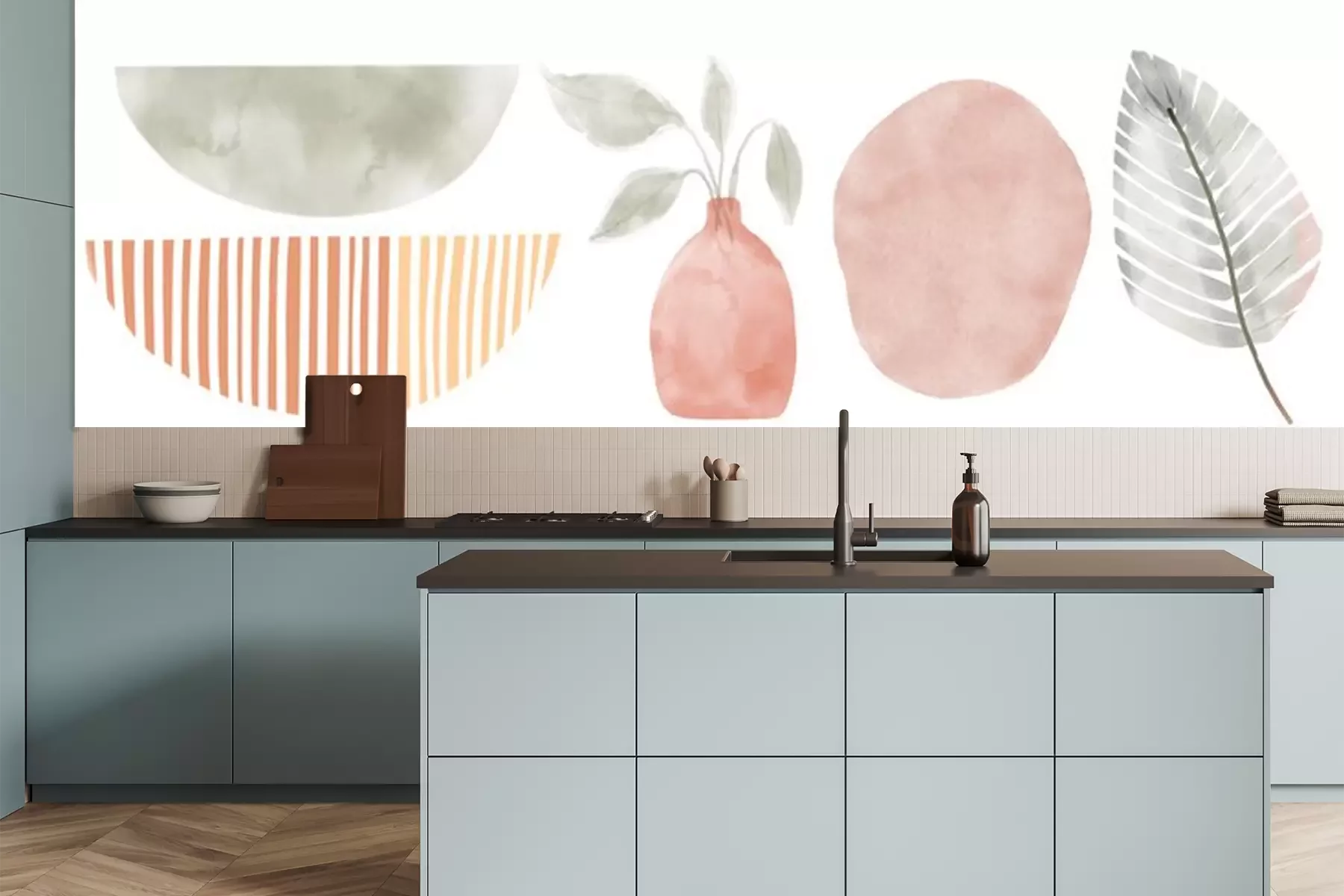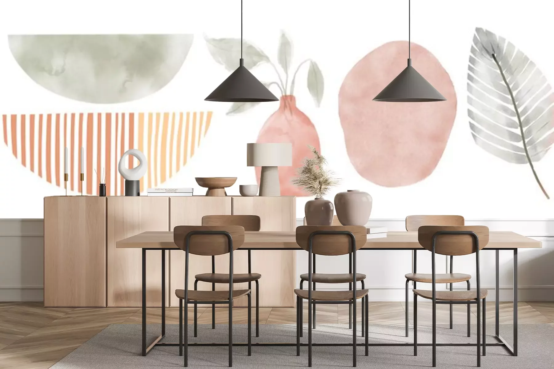 Sticker  Abstract contemporary aesthetic background with geometric balance shapes. Earth tones, terracotta colors. Boho wall decor. Mid century modern minimalist art print. Organic shape. Dots texture