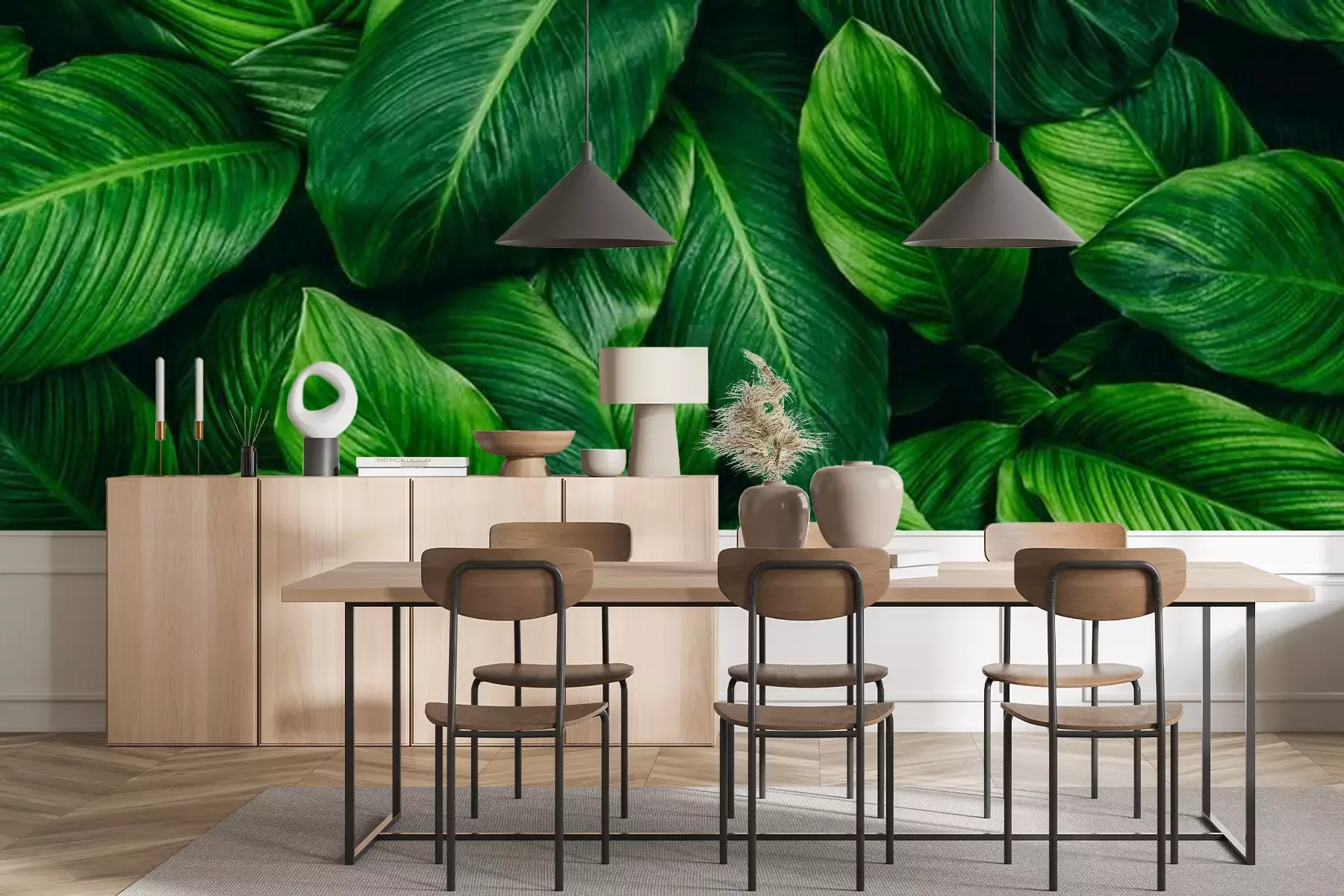 Sticker  abstract green leaf texture, nature background, tropical leaf