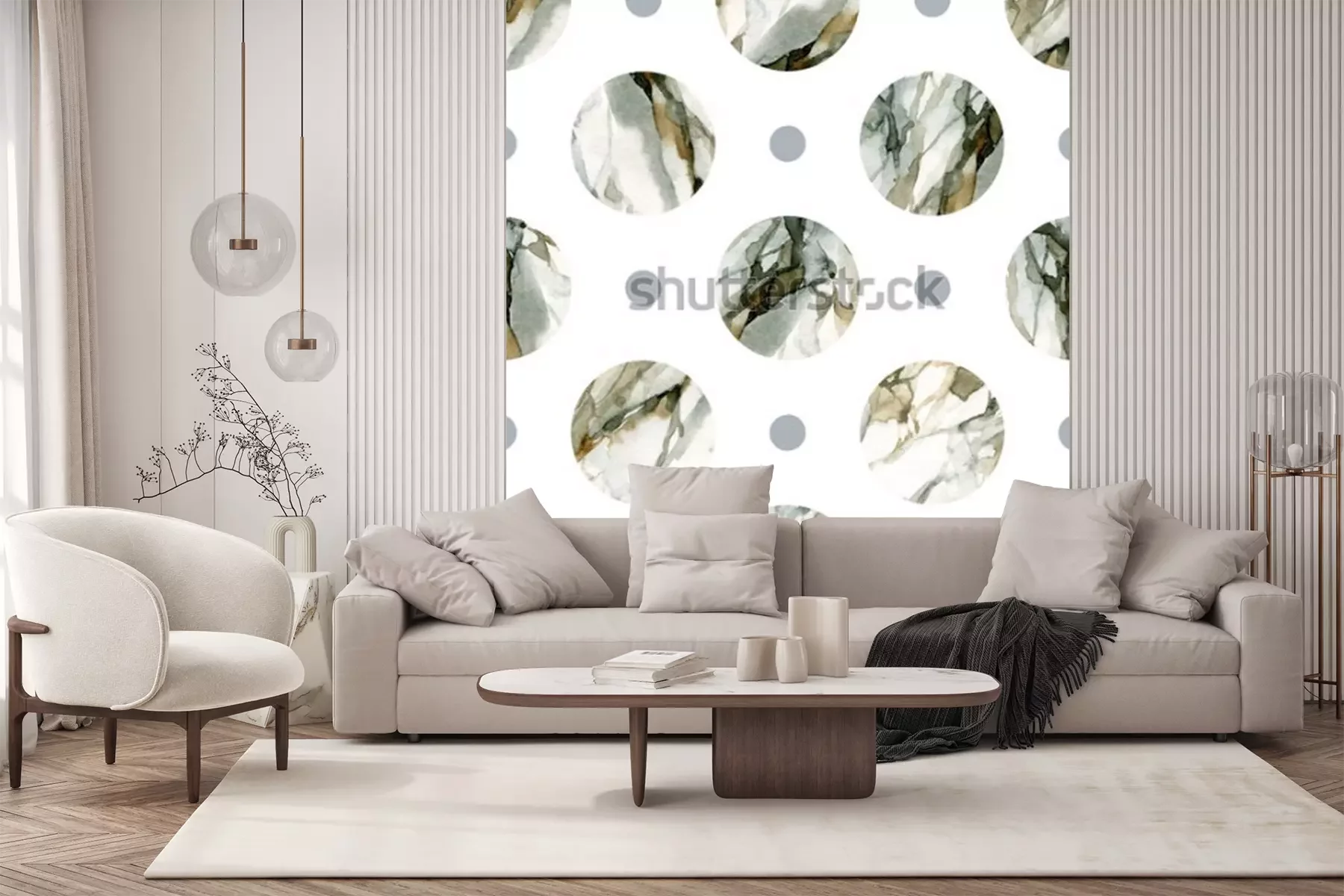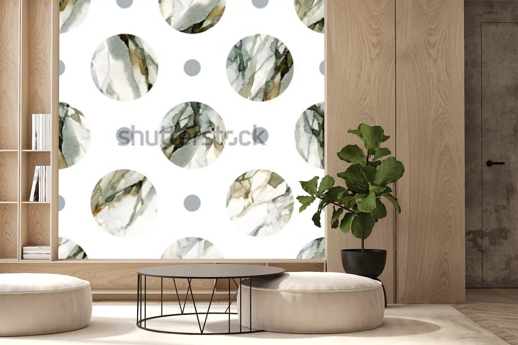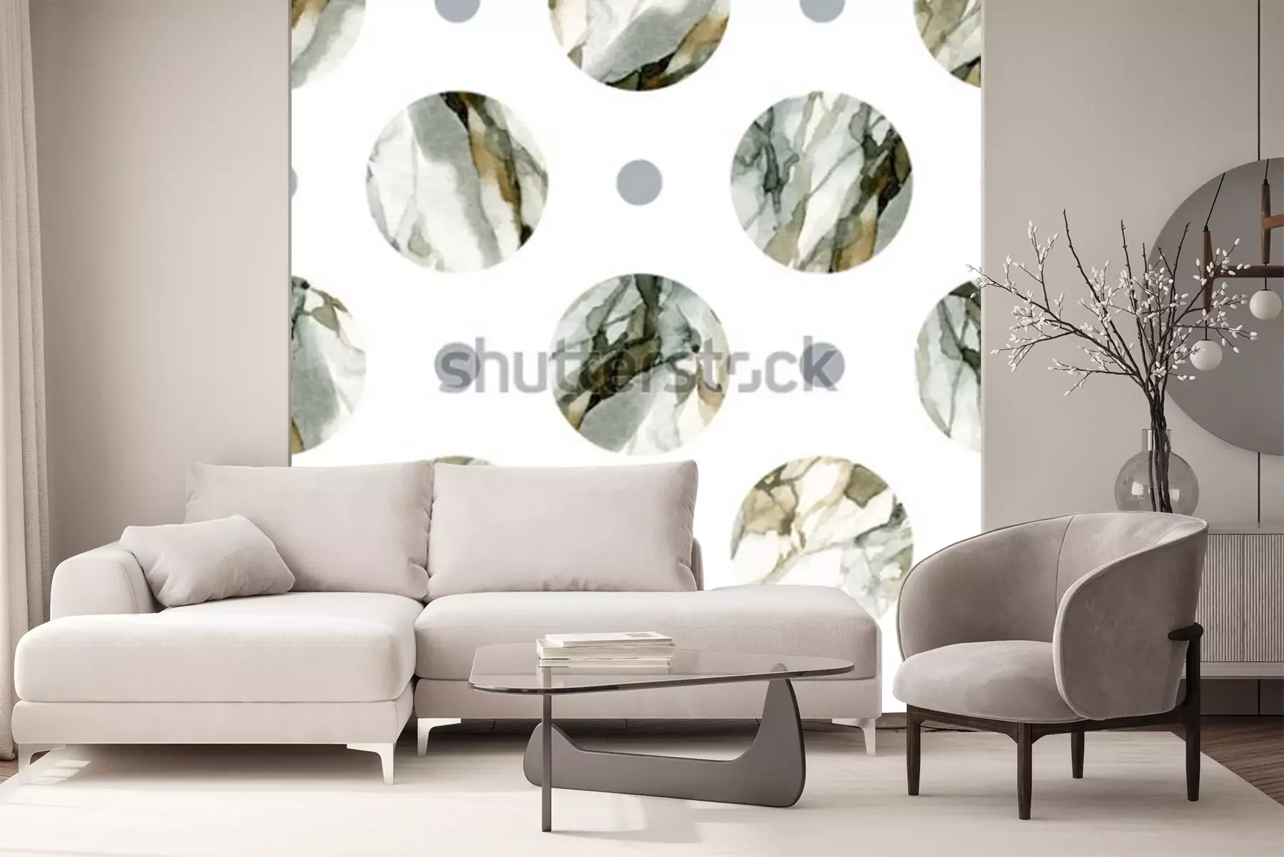 Sticker  Abstrait géométrique. Peinture sur marbre en couleur eau. Modèle sans couture de cercle aquarelle. Cercles aquarellés, marbrés, texturés et texturés. Illustration peinte à la main