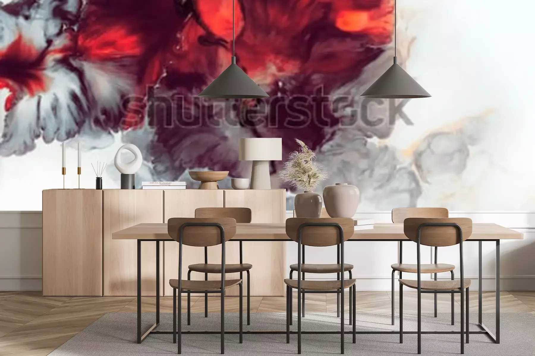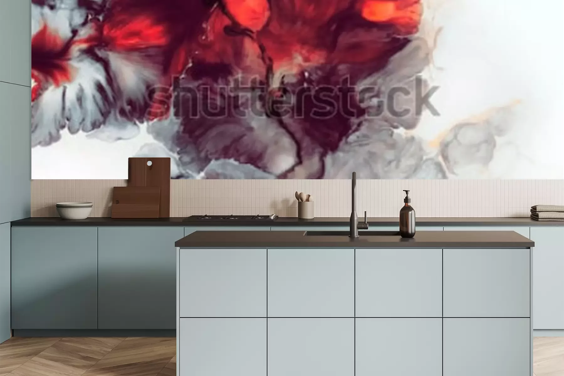 Sticker  Abstrait rouge Macro cellules. Fleur rouge Peintures acryliques. Texture marbre Art contemporain.