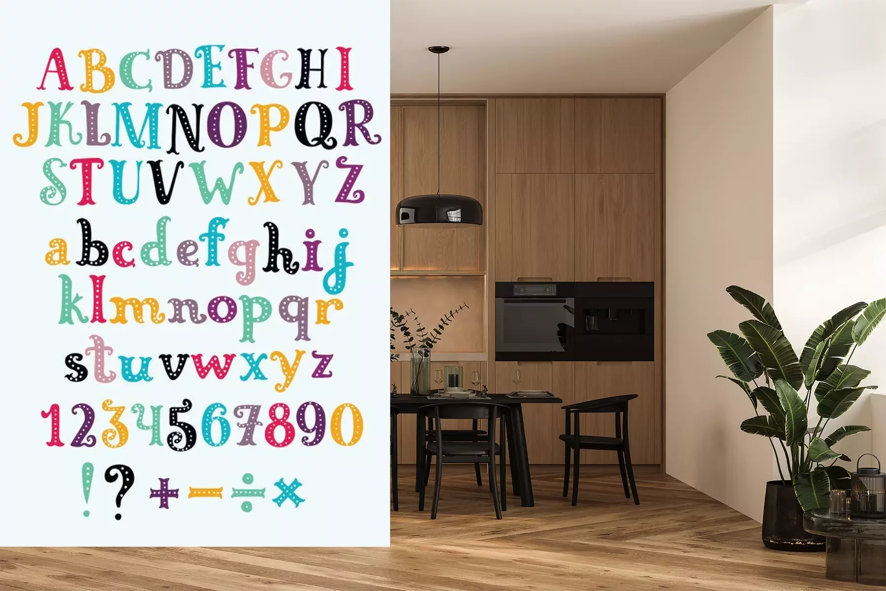 Sticker  Alphabet et chiffres avec des points décoratifs