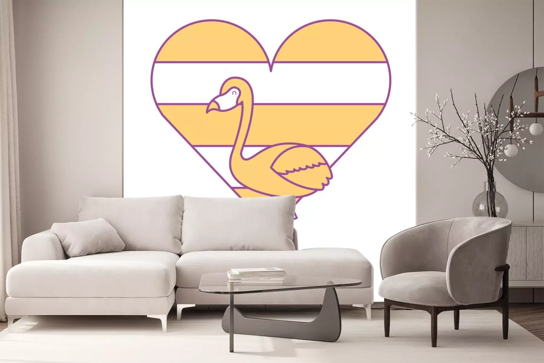 Sticker  amour de flamingo et coeur avec la couleur illustration de vecteur arc-en-ciel jaune